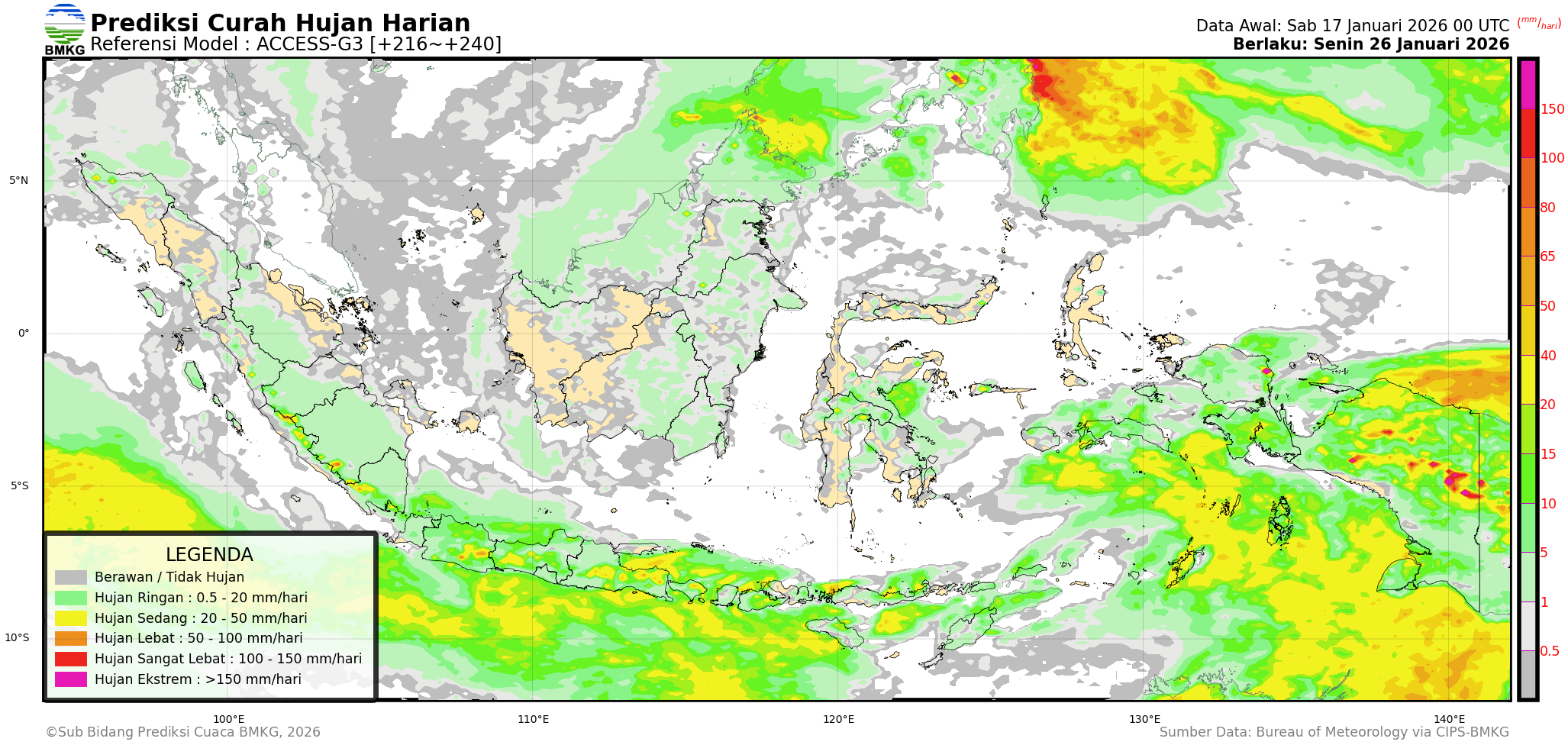 Prediksi Akumulasi Curah Hujan Harian Berdasarkan Model Cuaca ACCESS-G3 dari Bureau of Meteorology Australia