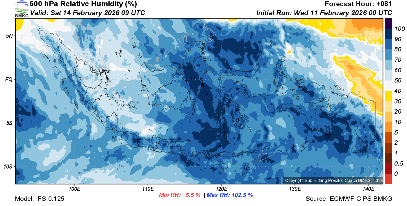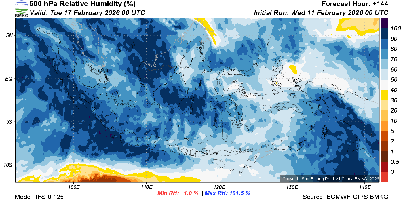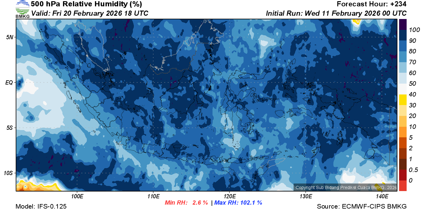 Prediksi Suhu Titik Embun 600 hPa NTT