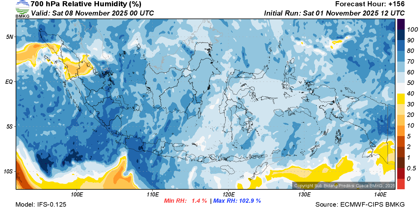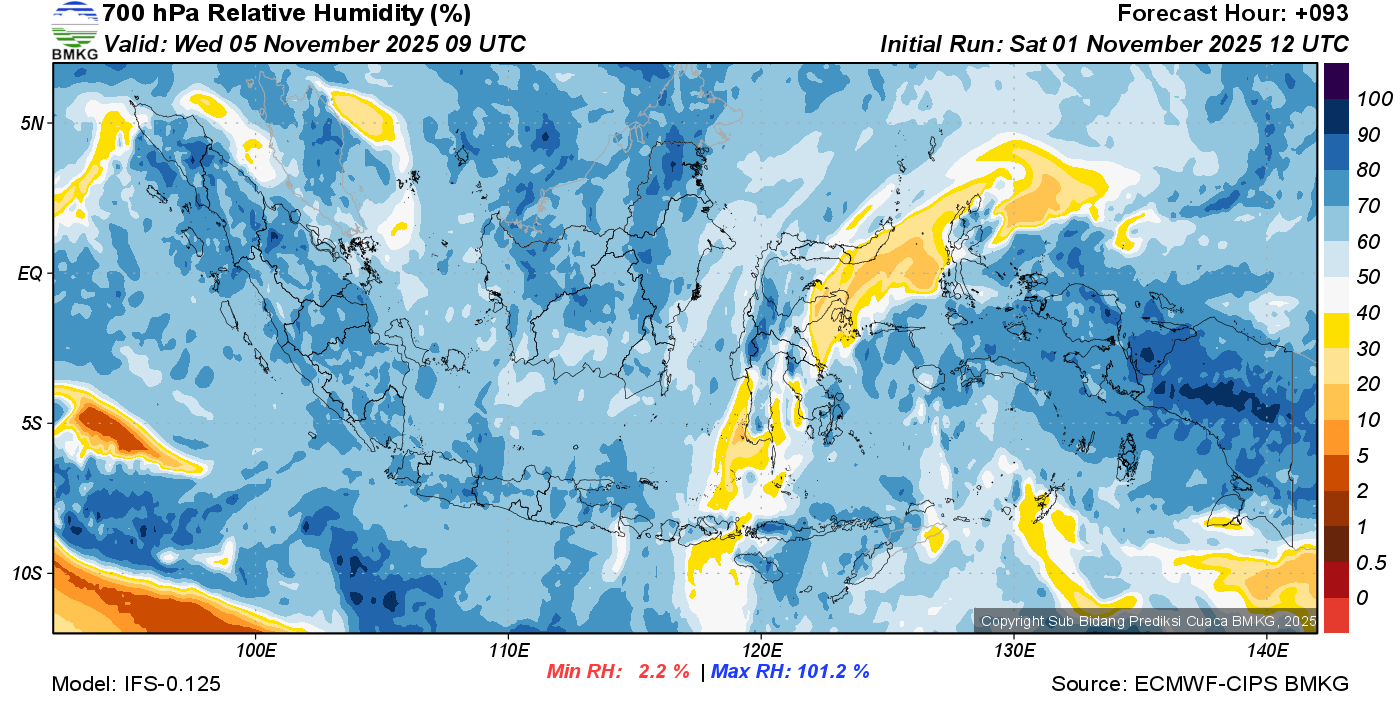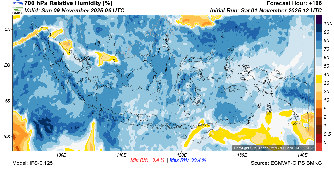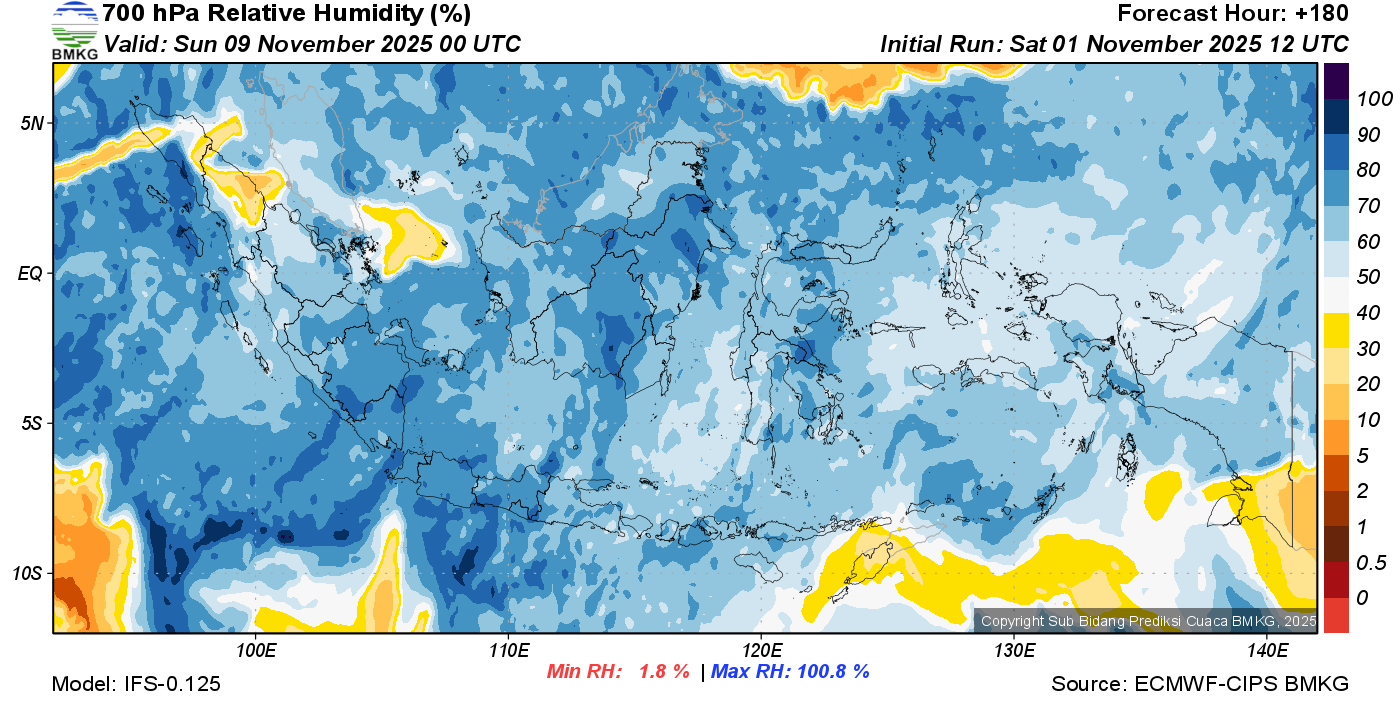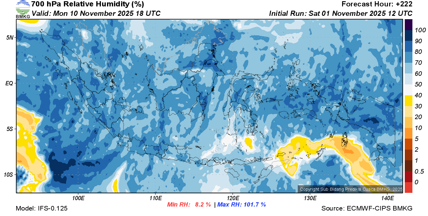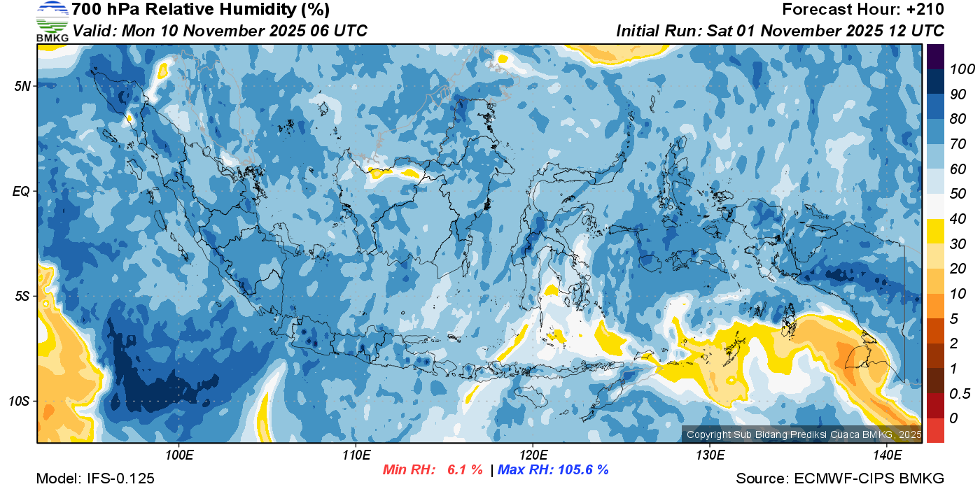 Prediksi Suhu Titik Embun 700 hPa NTT