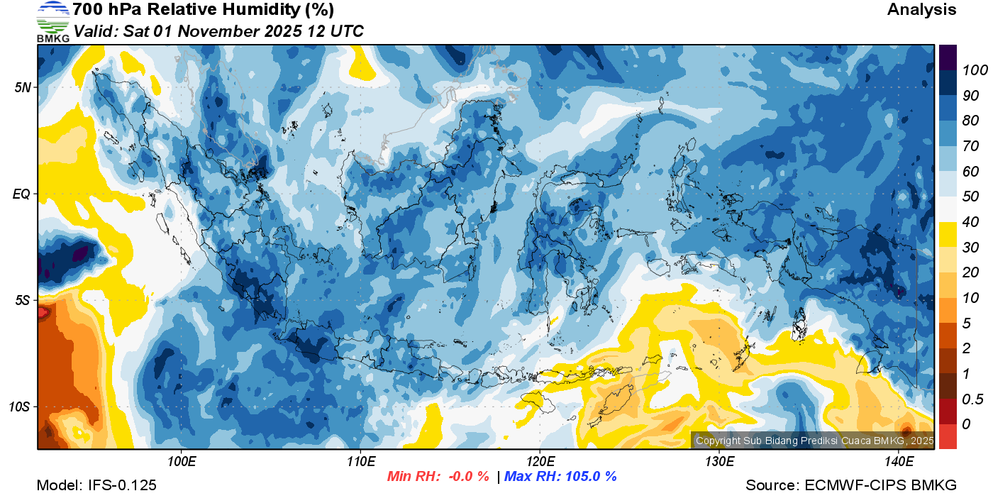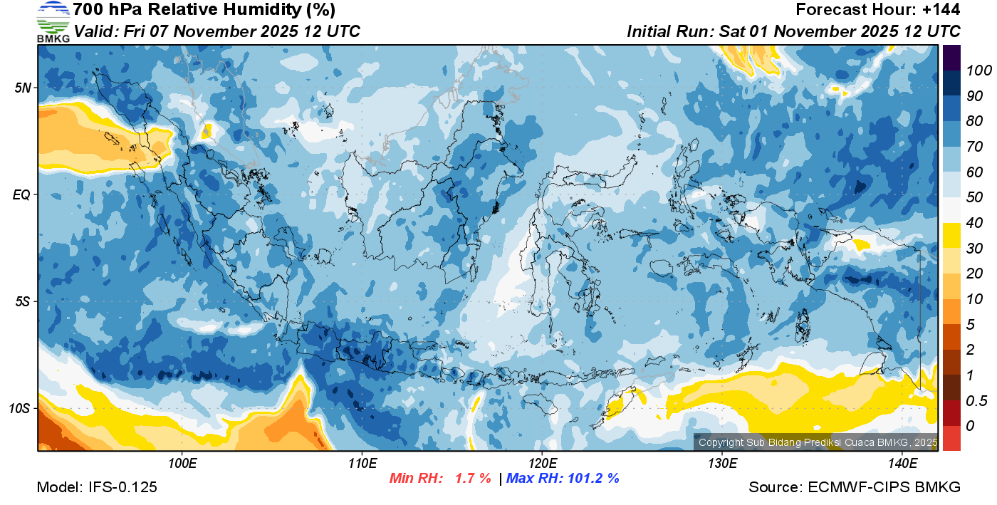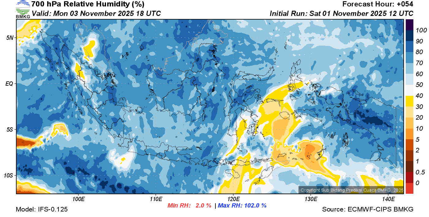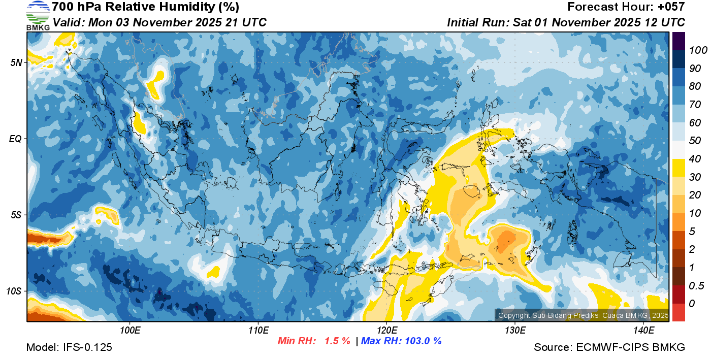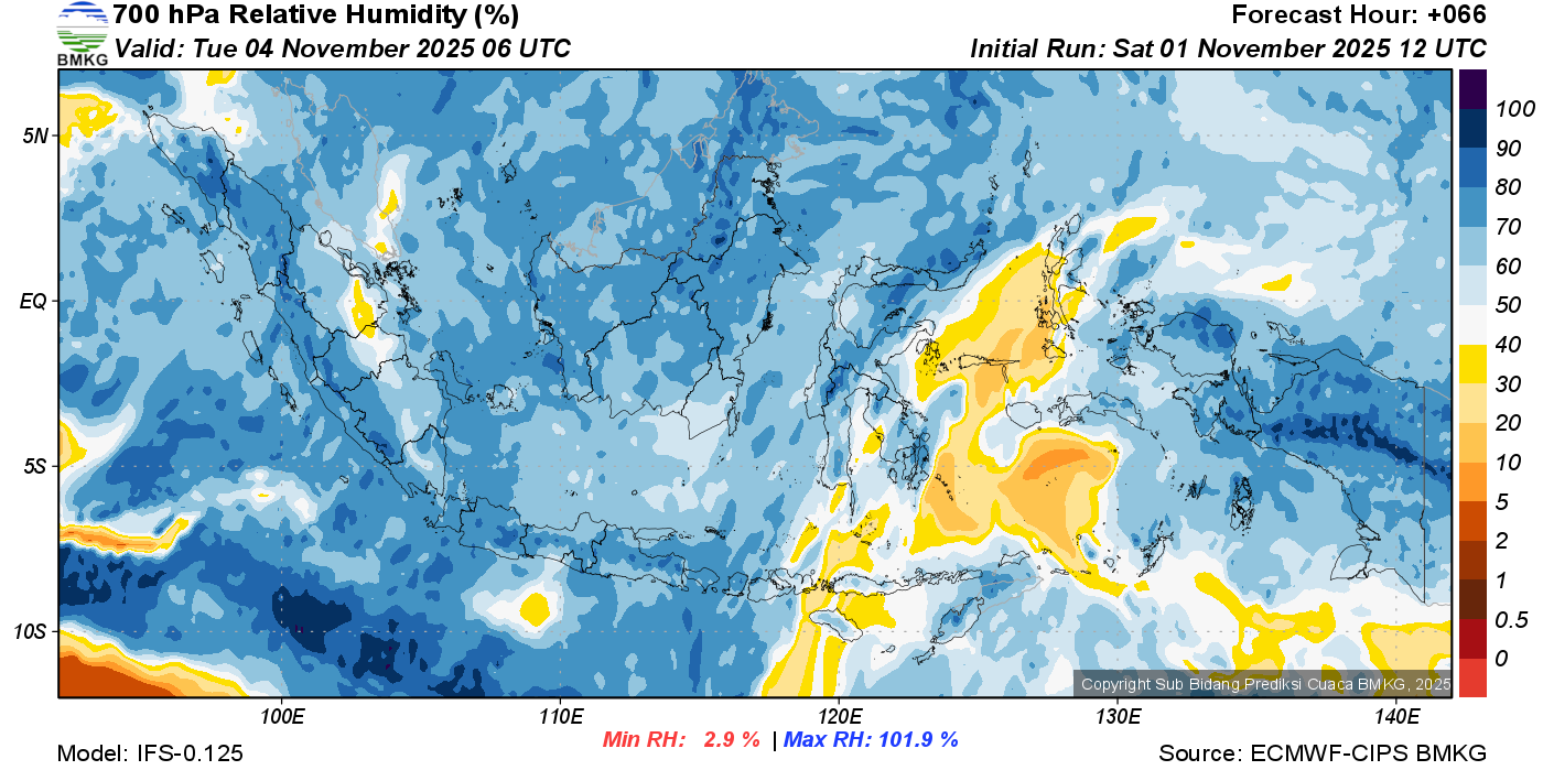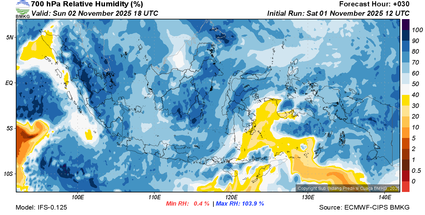 Prediksi Suhu Titik Embun 700 hPa NTT