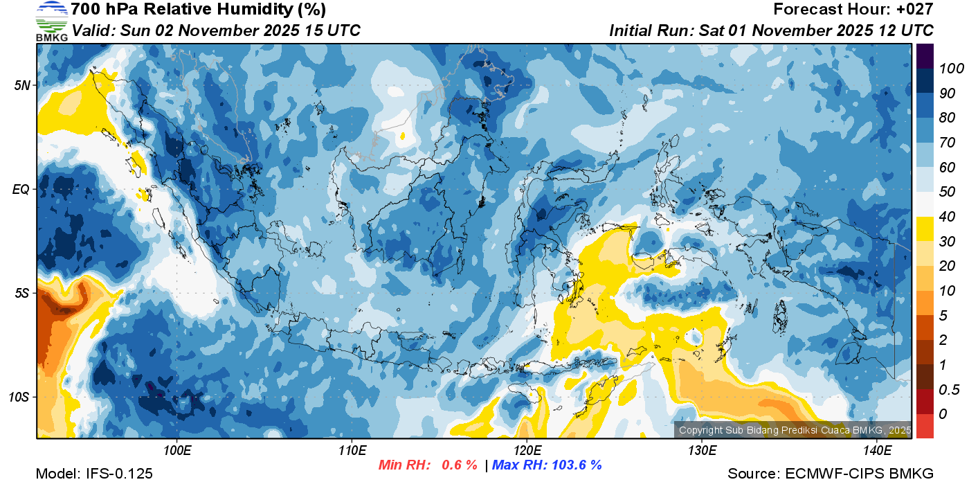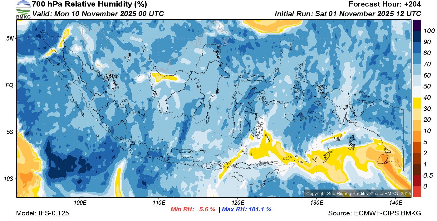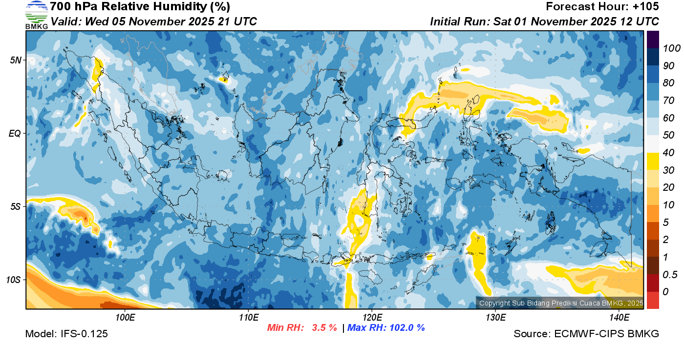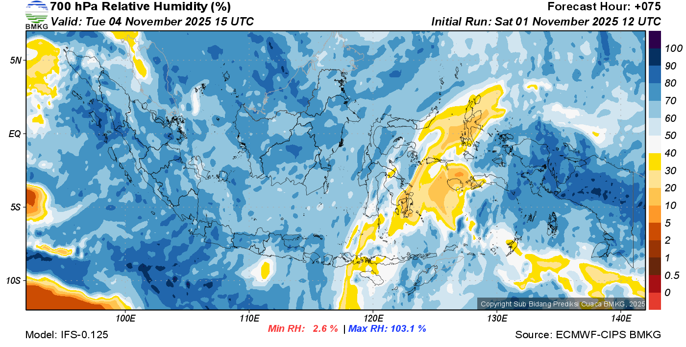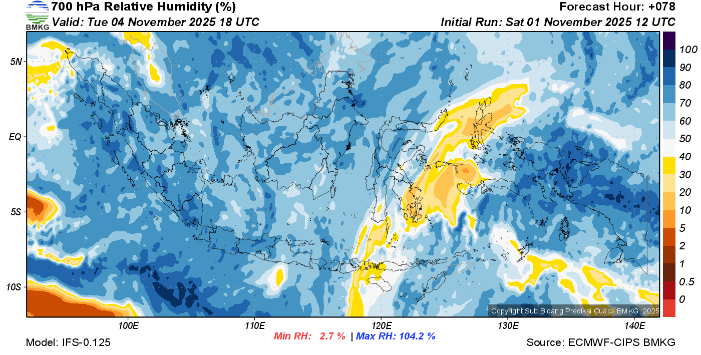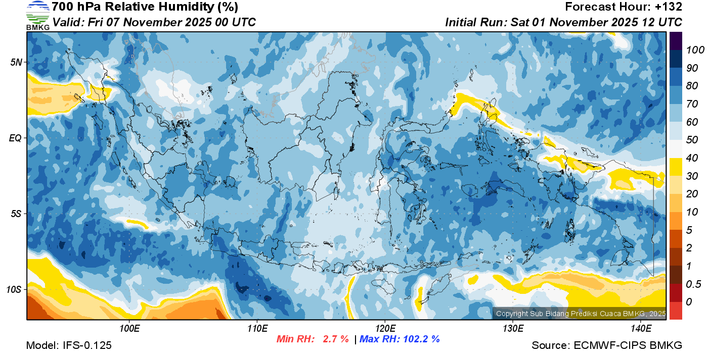 Prediksi Suhu Titik Embun 700 hPa NTT