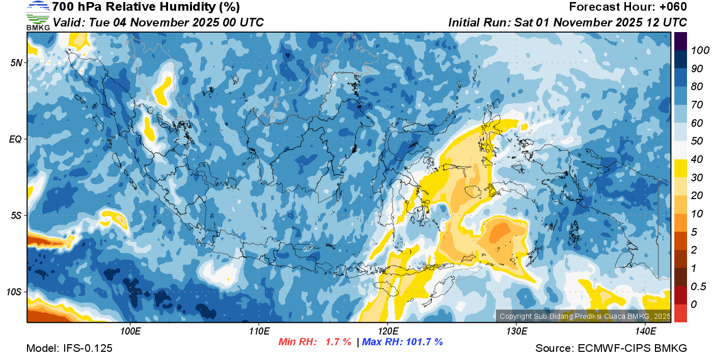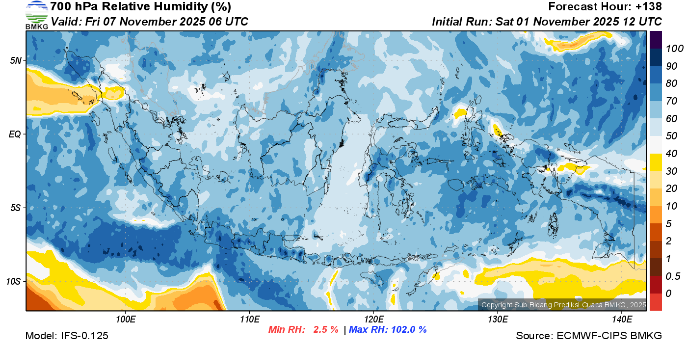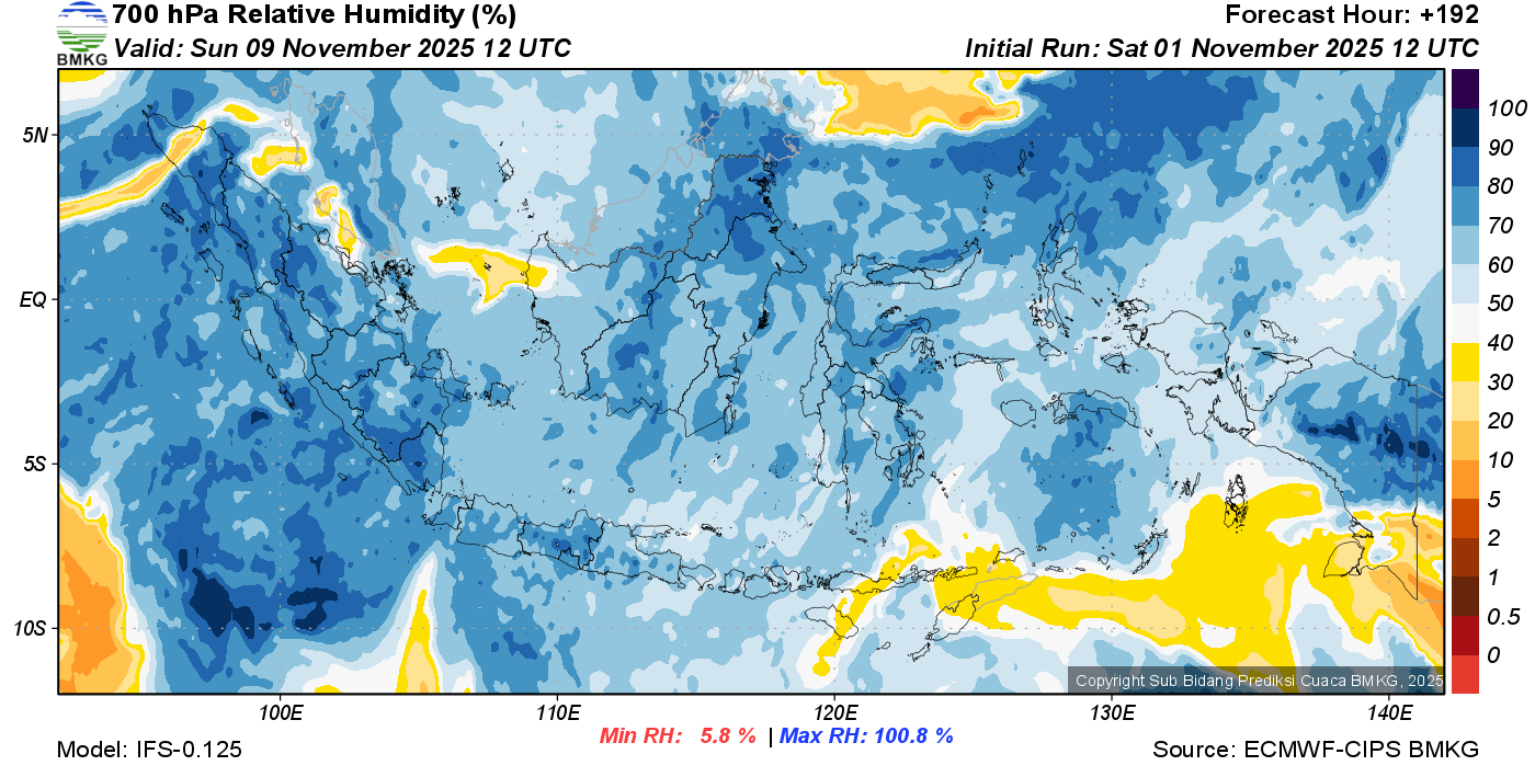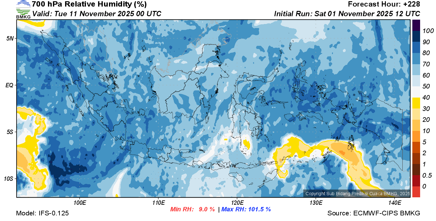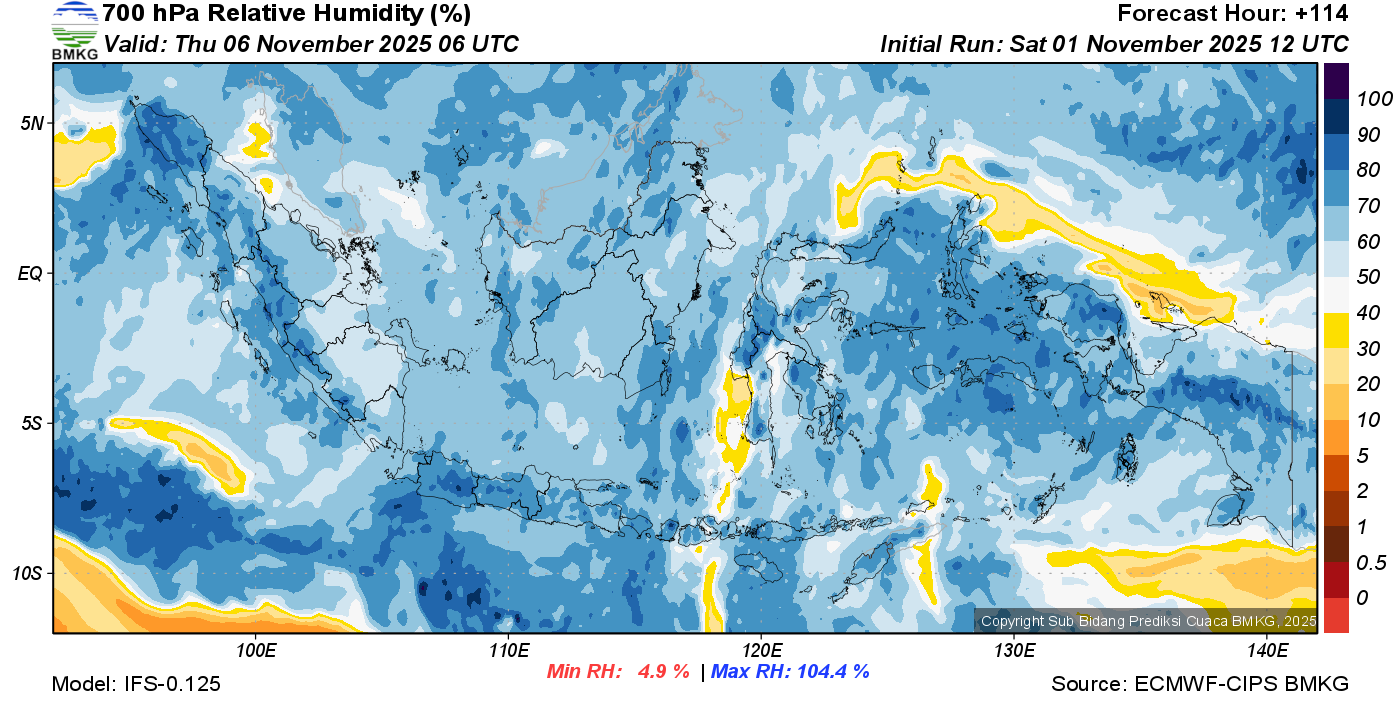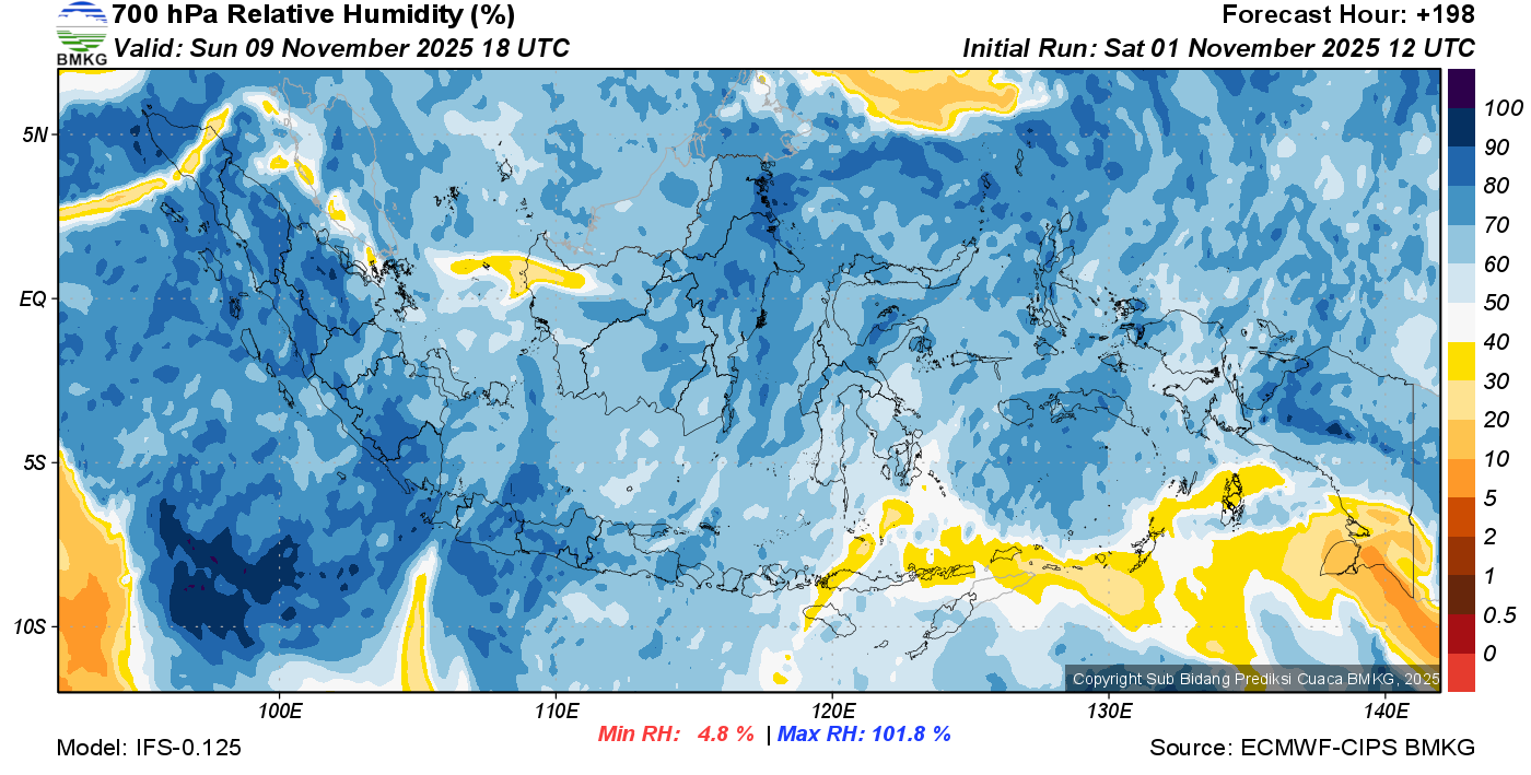 Prediksi Suhu Titik Embun 700 hPa NTT
