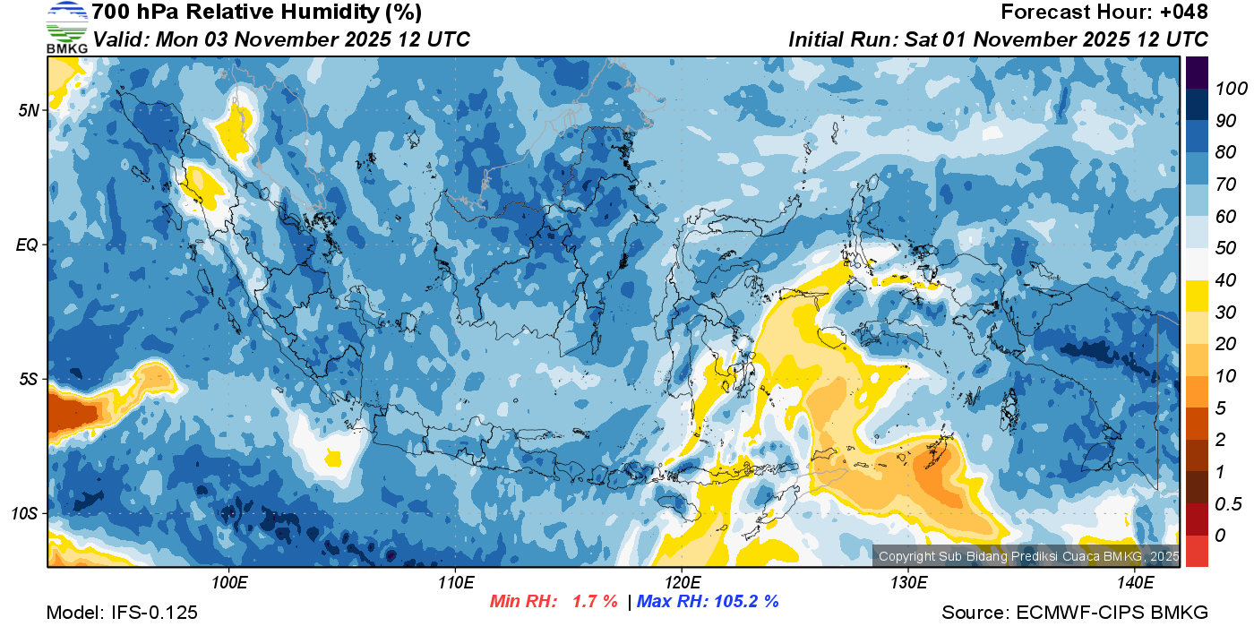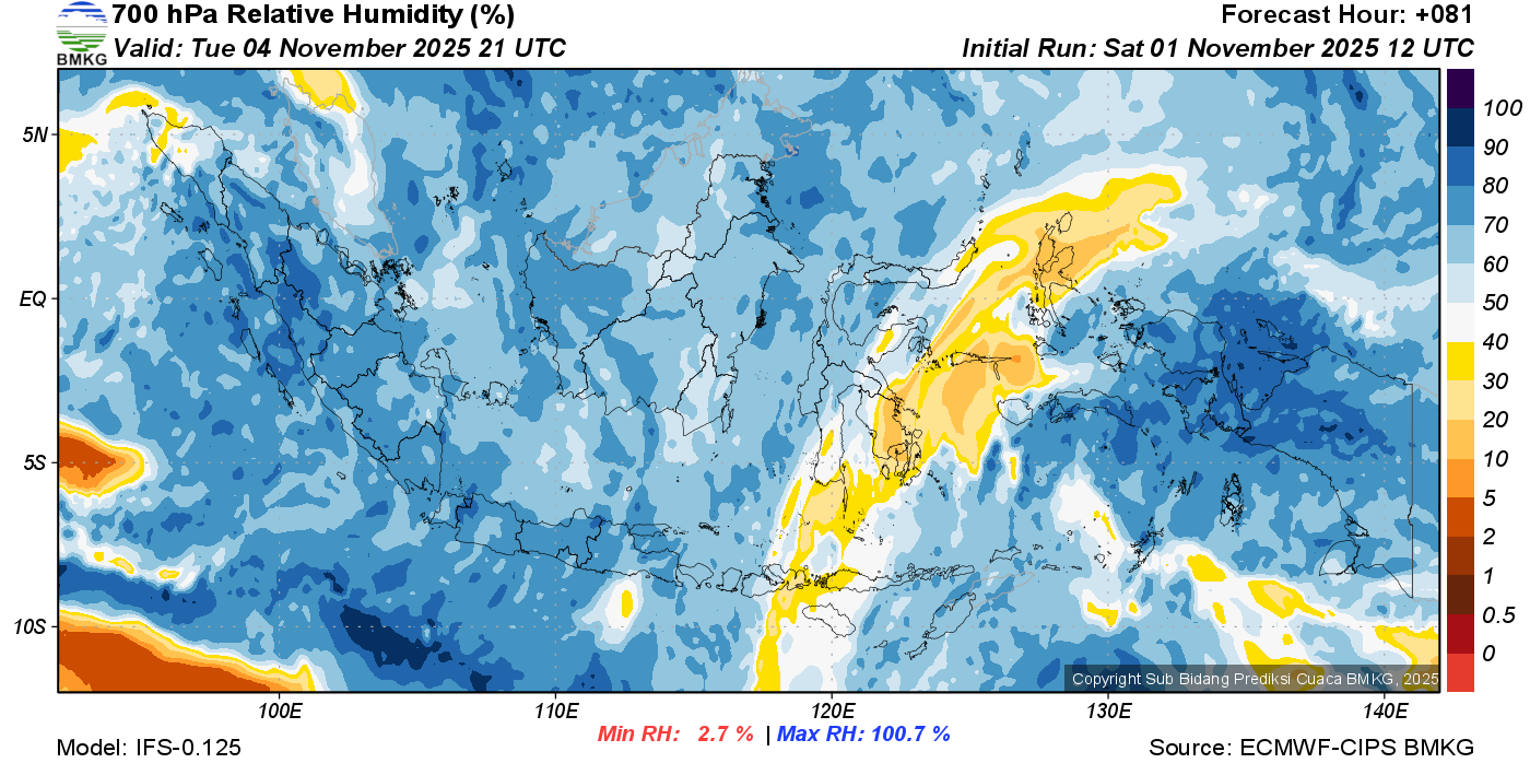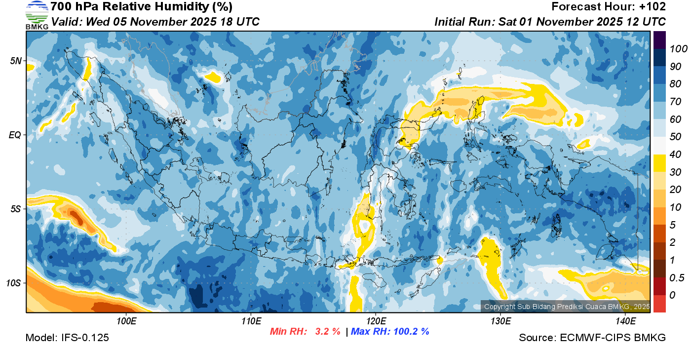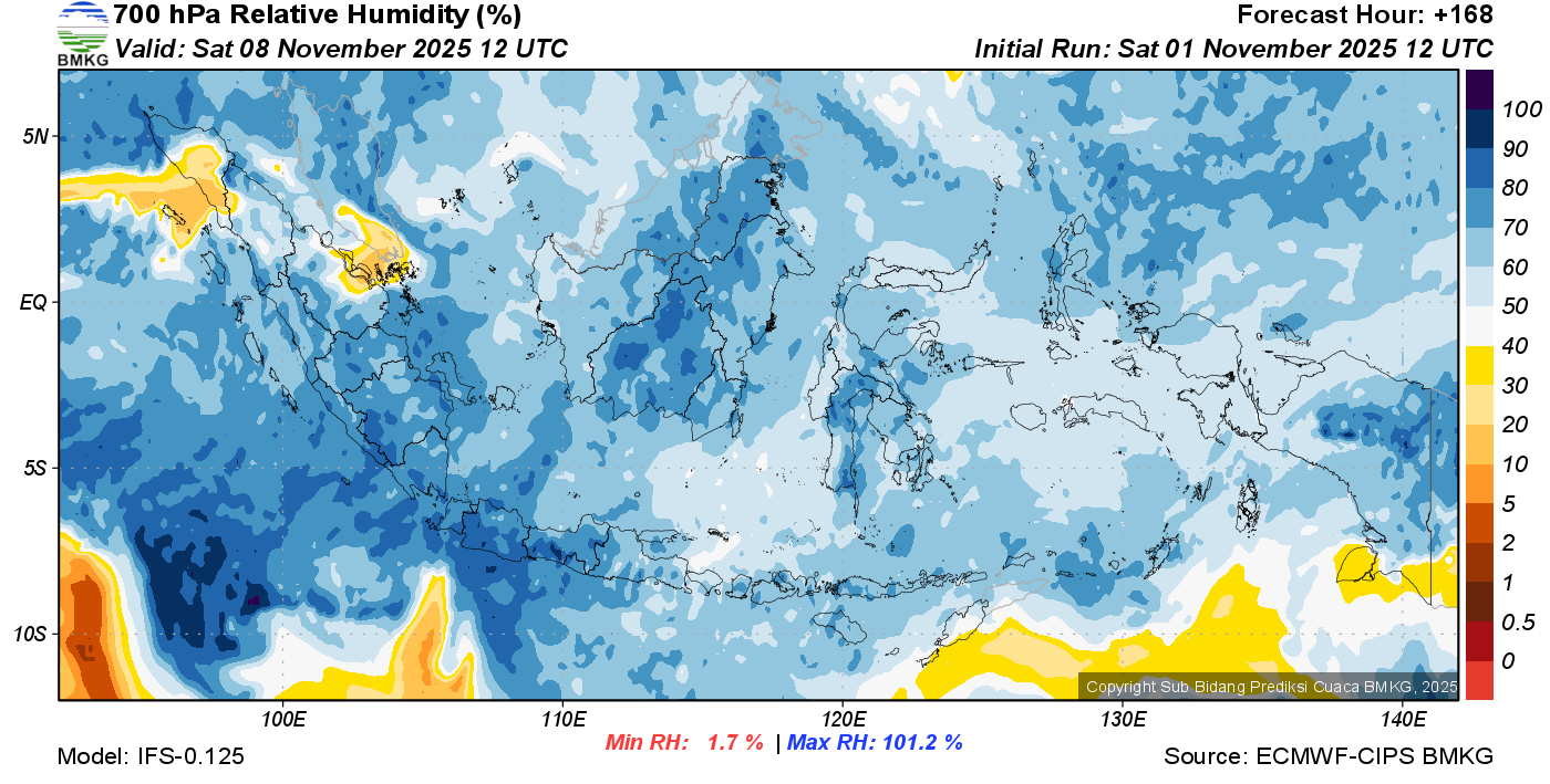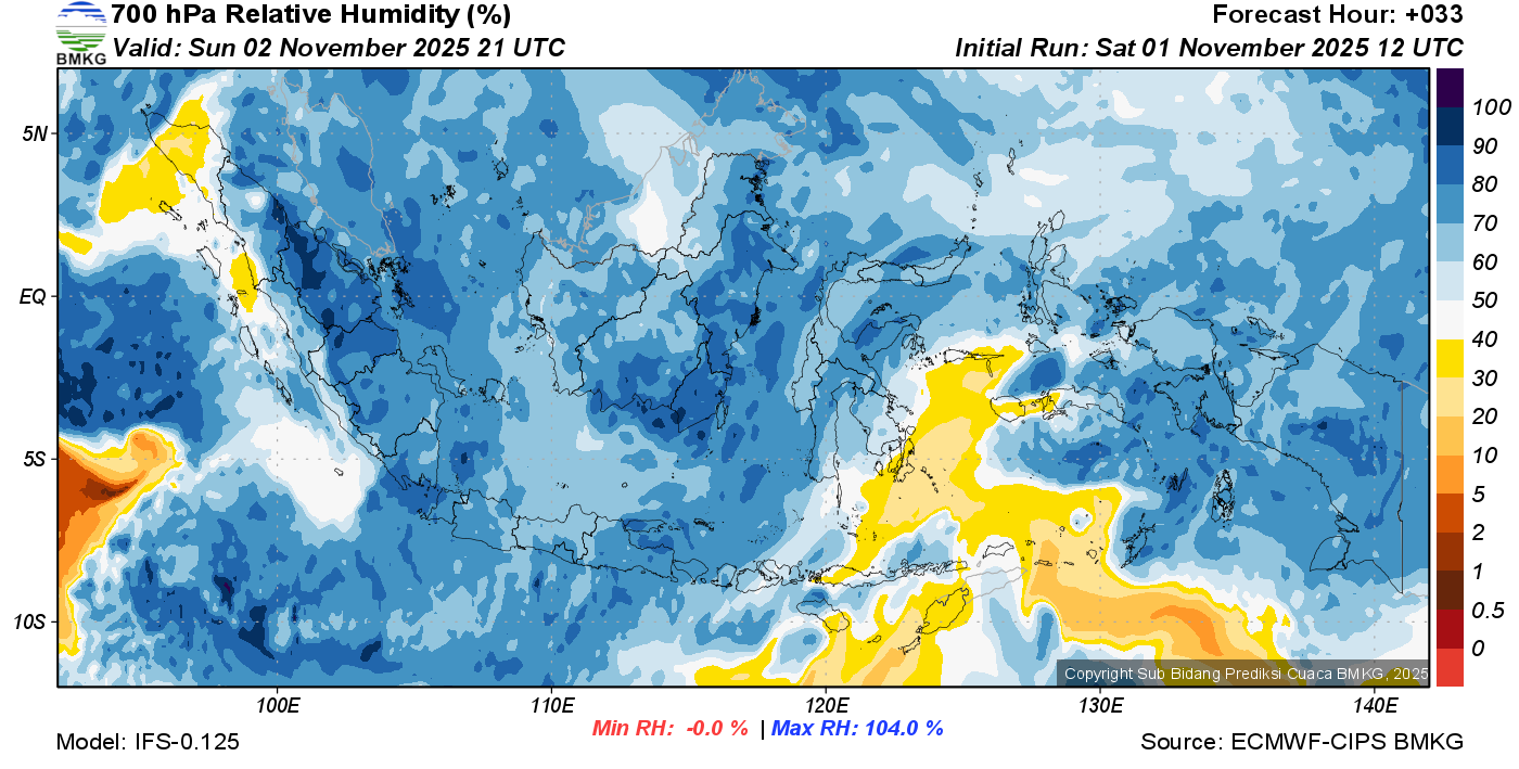 Prediksi Suhu Titik Embun 700 hPa NTT