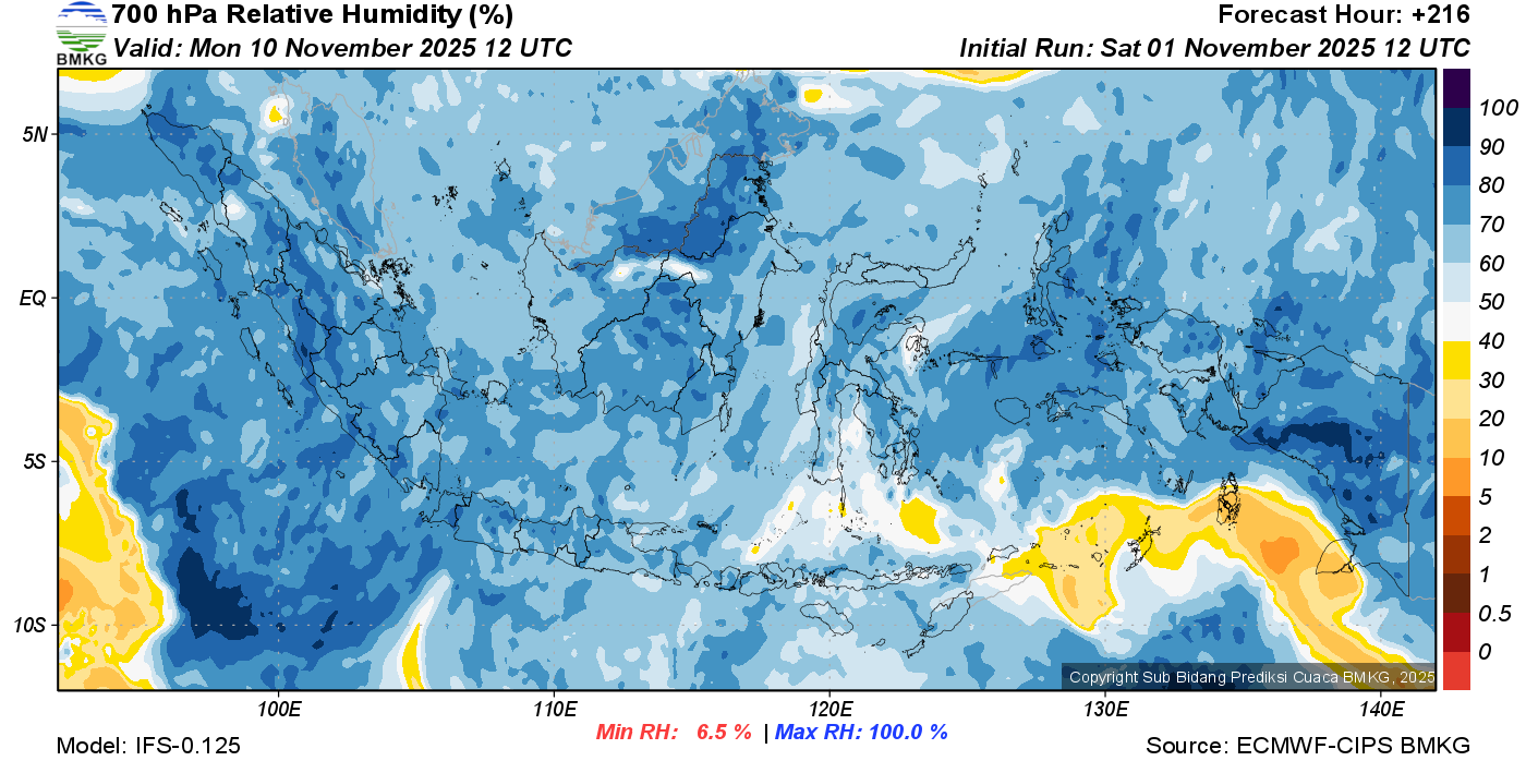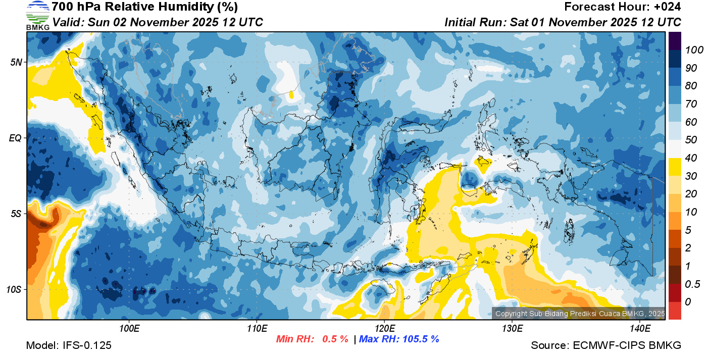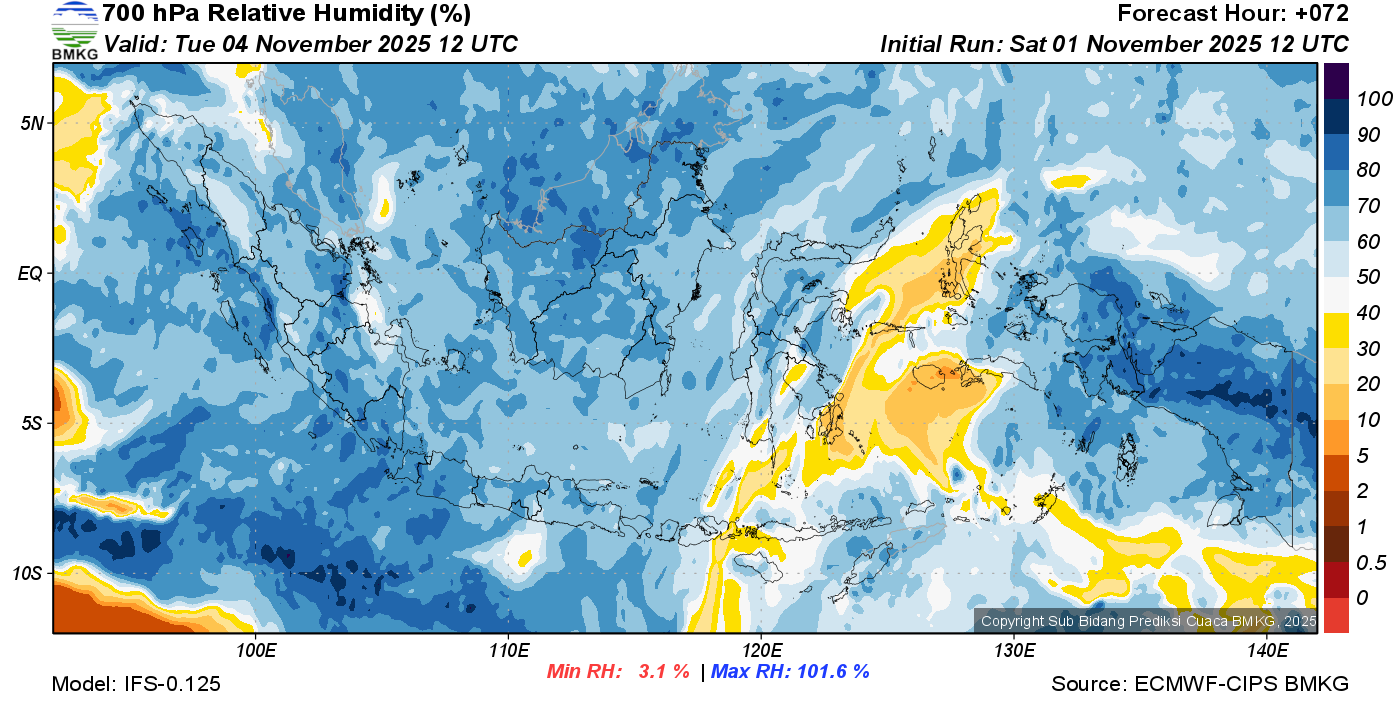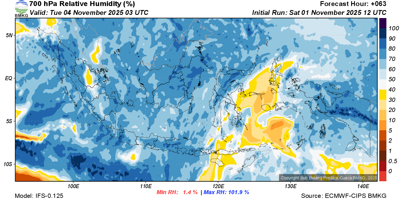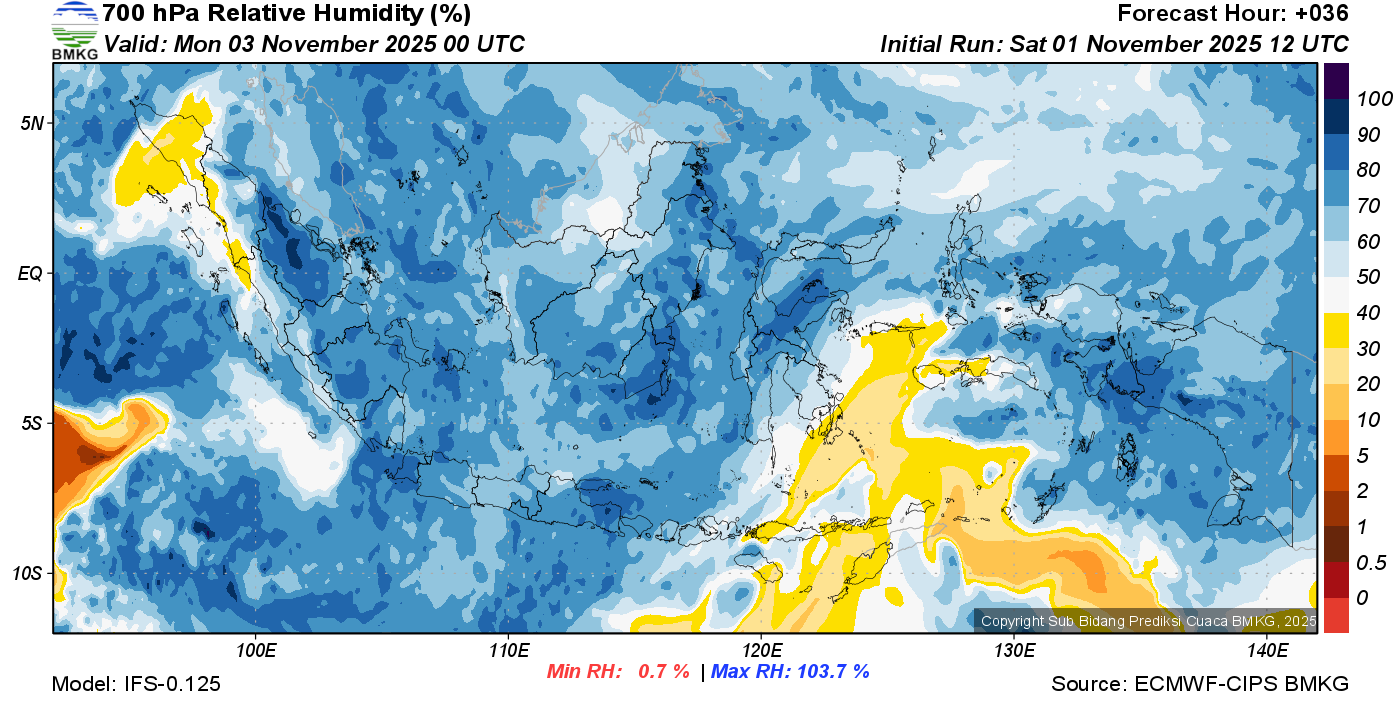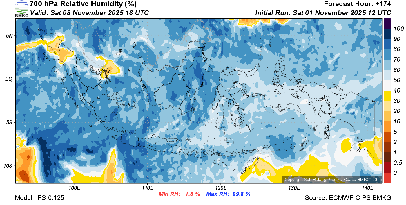 Prediksi Suhu Titik Embun 700 hPa NTT