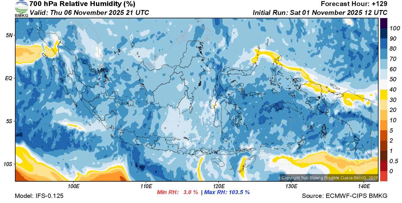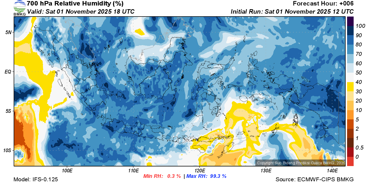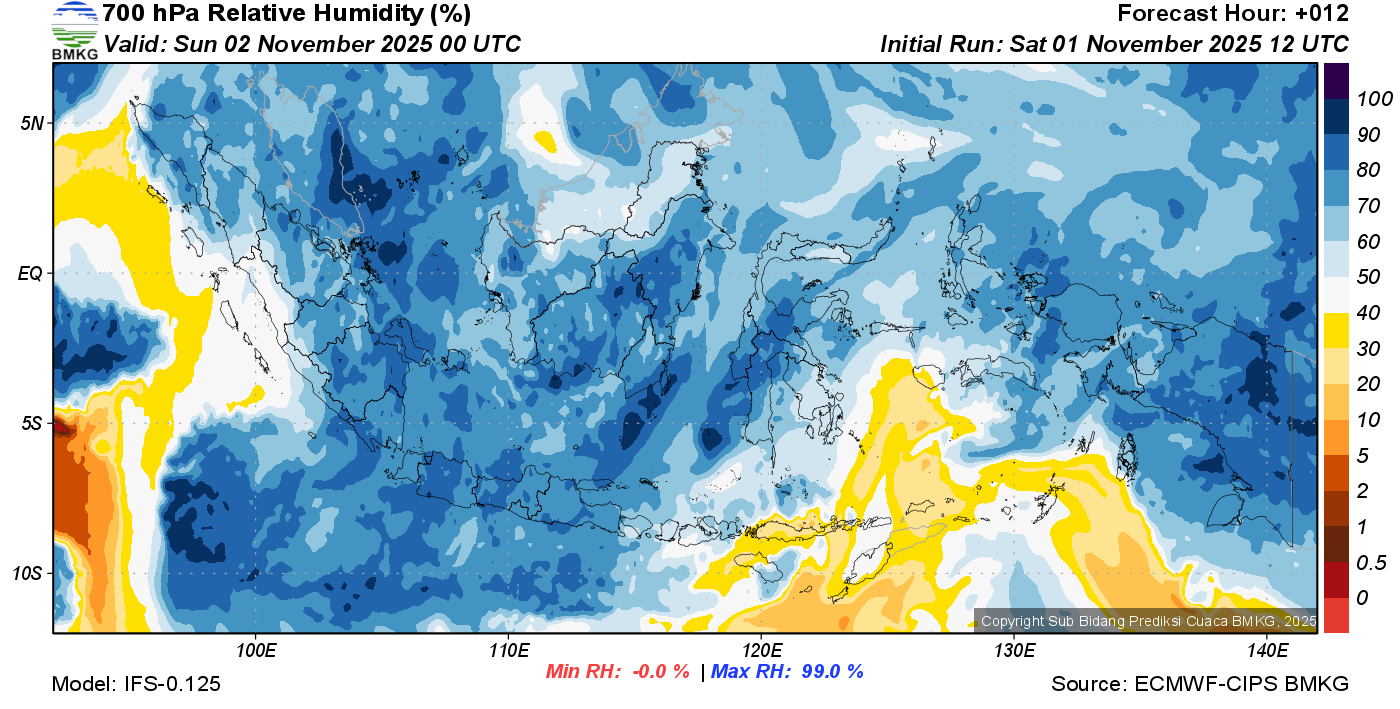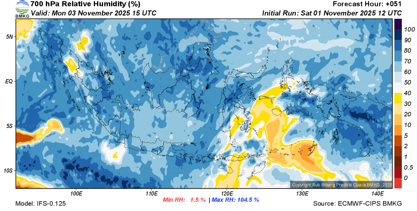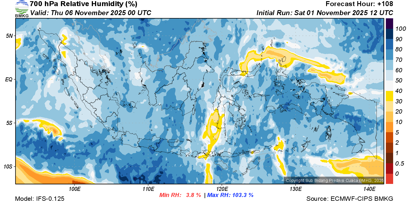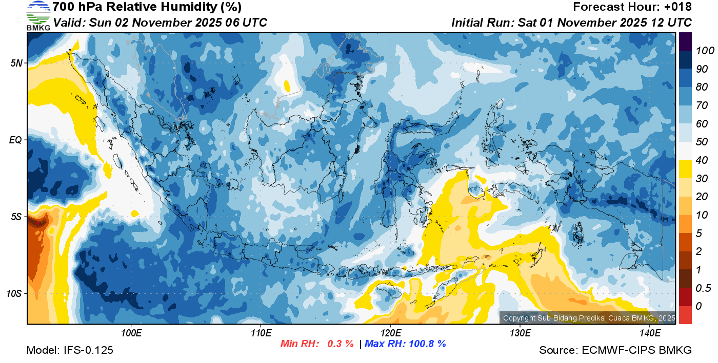 Prediksi Suhu Titik Embun 700 hPa NTT
