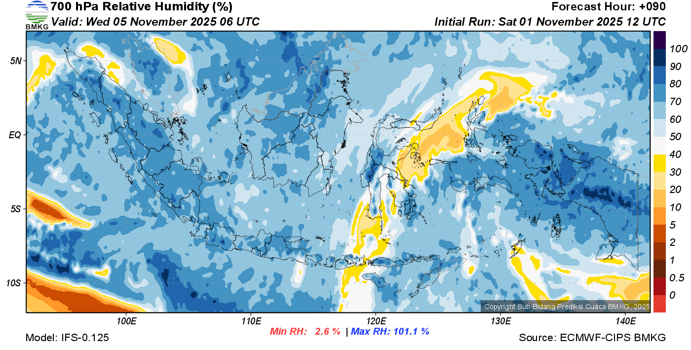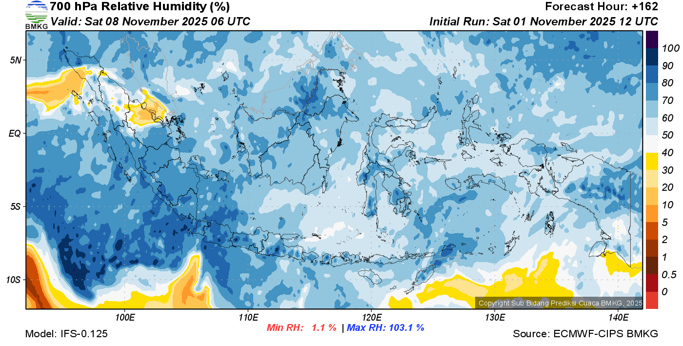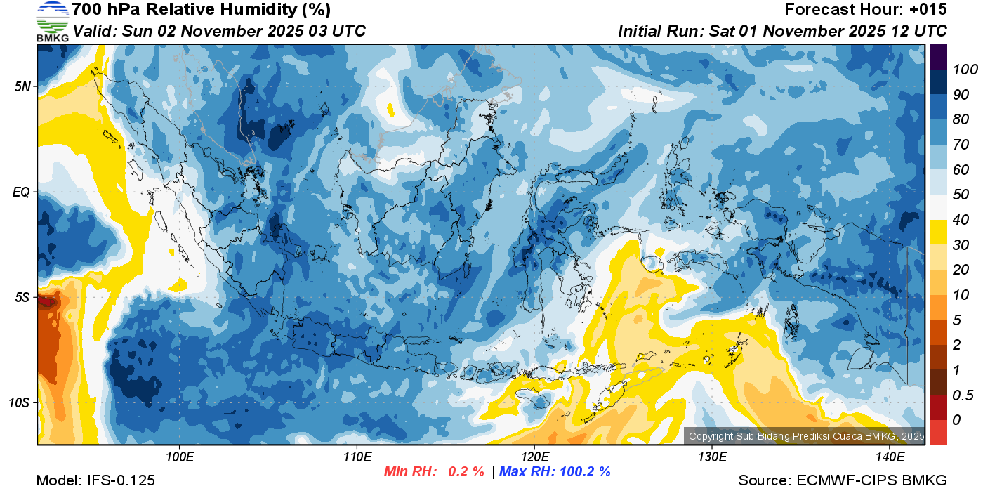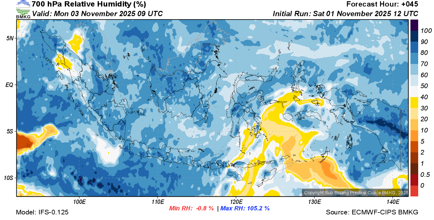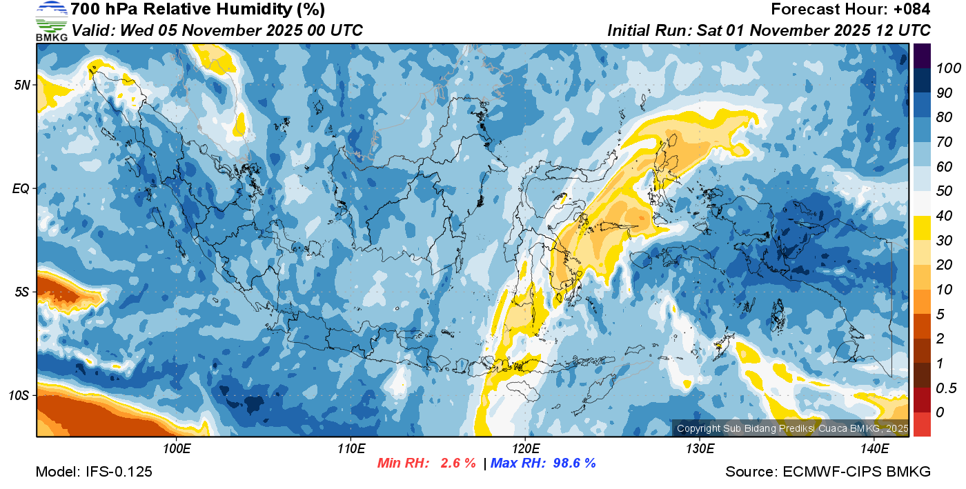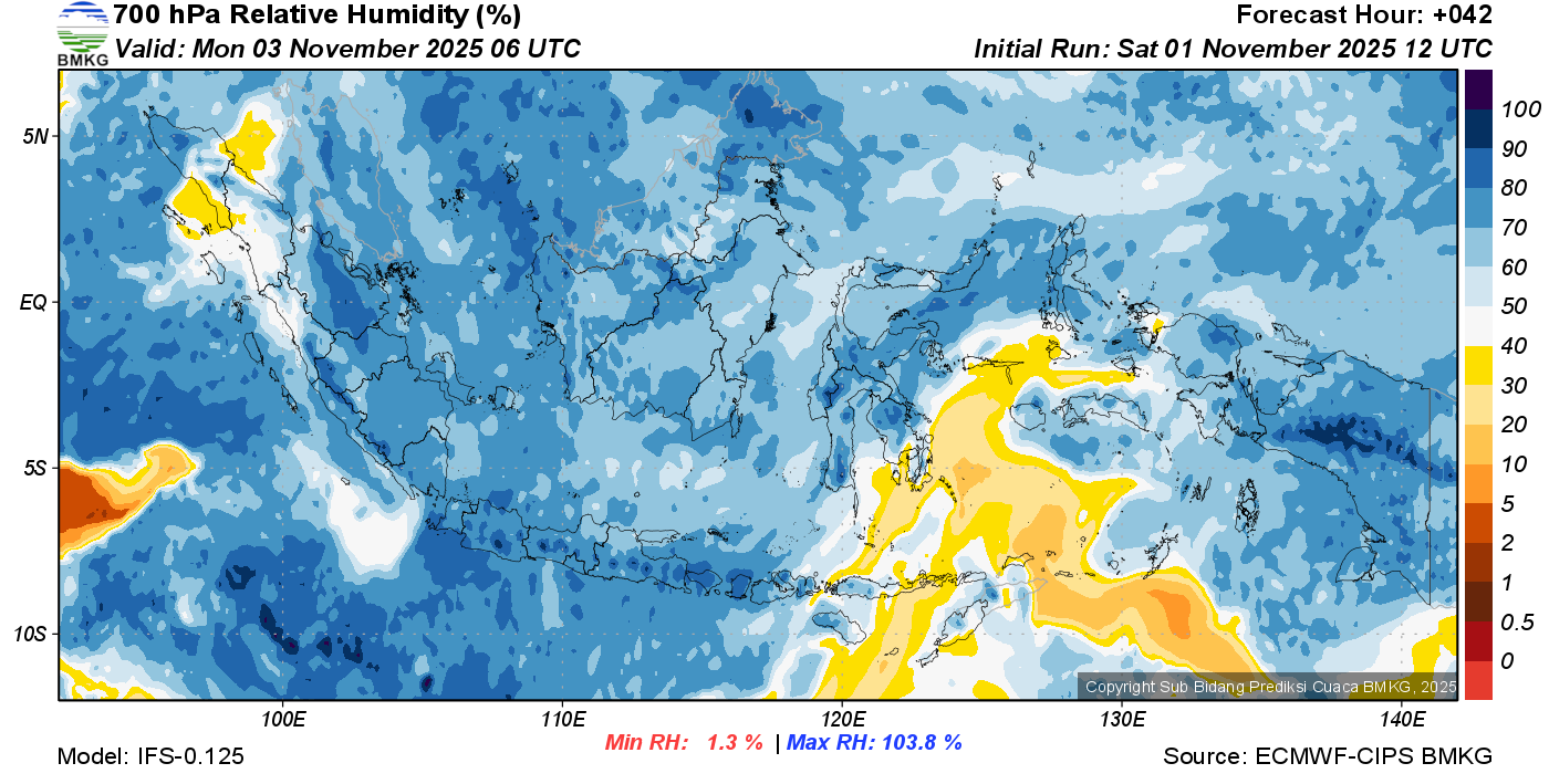 Prediksi Suhu Titik Embun 700 hPa NTT
