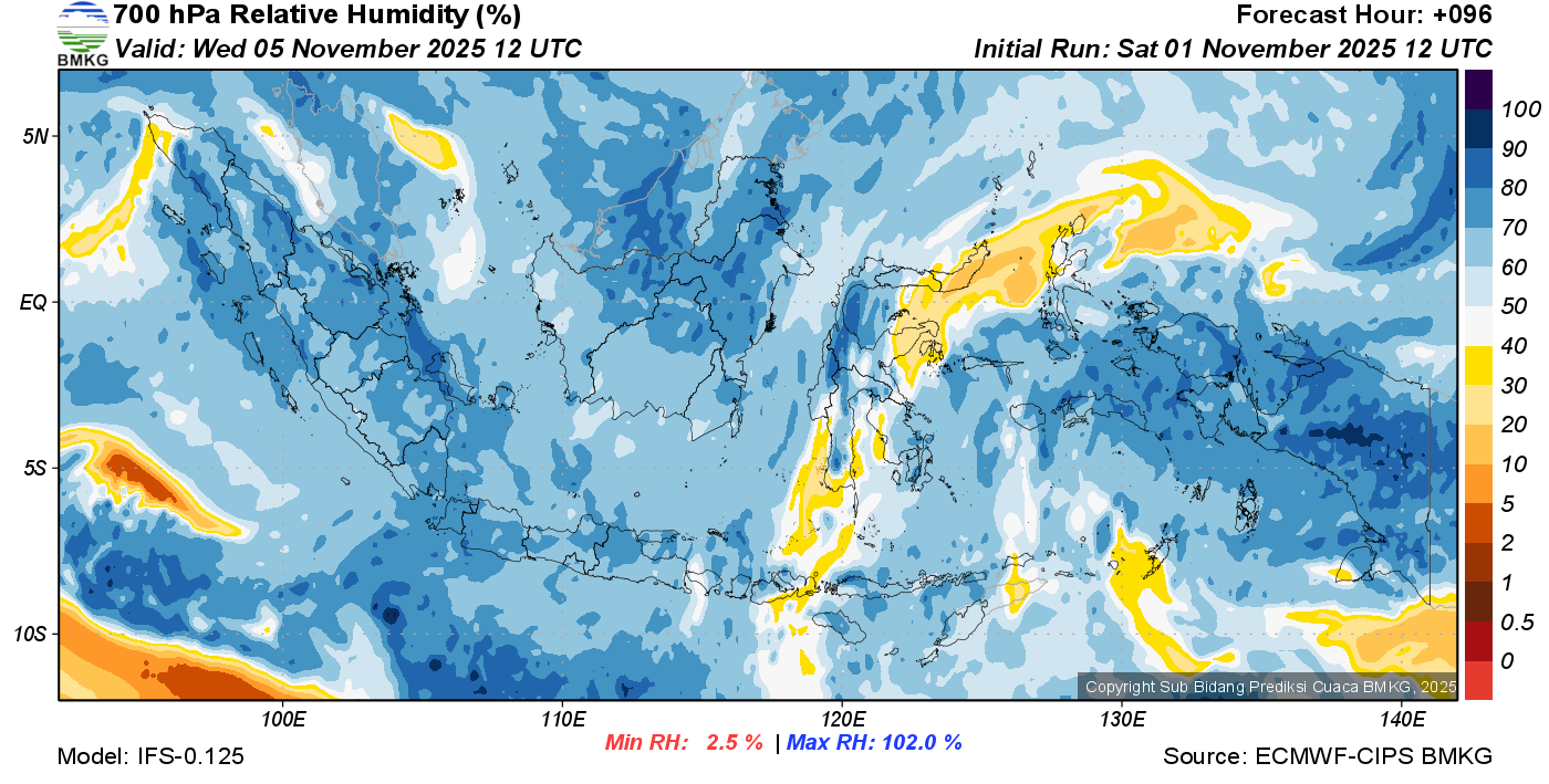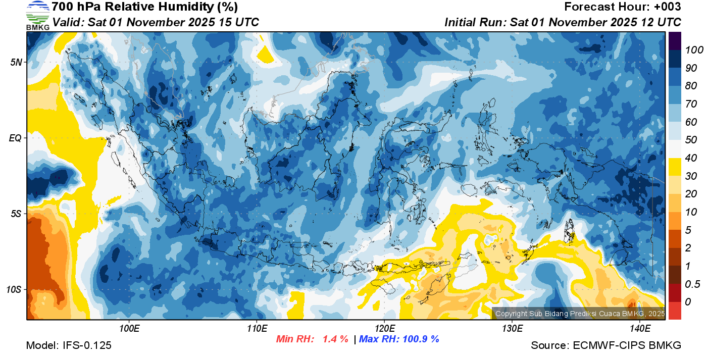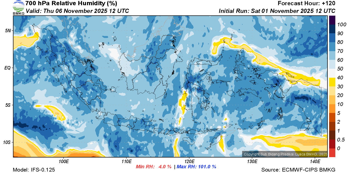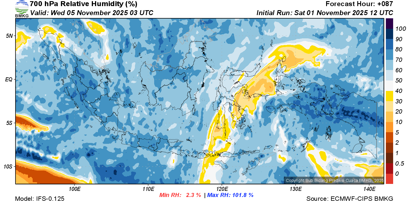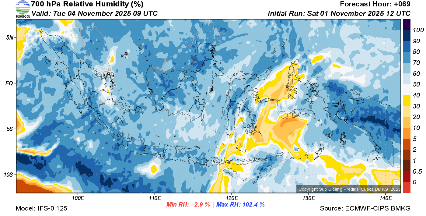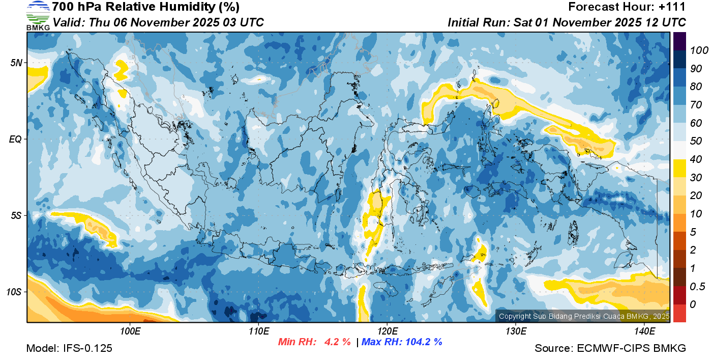Prediksi Suhu Titik Embun 700 hPa NTT