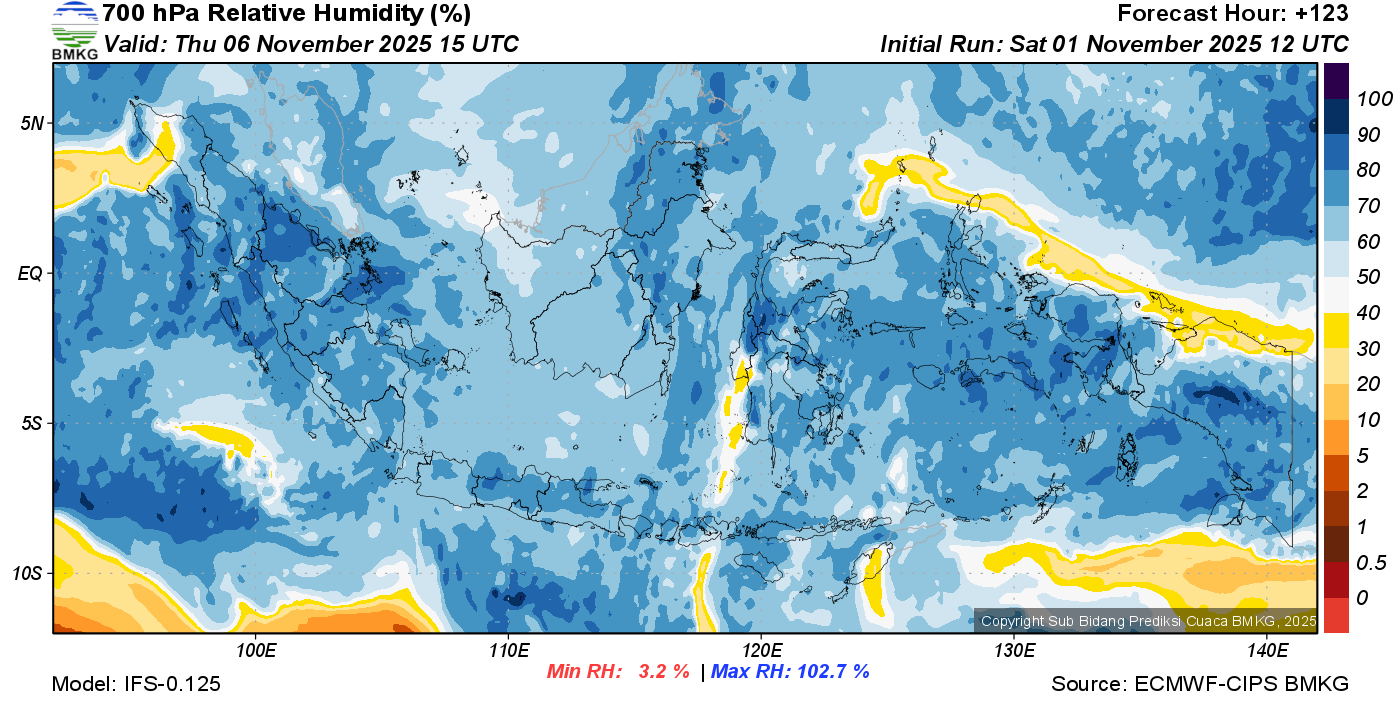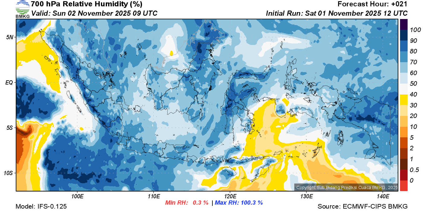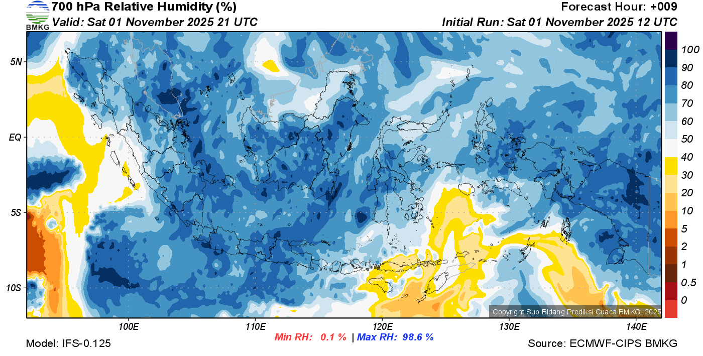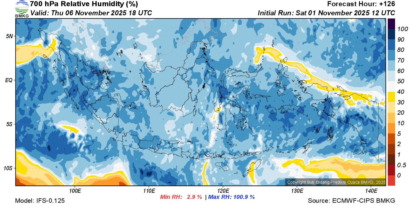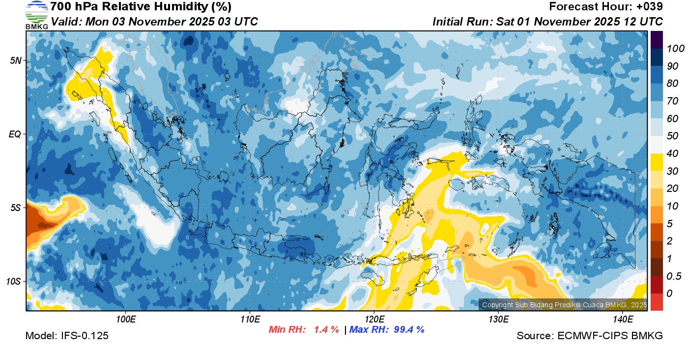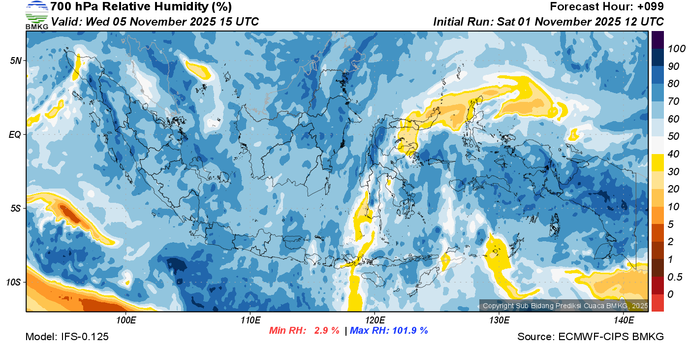 Prediksi Suhu Titik Embun 700 hPa NTT