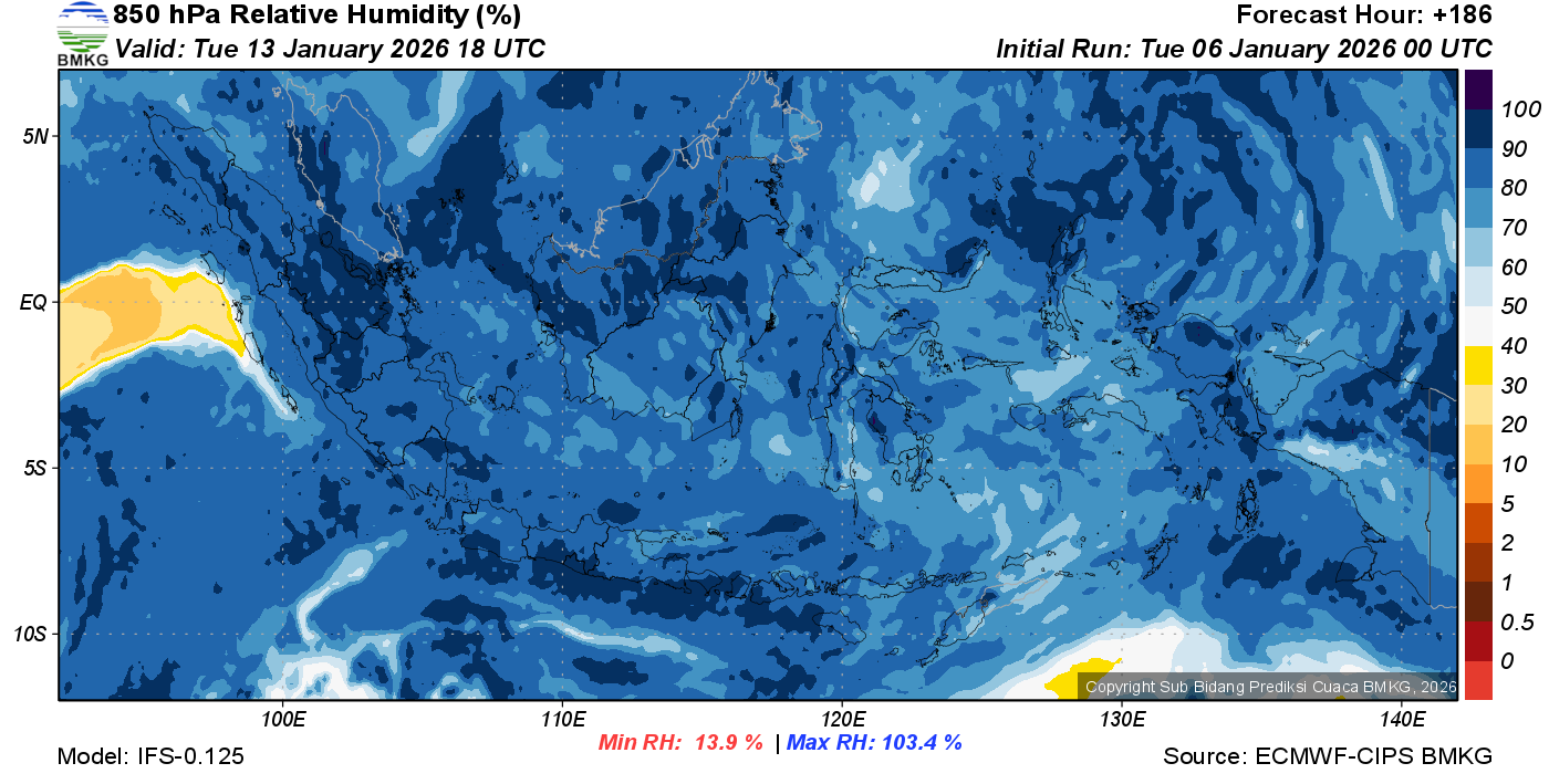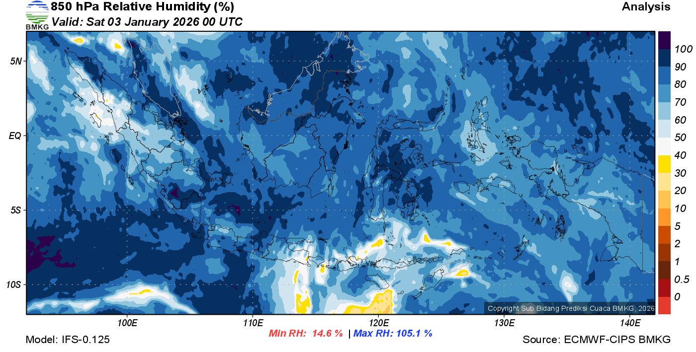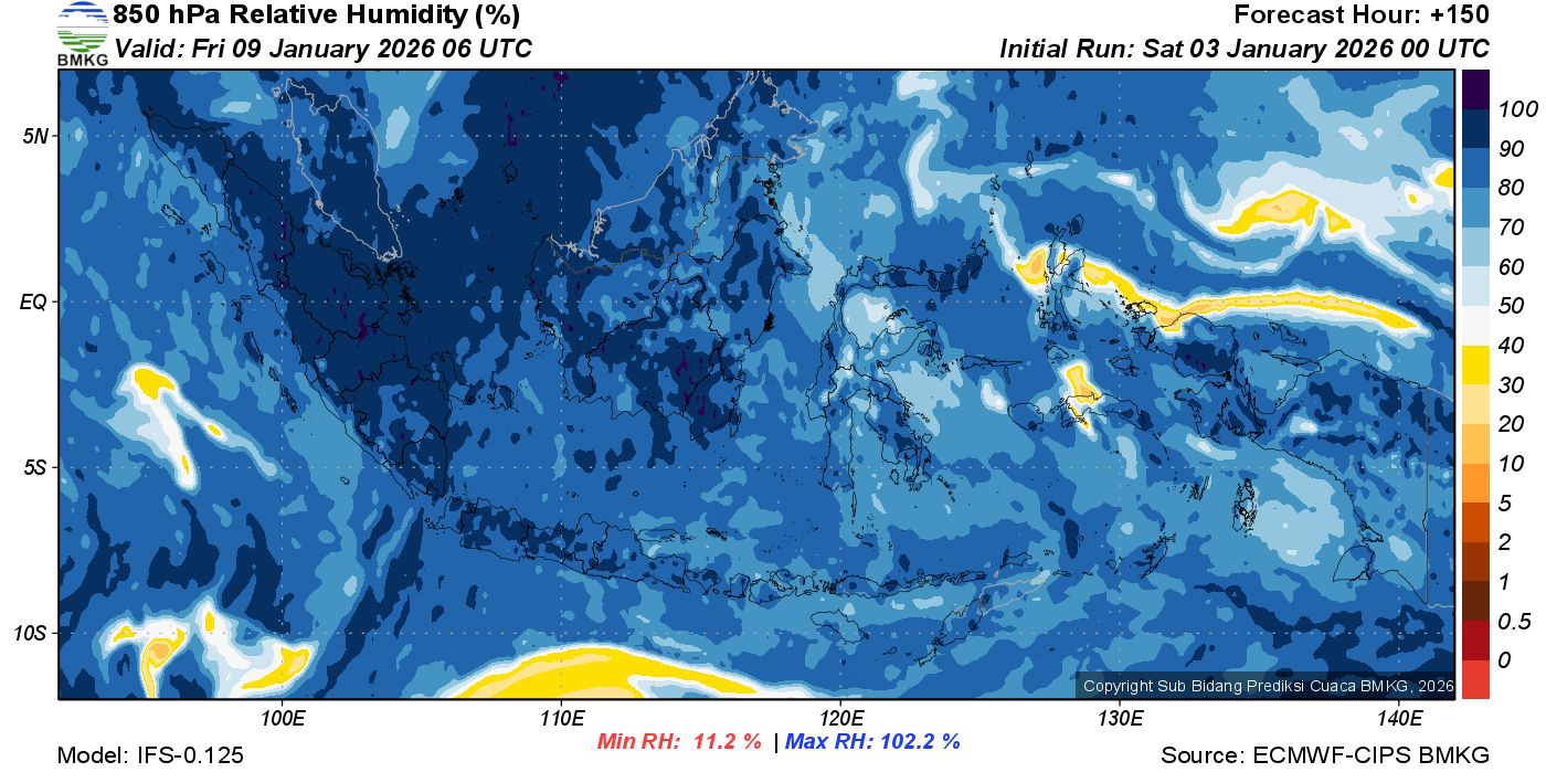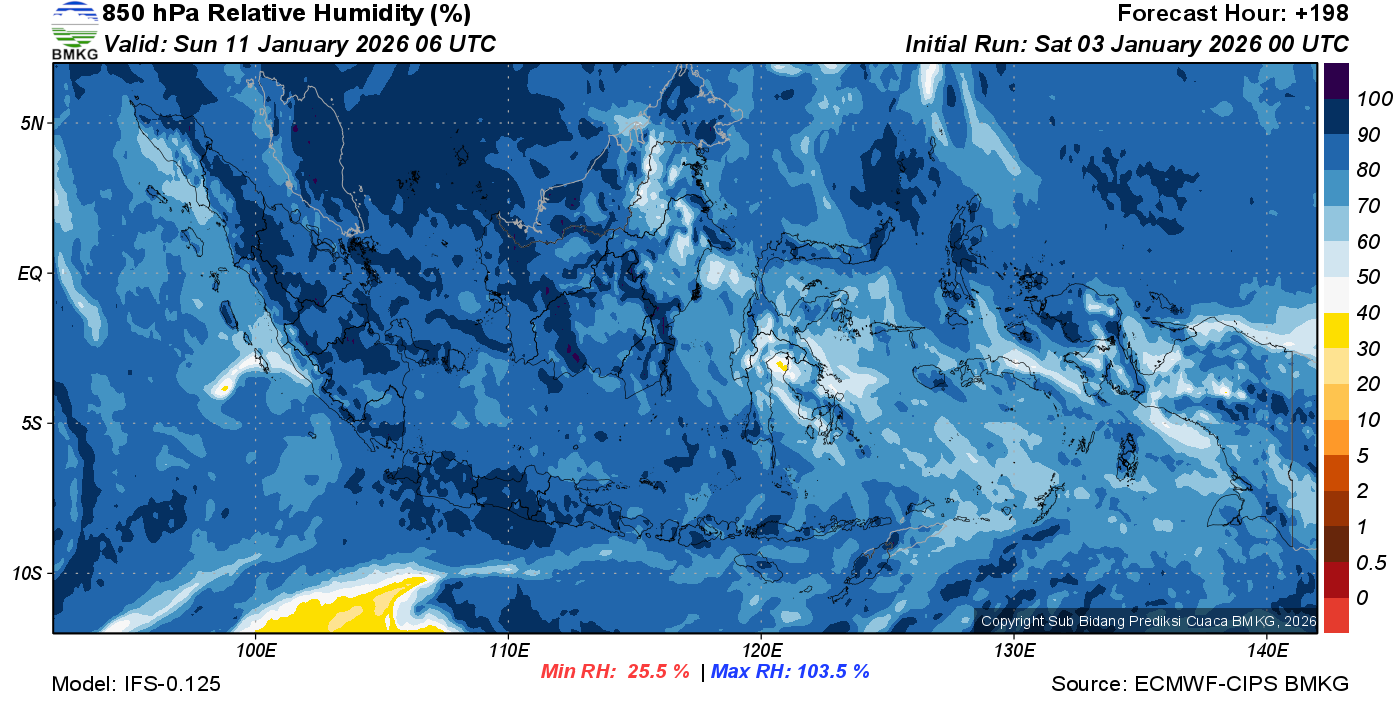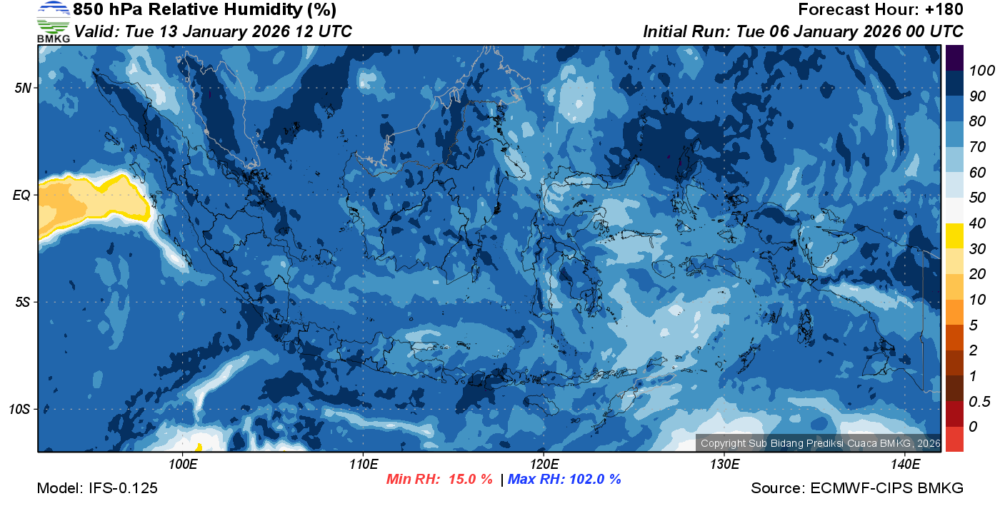 Prediksi Suhu Titik Embun 850 hPa NTT