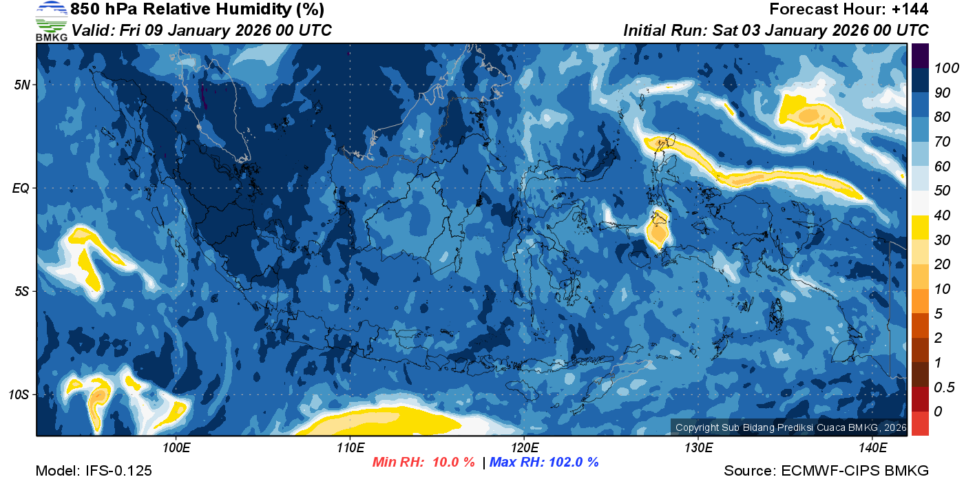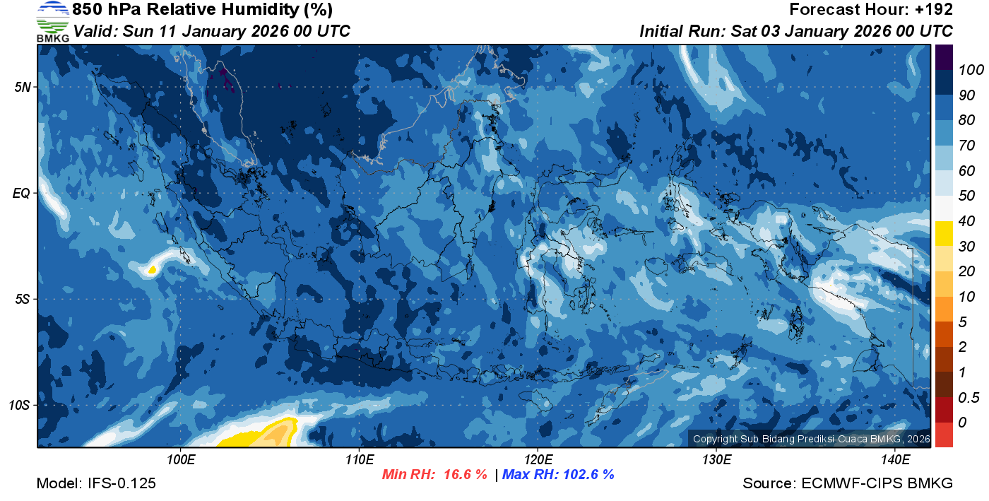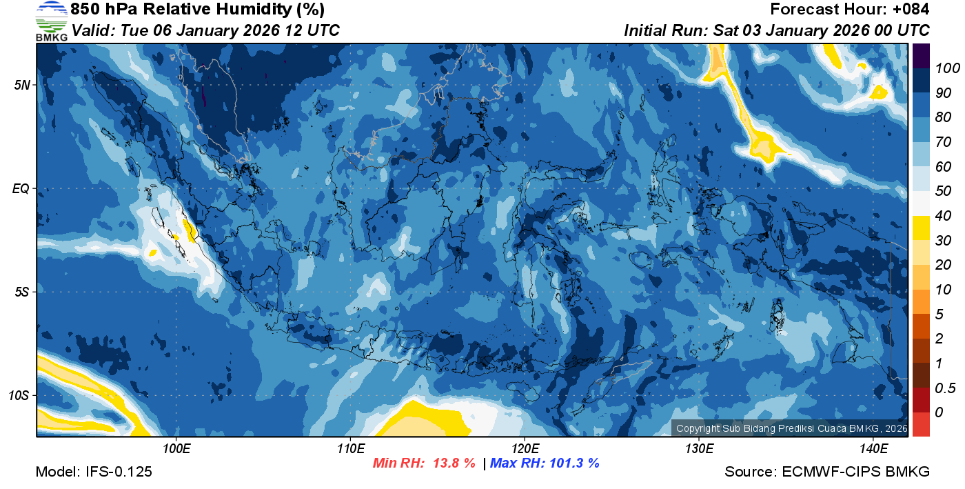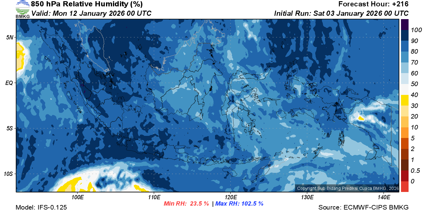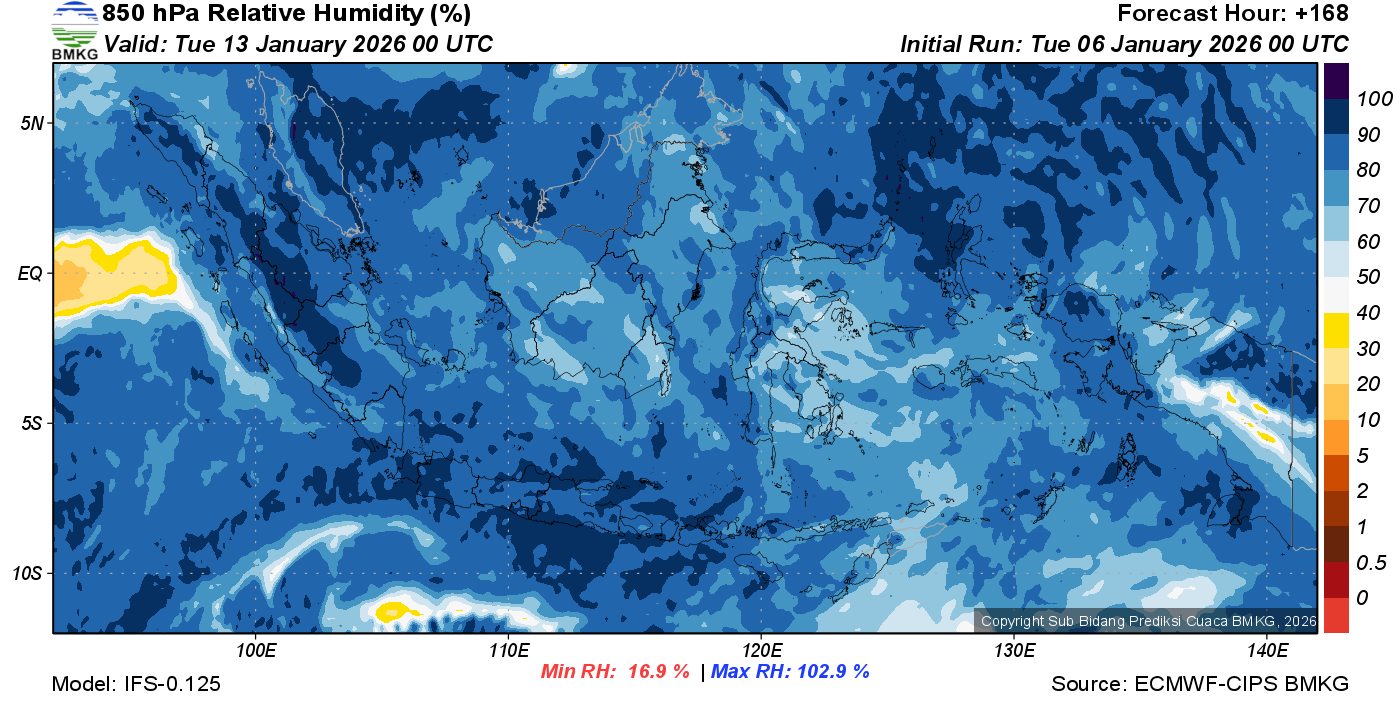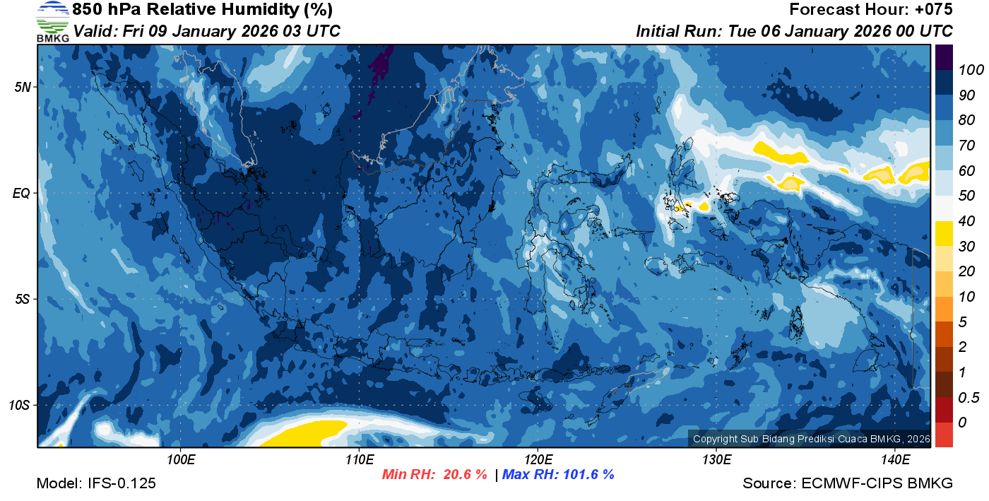 Prediksi Suhu Titik Embun 850 hPa NTT