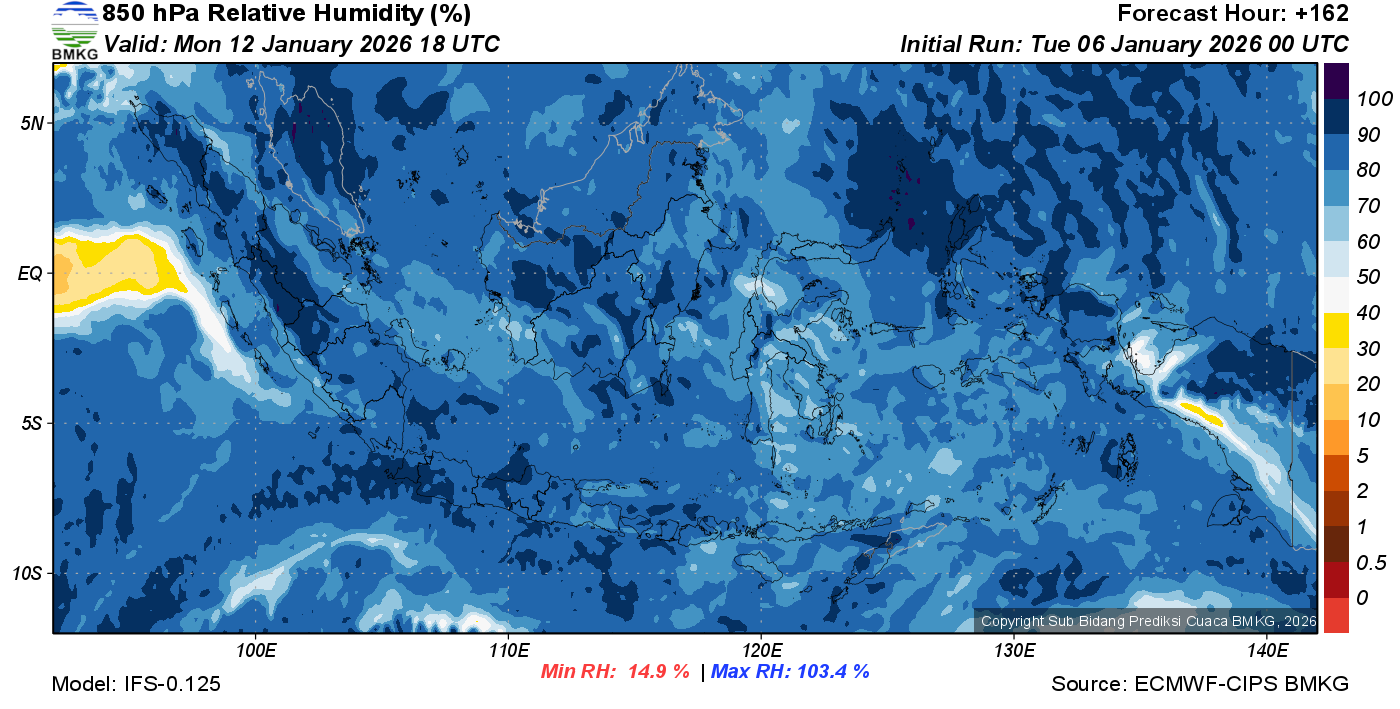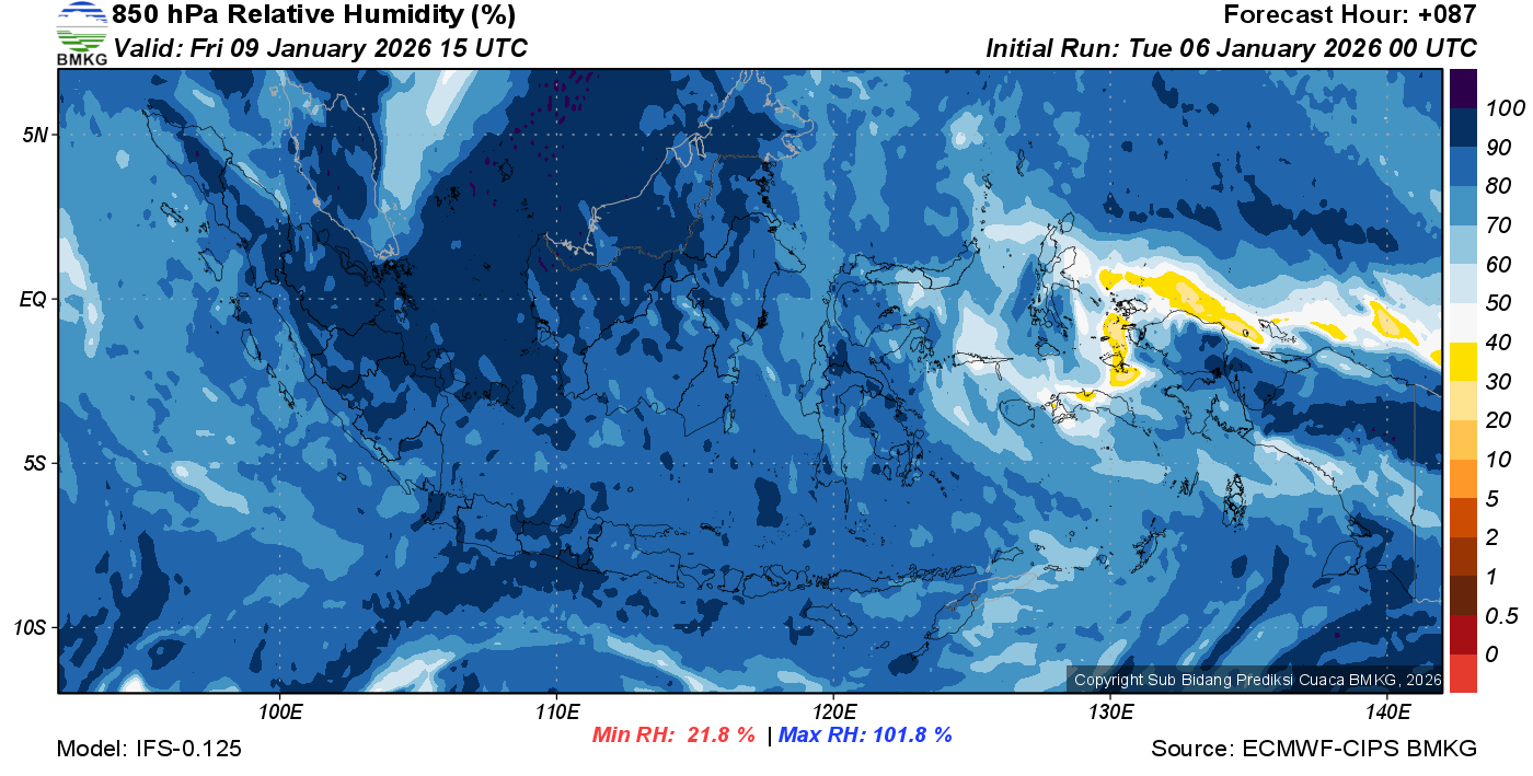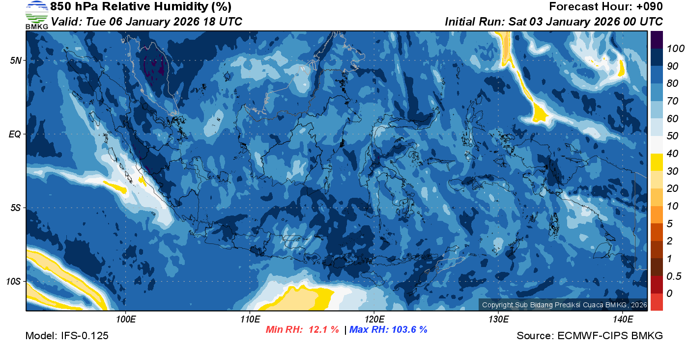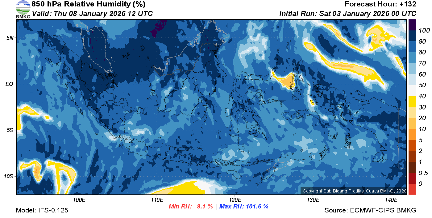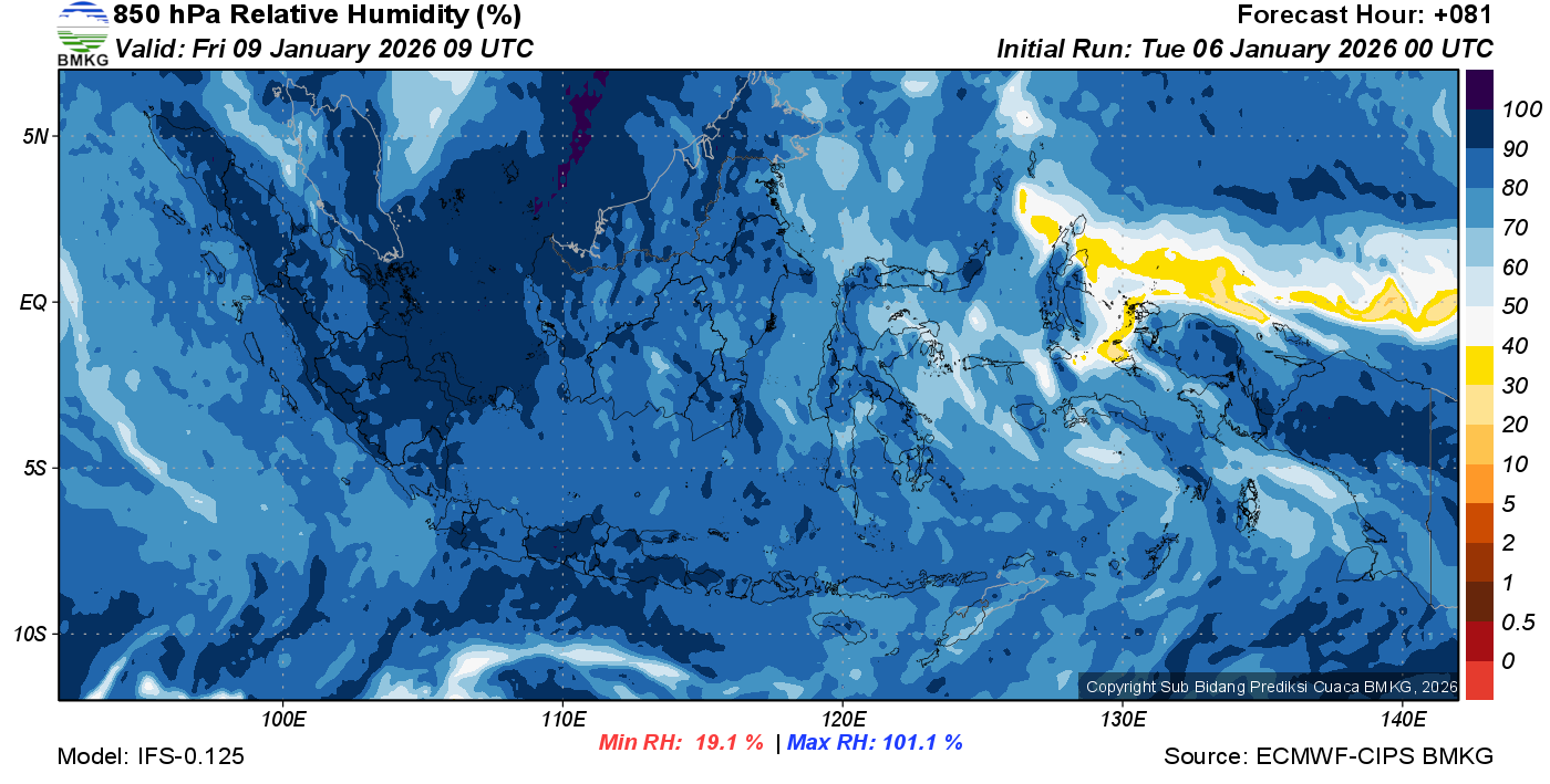 Prediksi Suhu Titik Embun 850 hPa NTT