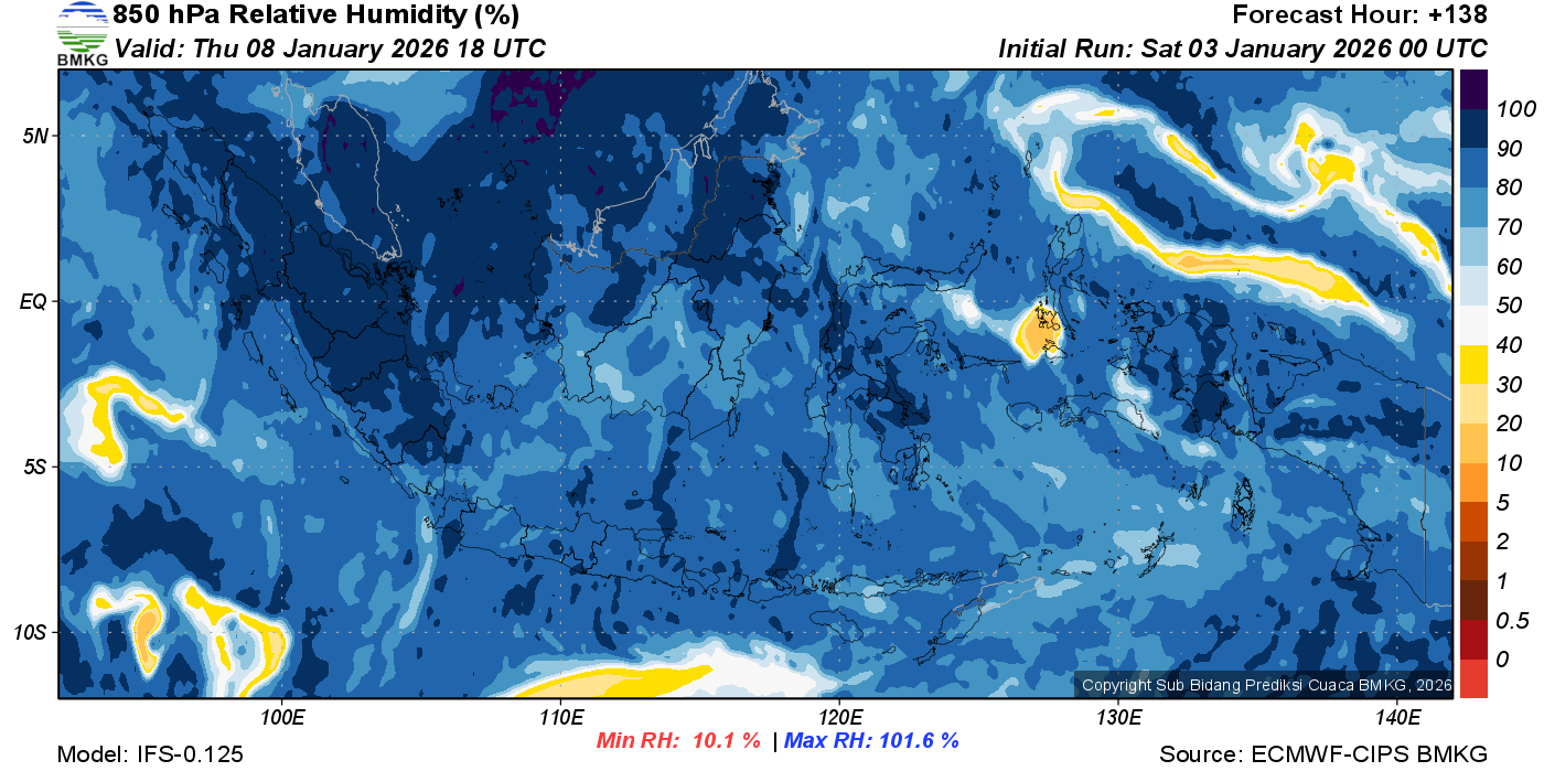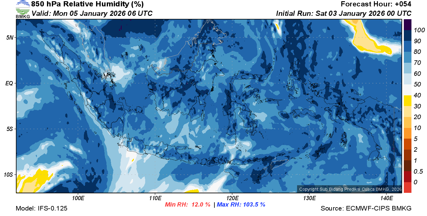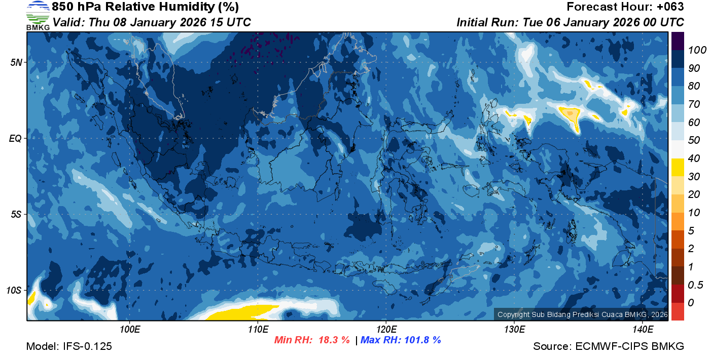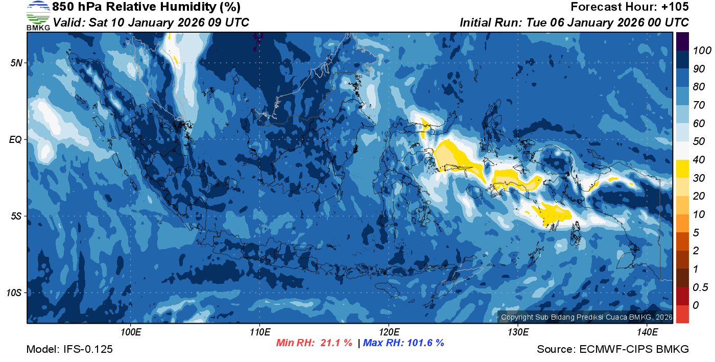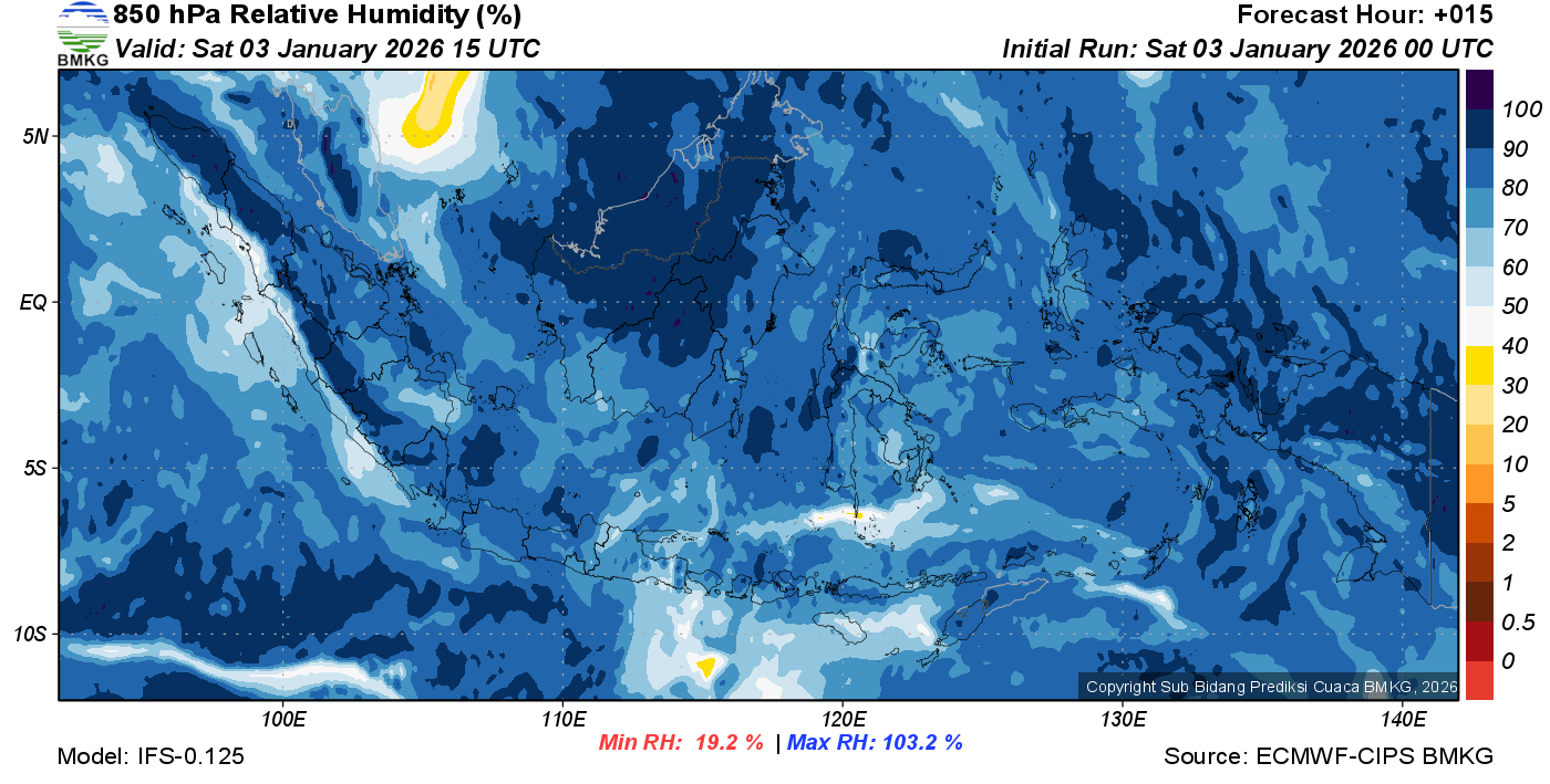 Prediksi Suhu Titik Embun 850 hPa NTT
