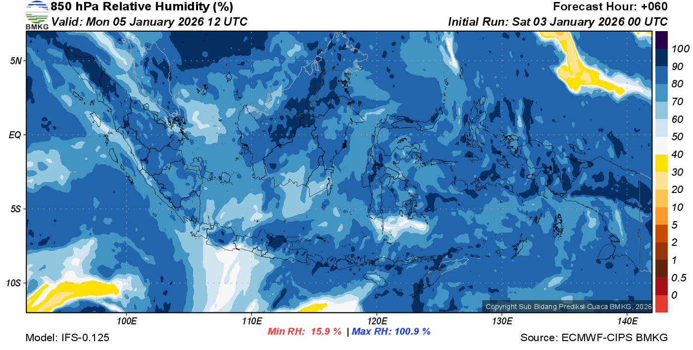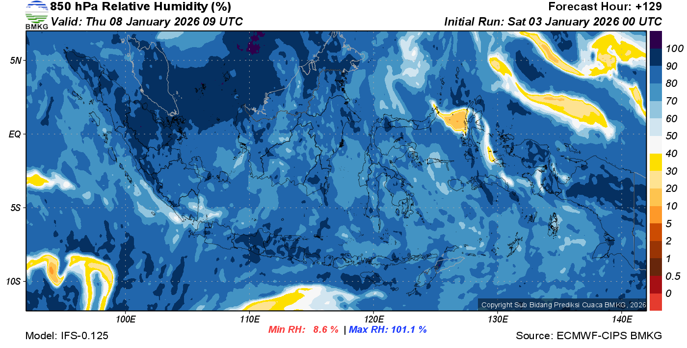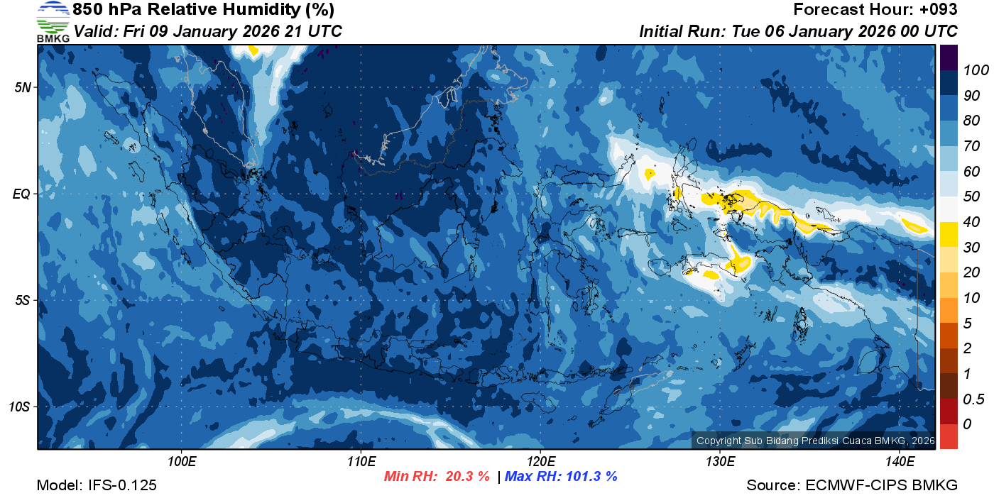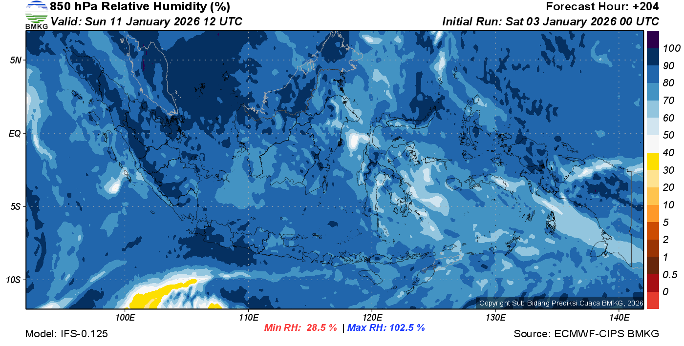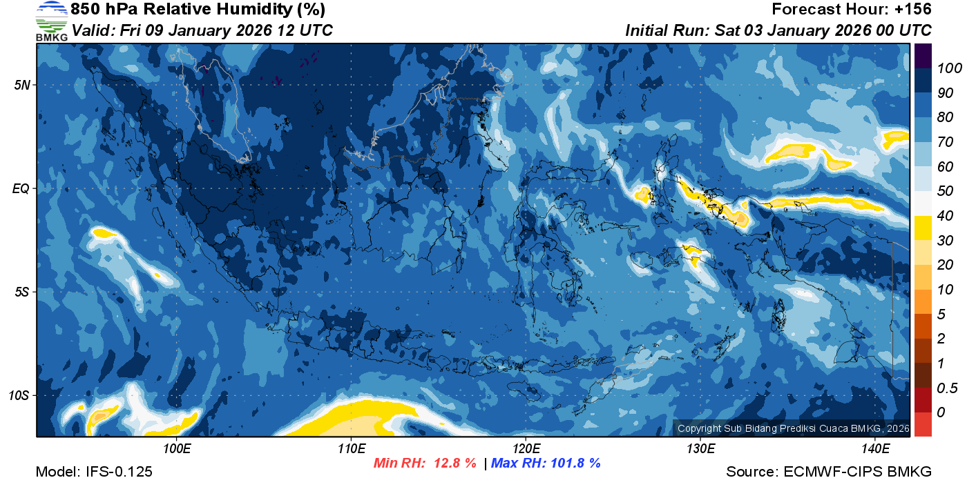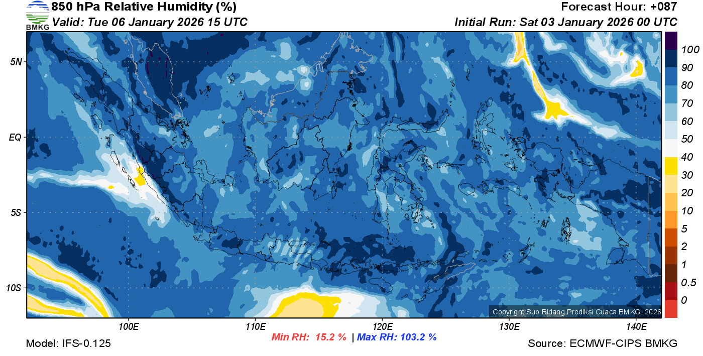 Prediksi Suhu Titik Embun 850 hPa NTT