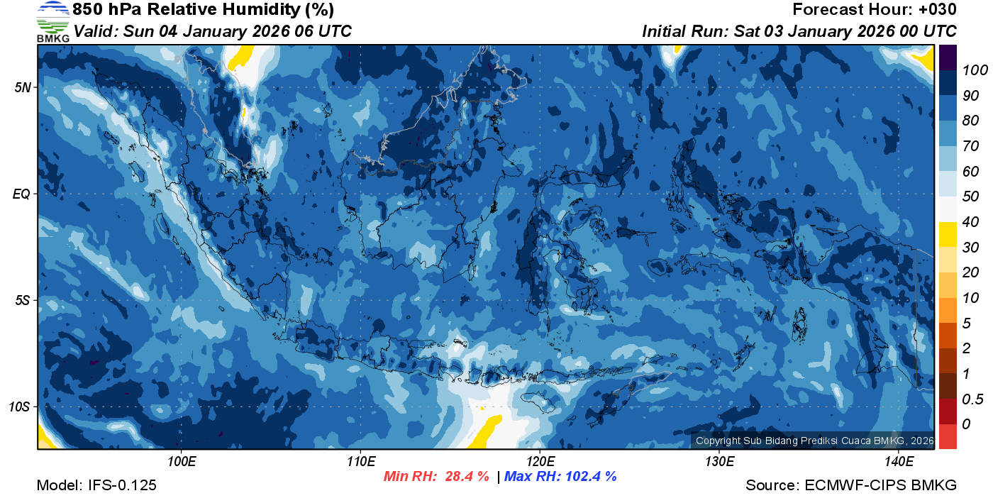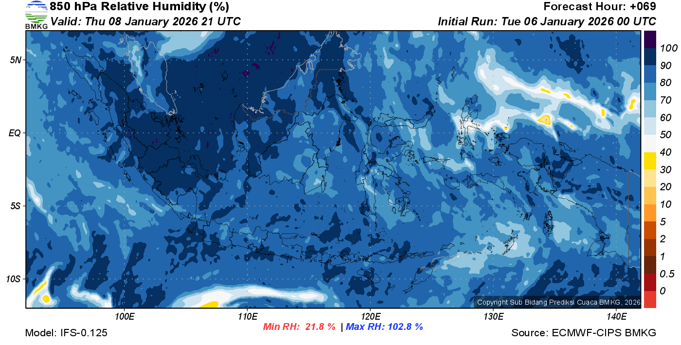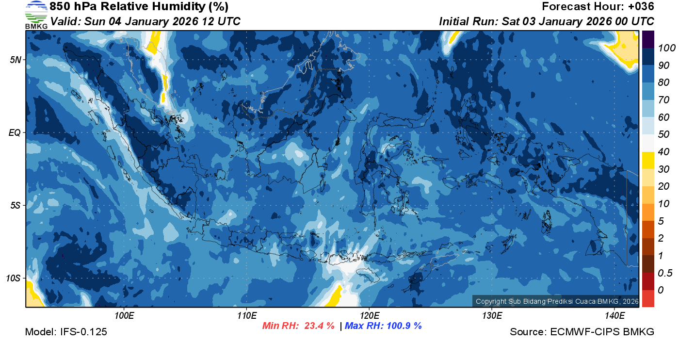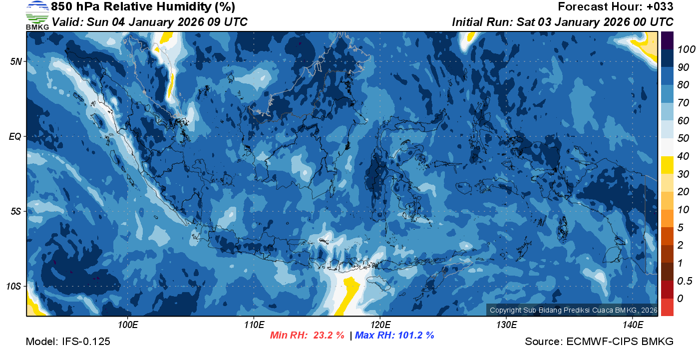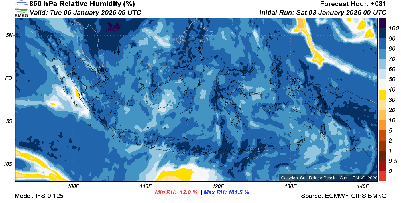 Prediksi Suhu Titik Embun 850 hPa NTT
