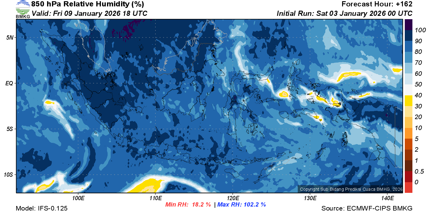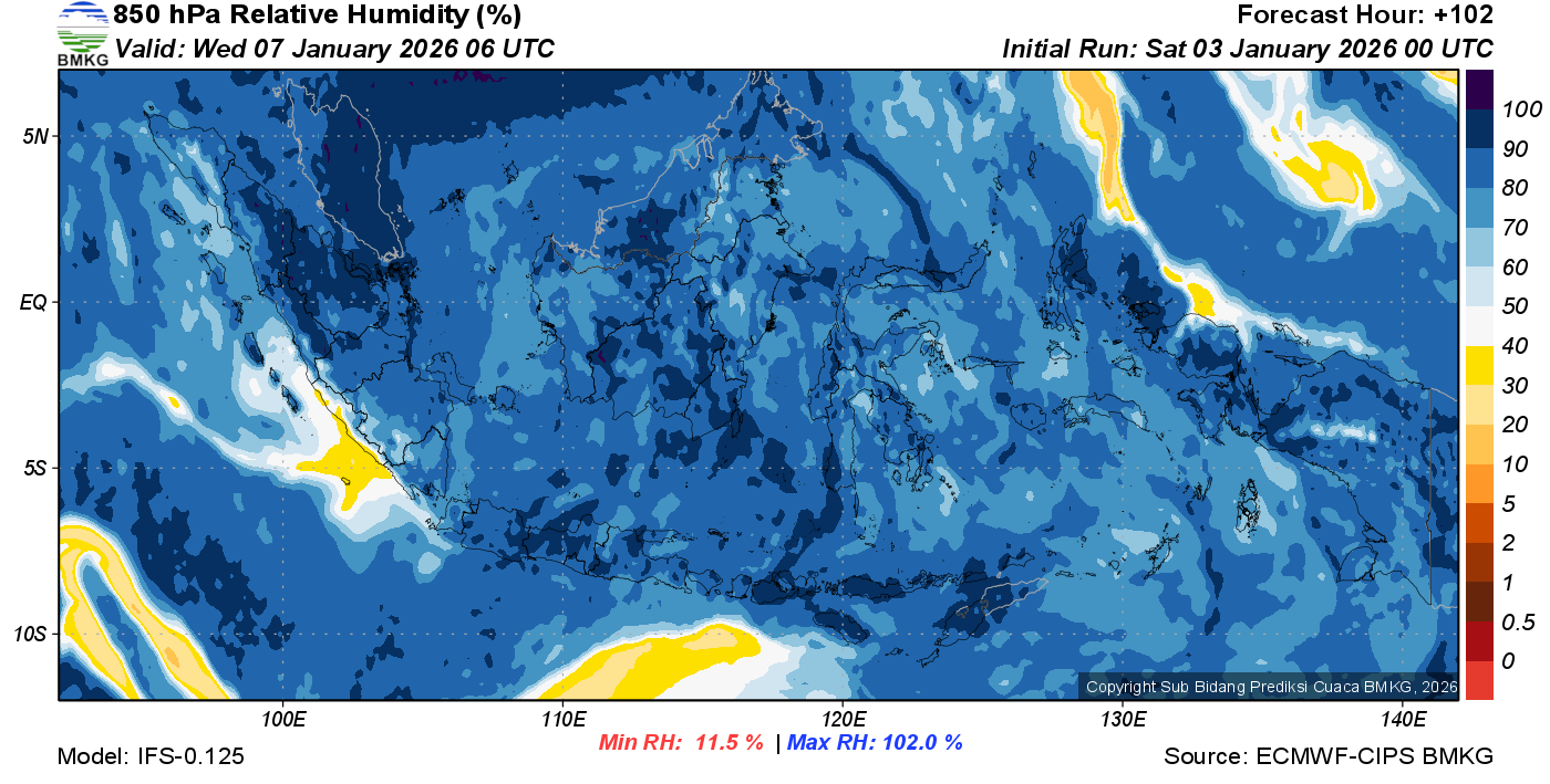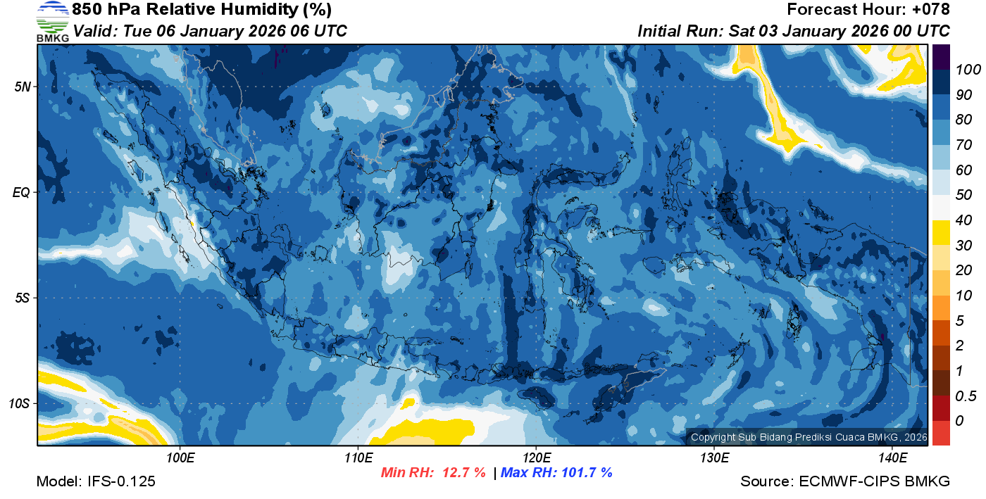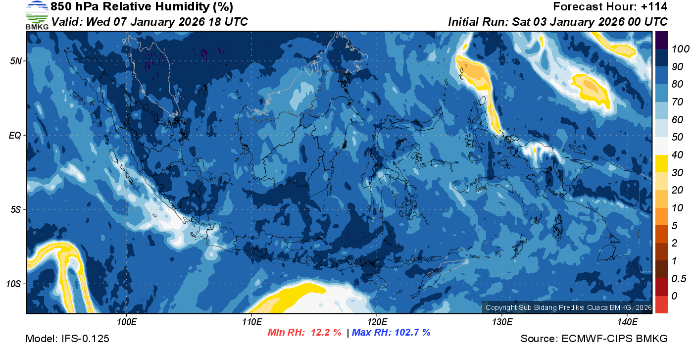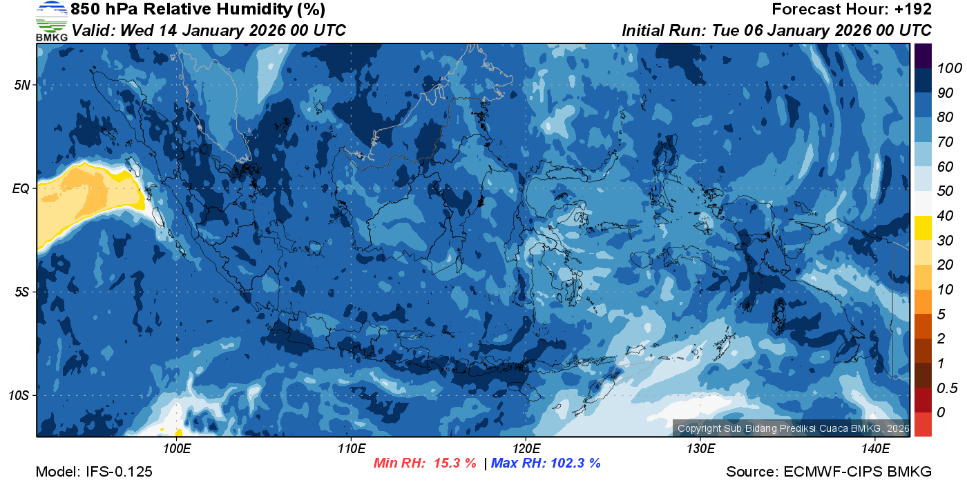 Prediksi Suhu Titik Embun 700 hPa NTT