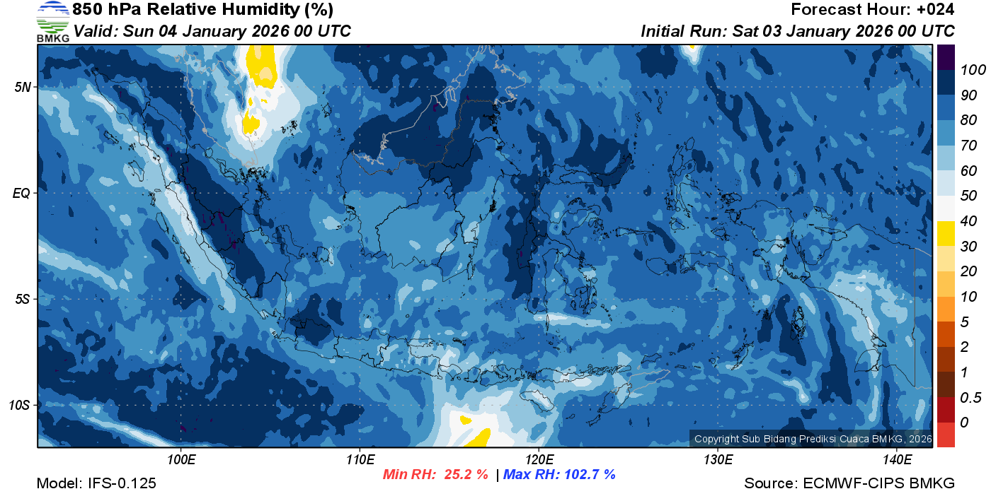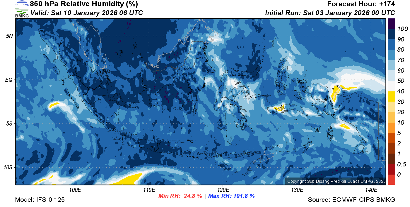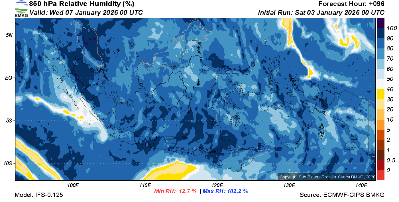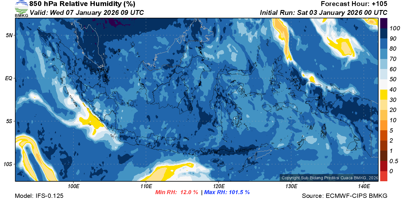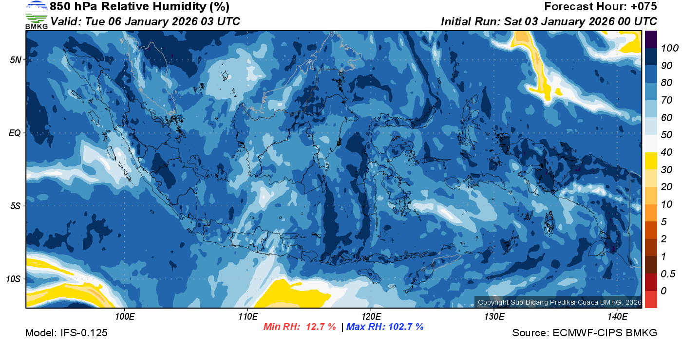 Prediksi Suhu Titik Embun 700 hPa NTT