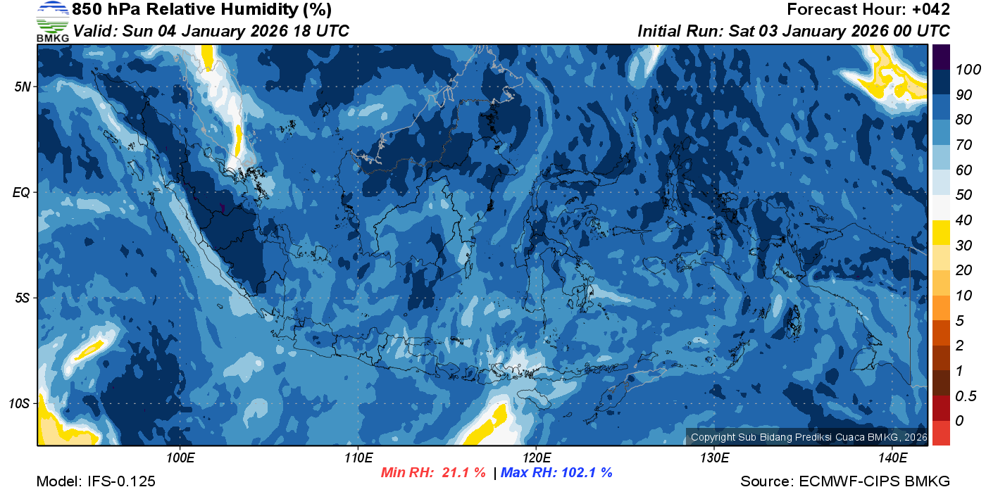 Prakiraan Angin Lapisan 850 Gunung Awu