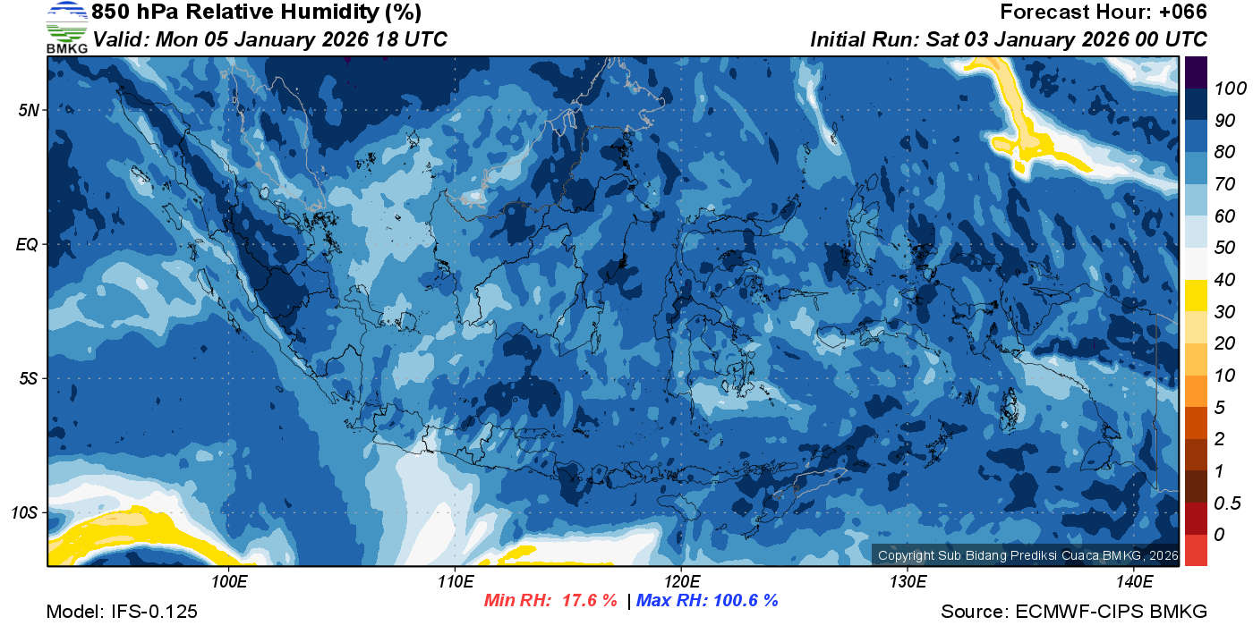 Prediksi Suhu Titik Embun 600 hPa NTT