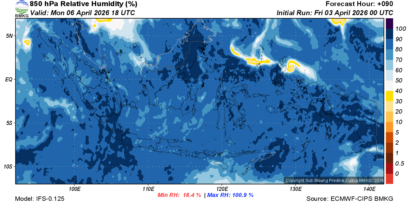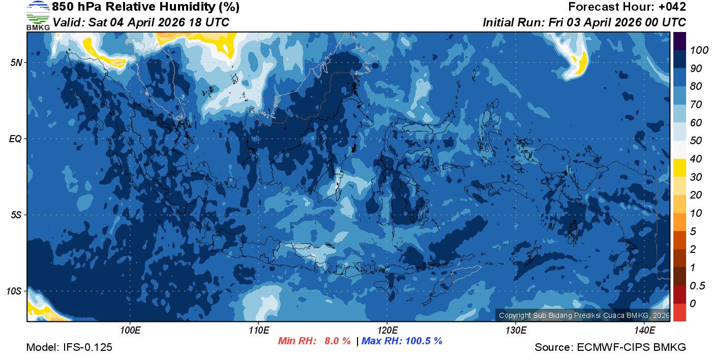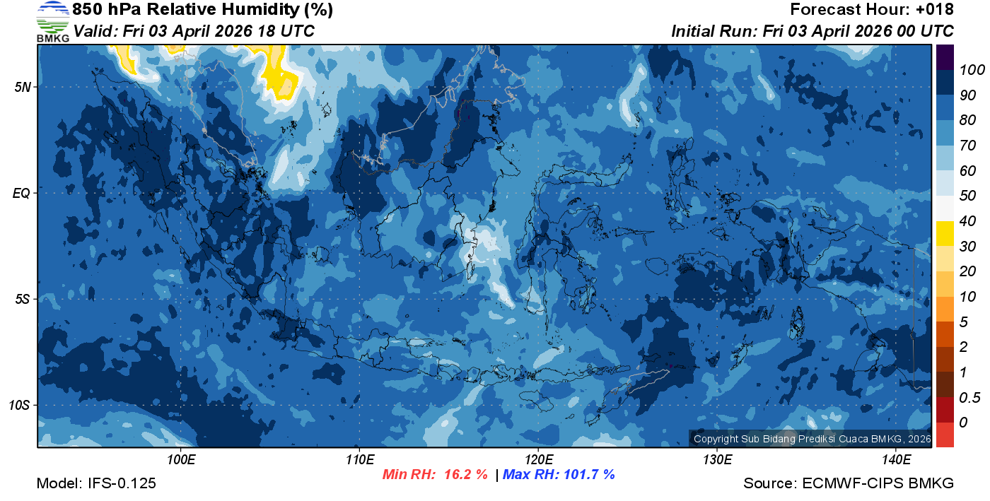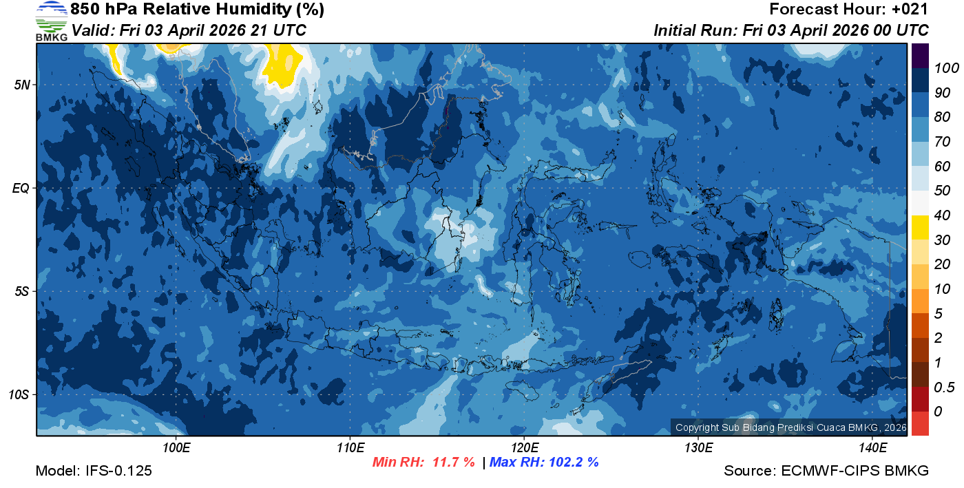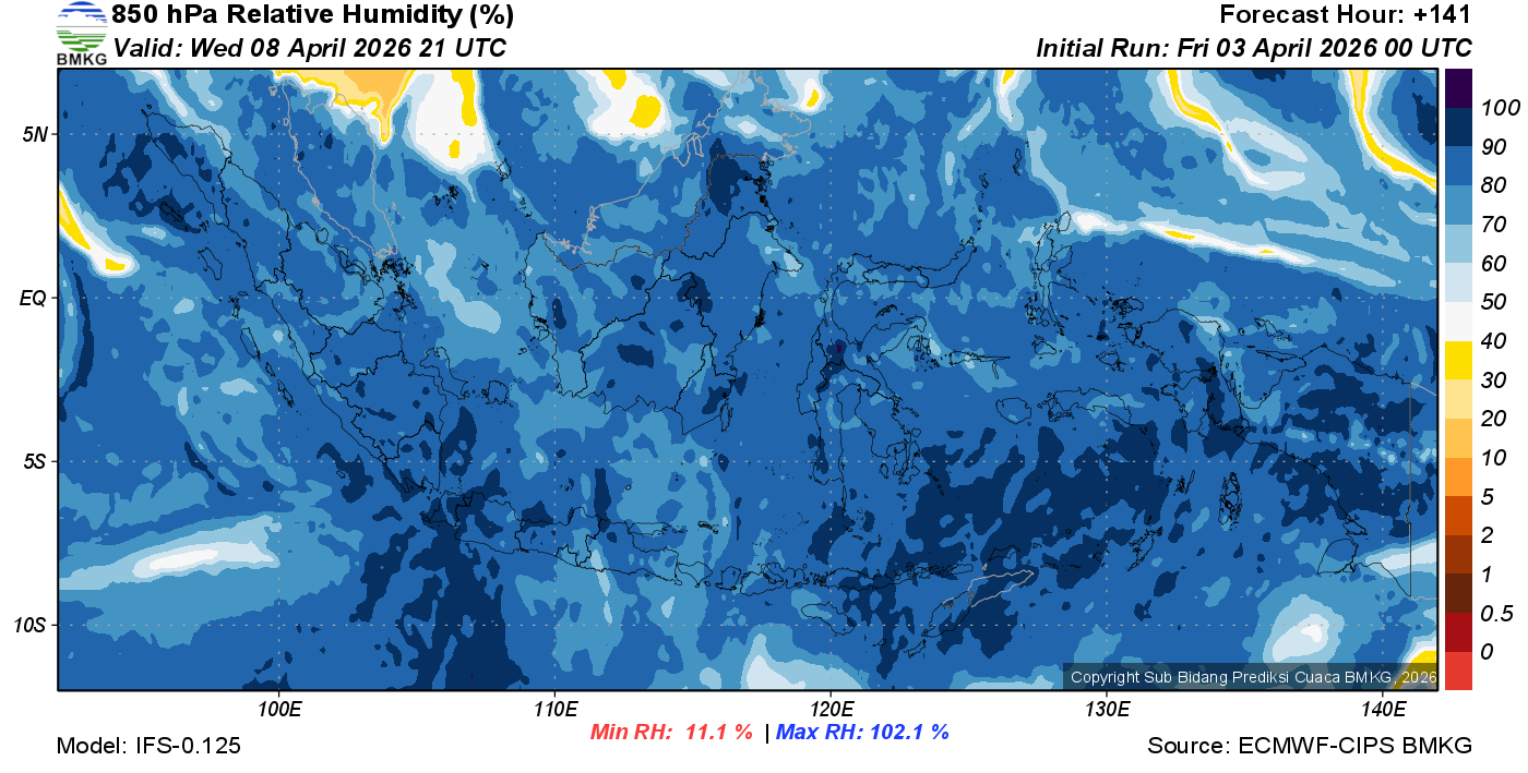 Prediksi Kelembapan 850 hPa NTT