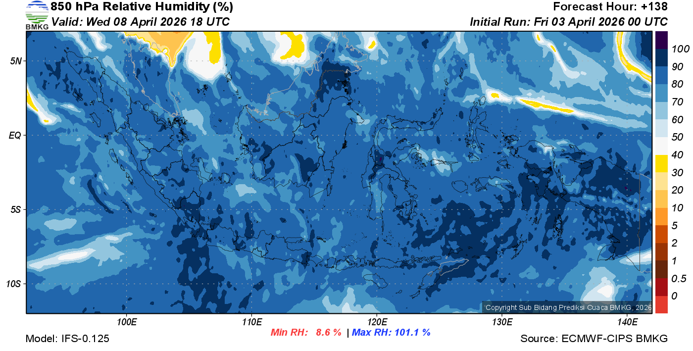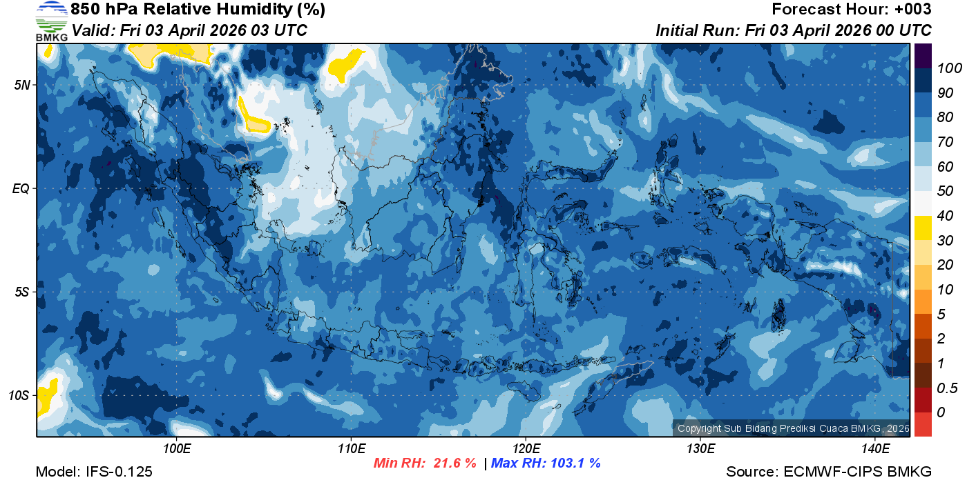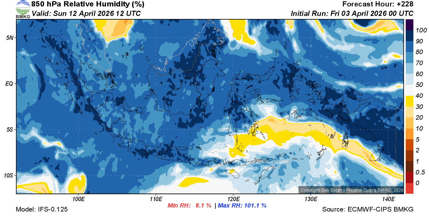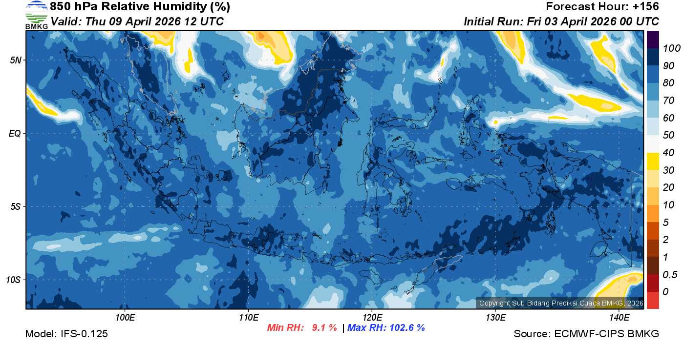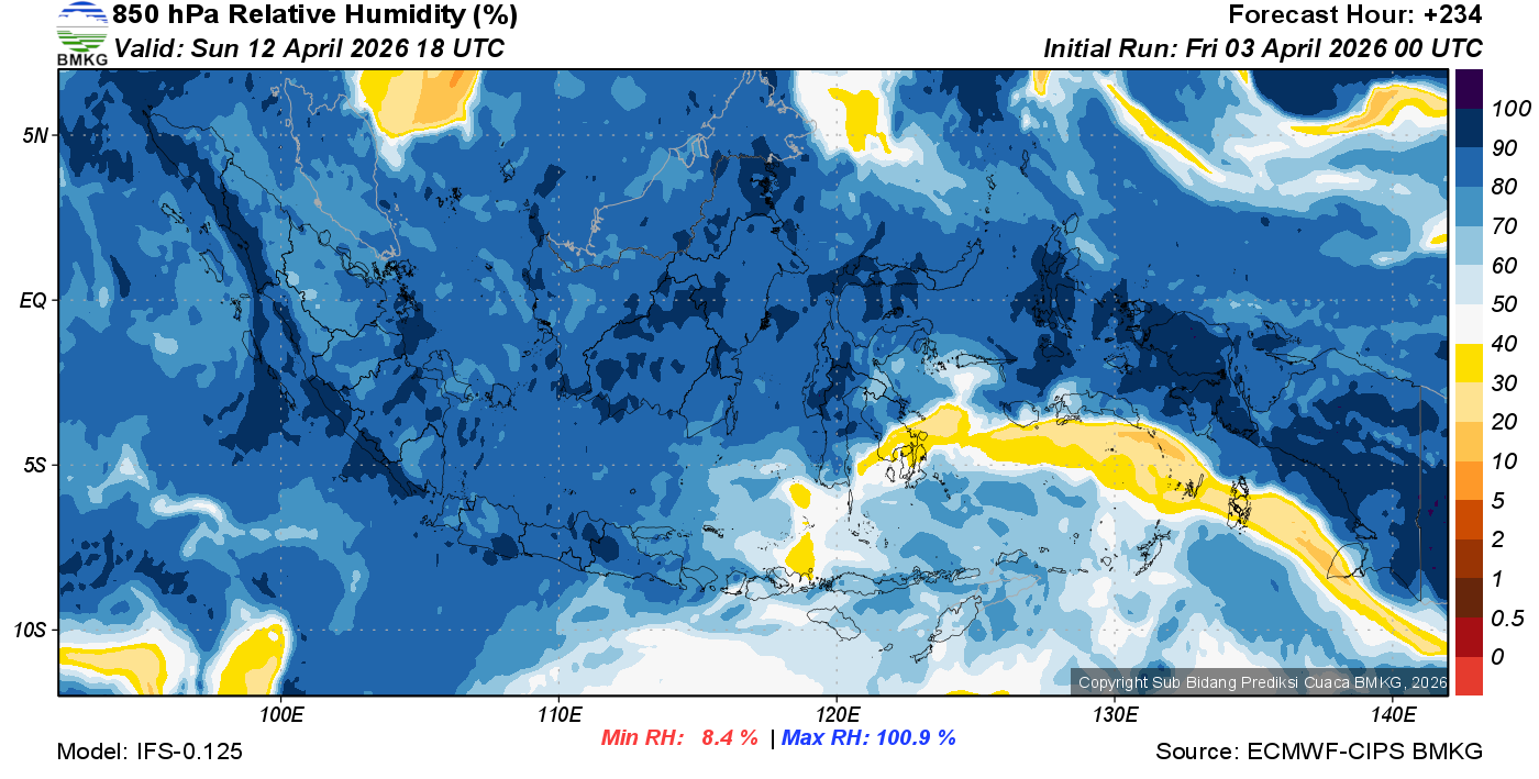 Prediksi Kelembapan 850 hPa NTT
