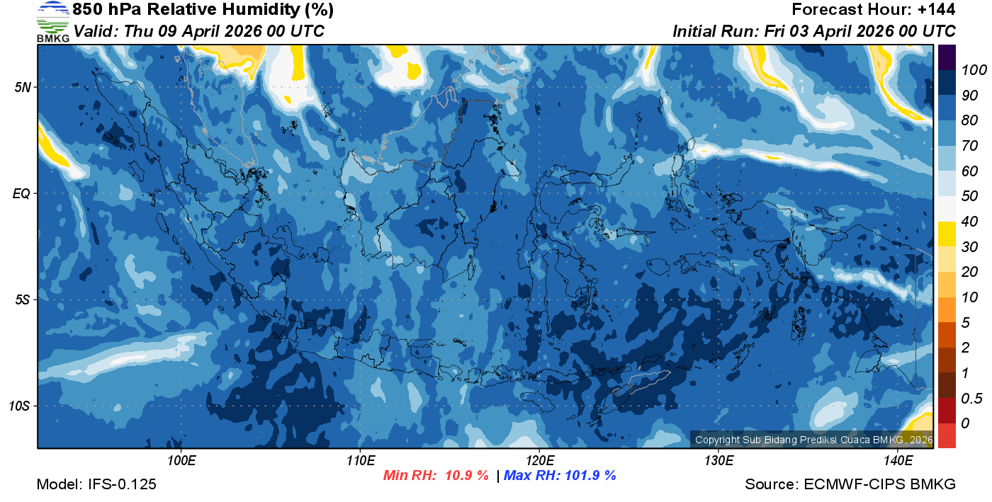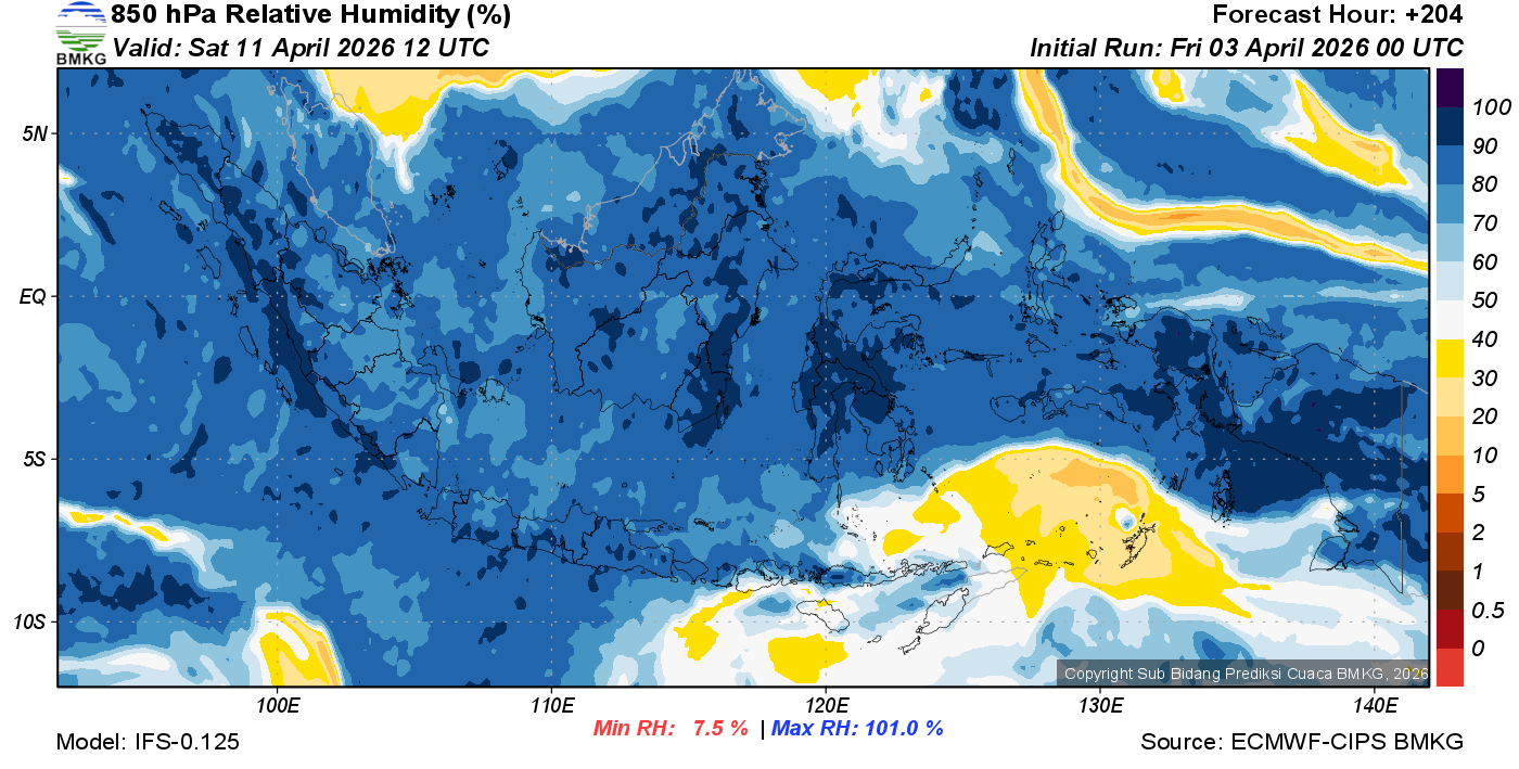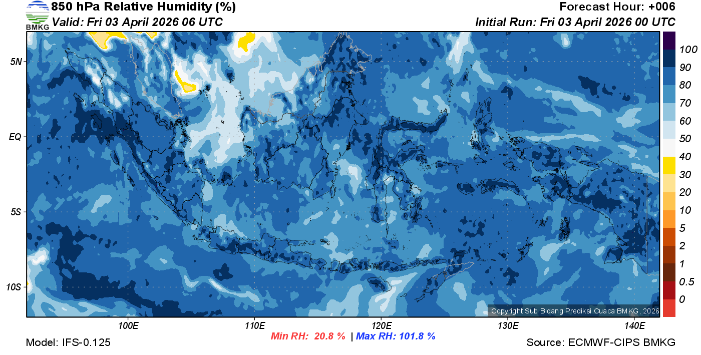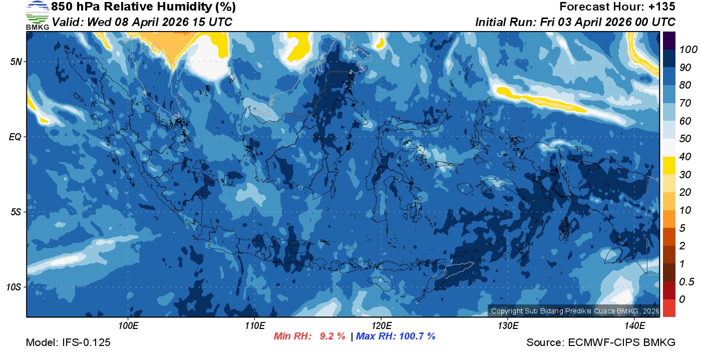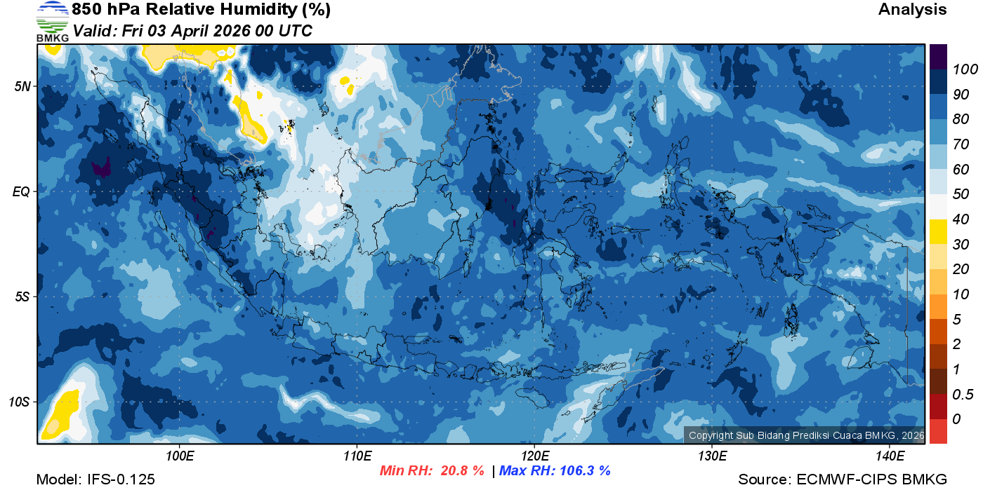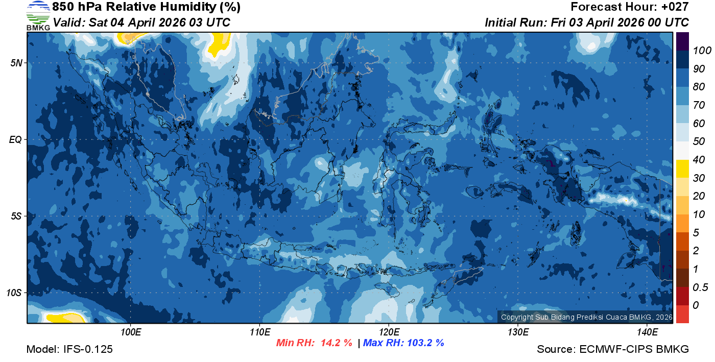 Prediksi Kelembapan 850 hPa NTT