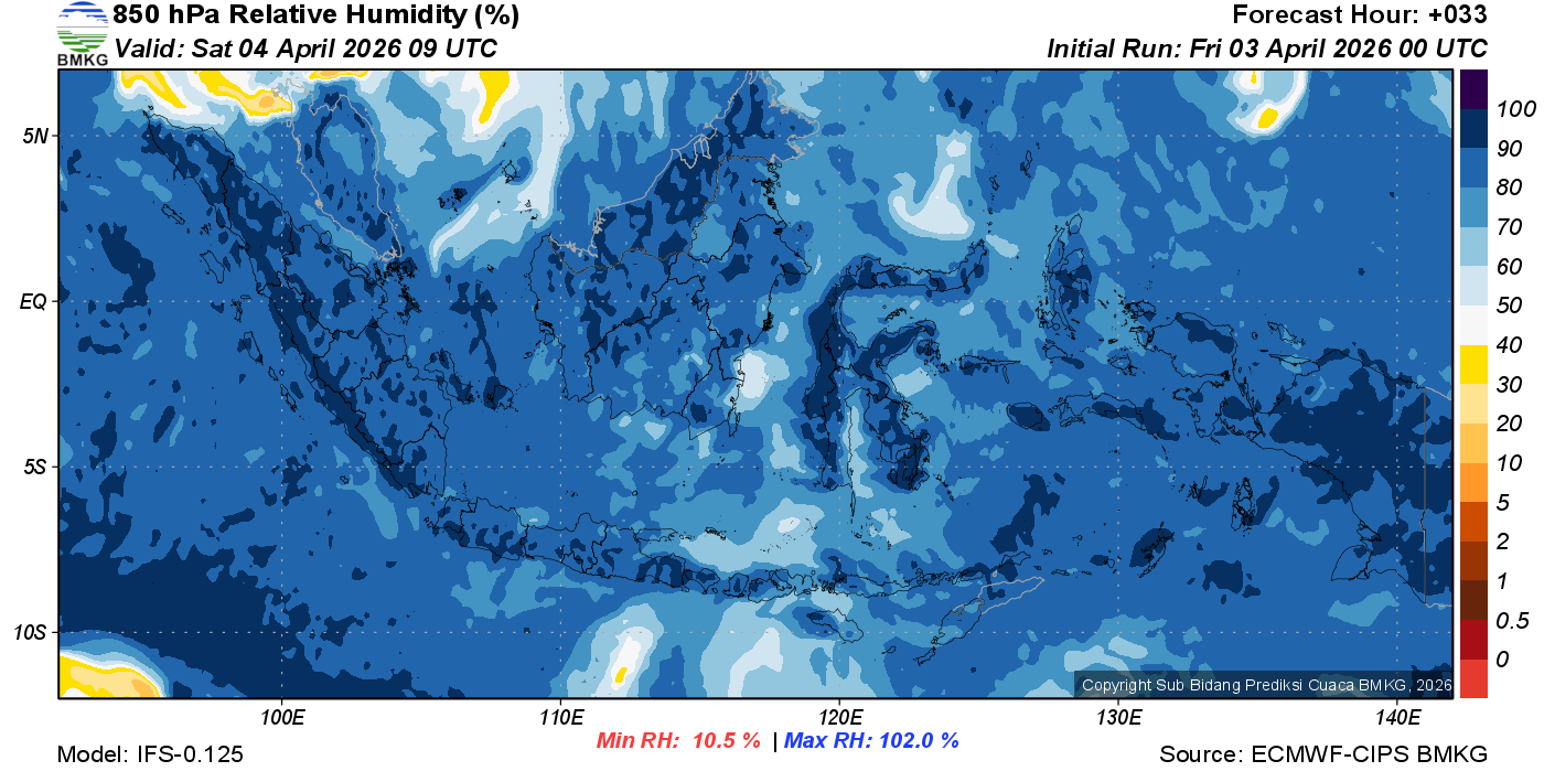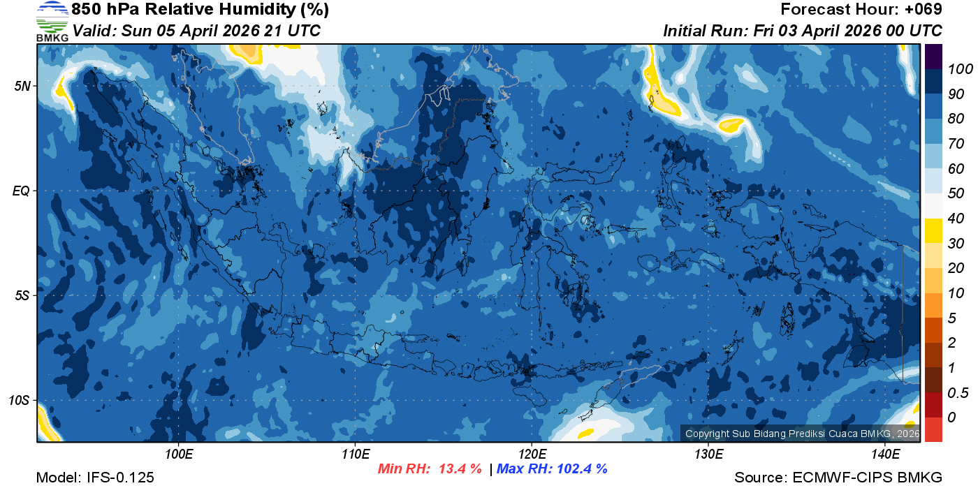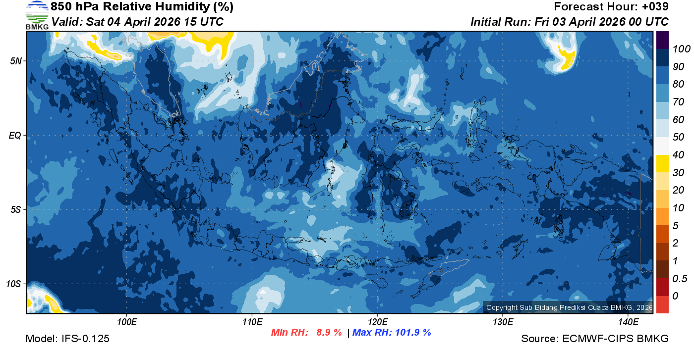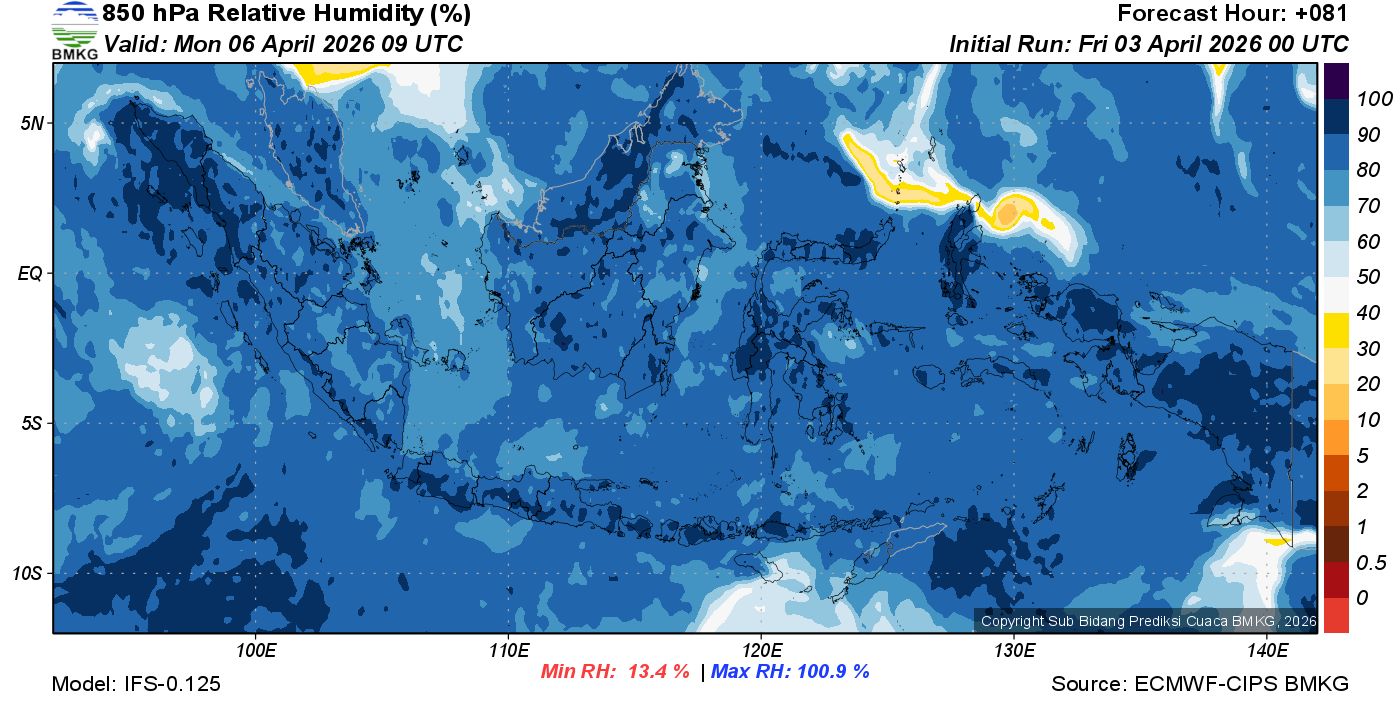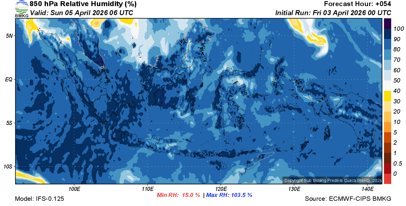 Prediksi Kelembapan 850 hPa NTT