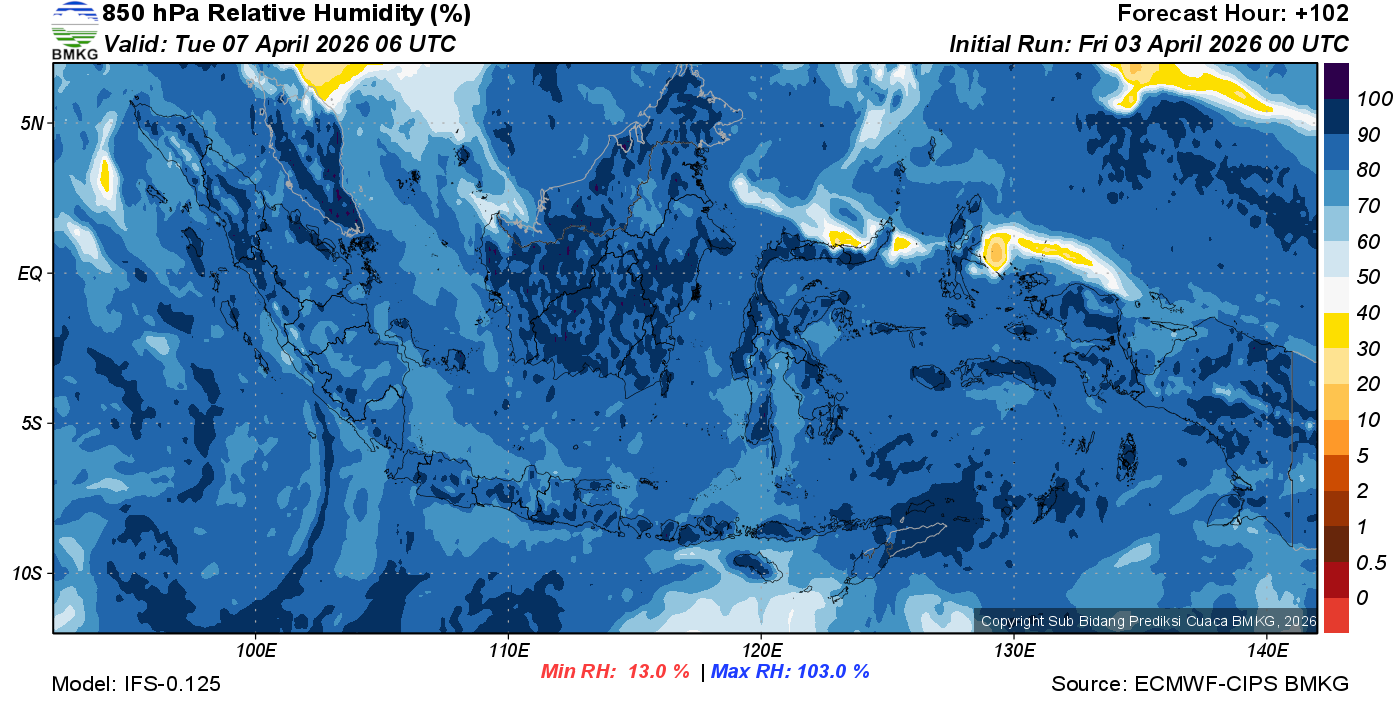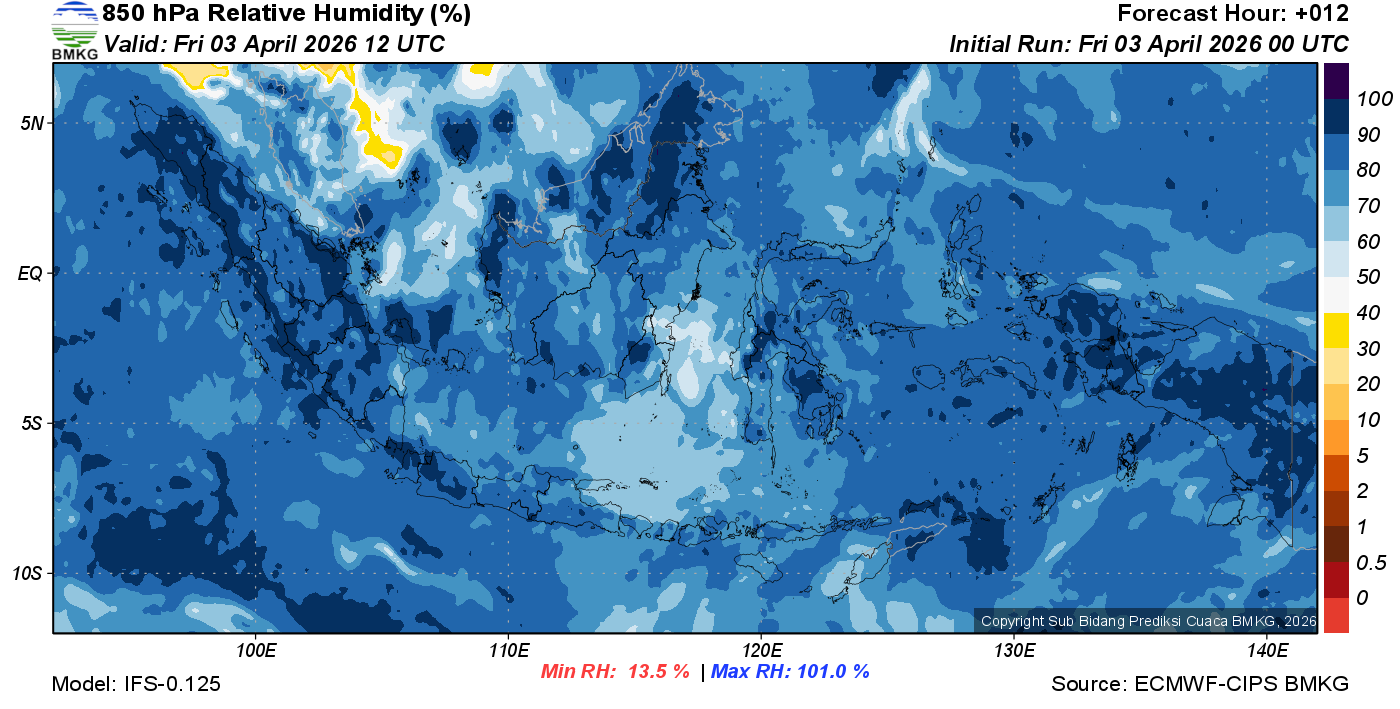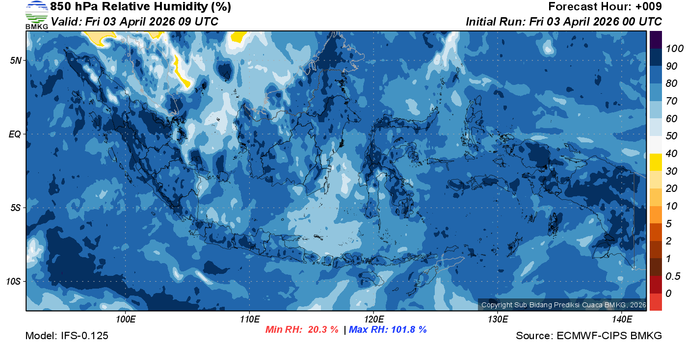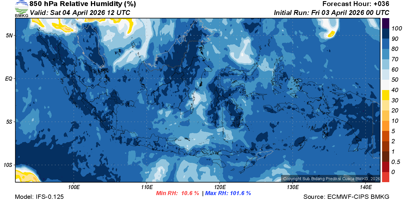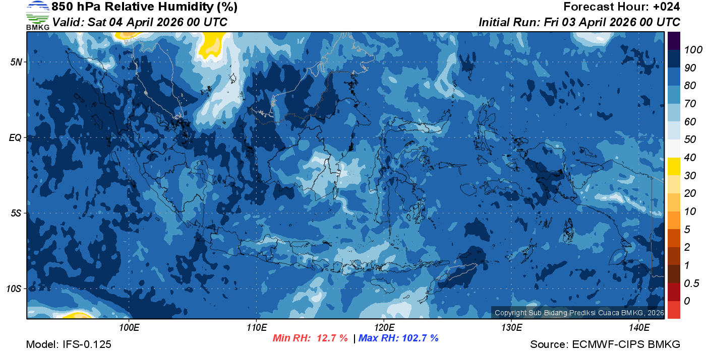 Prediksi Kelembapan 850 hPa NTT