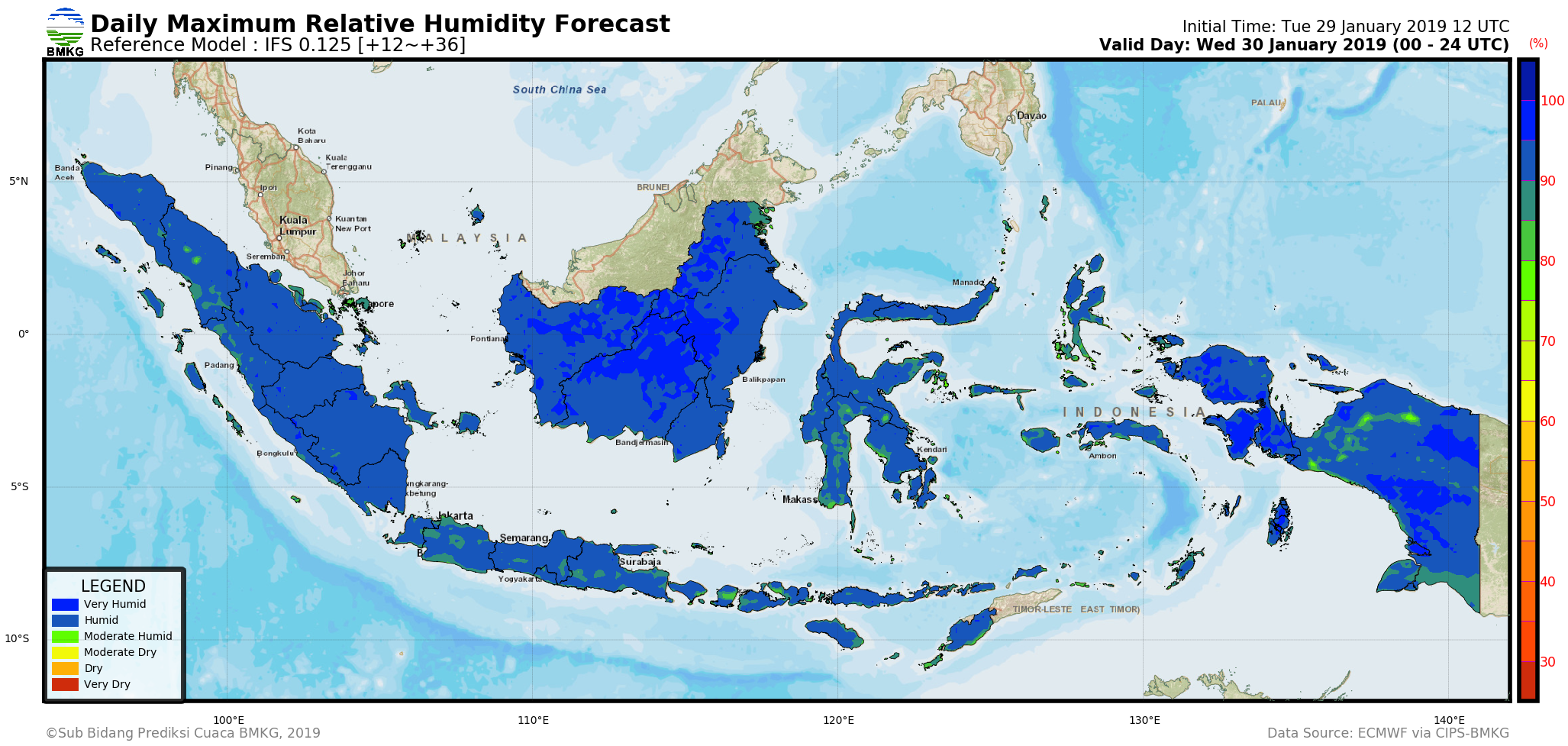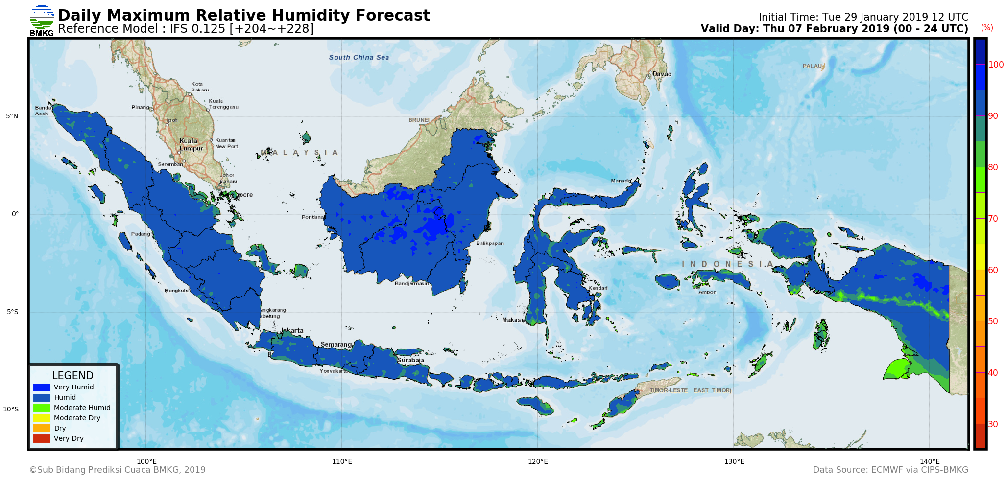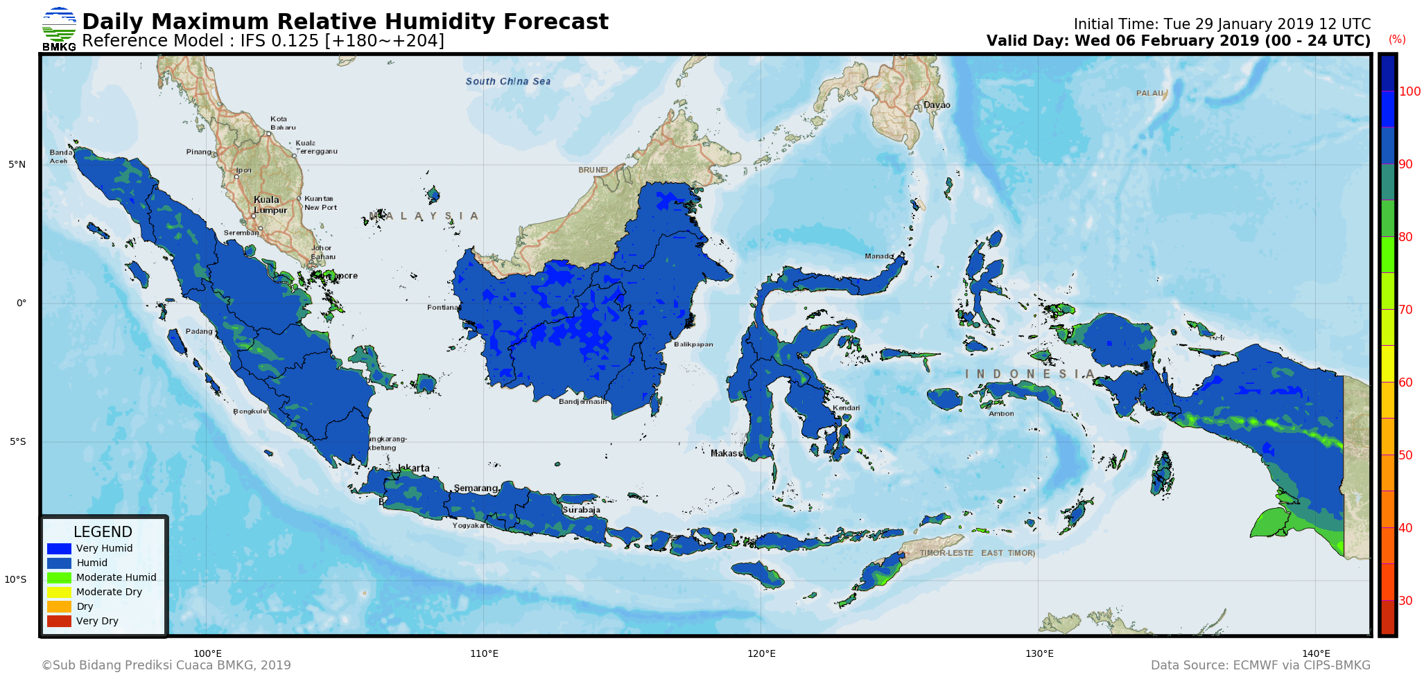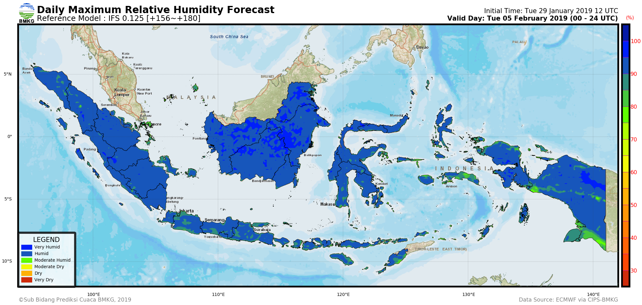 IFS Daily Maximum Surface Relative Humidity Forecast Indonesia