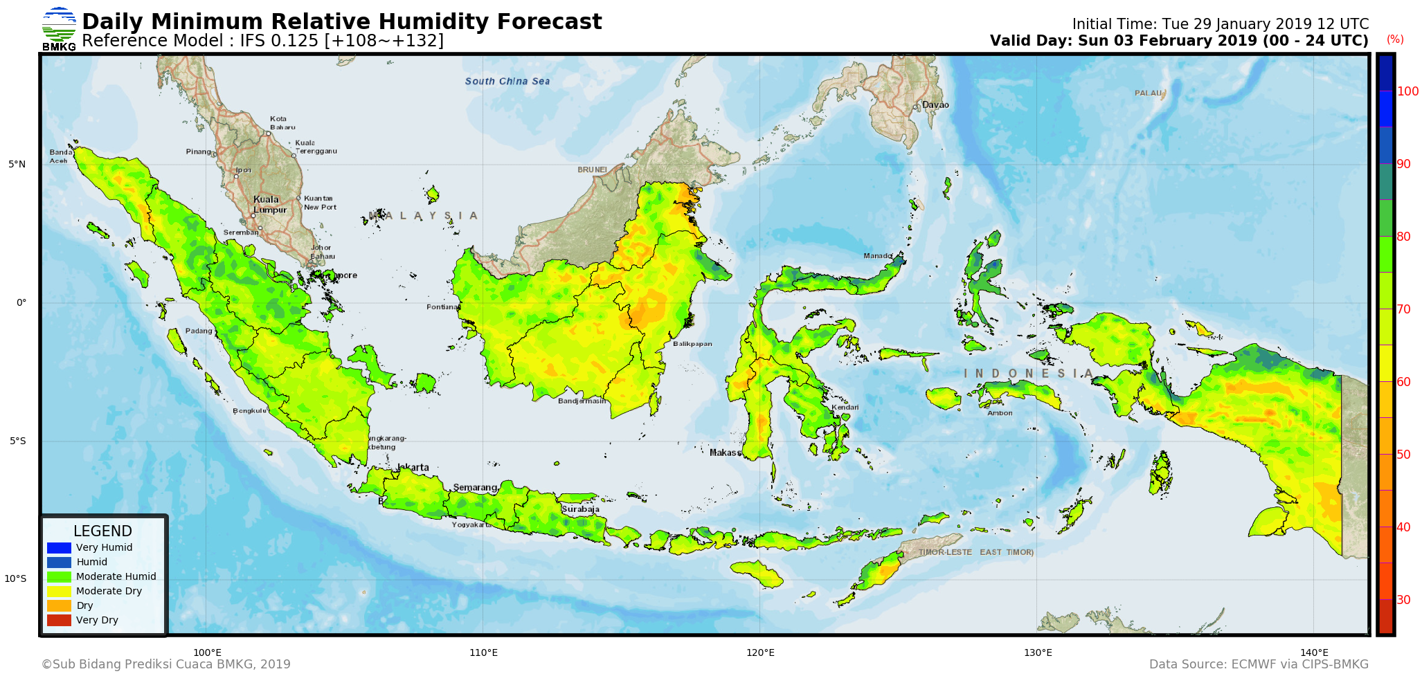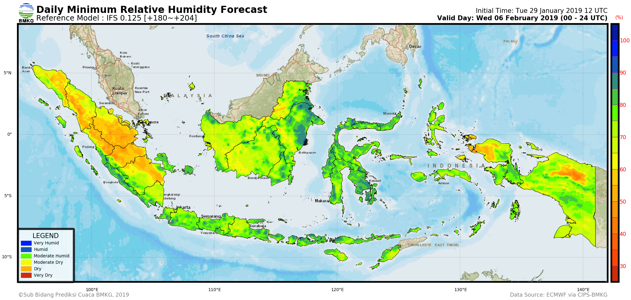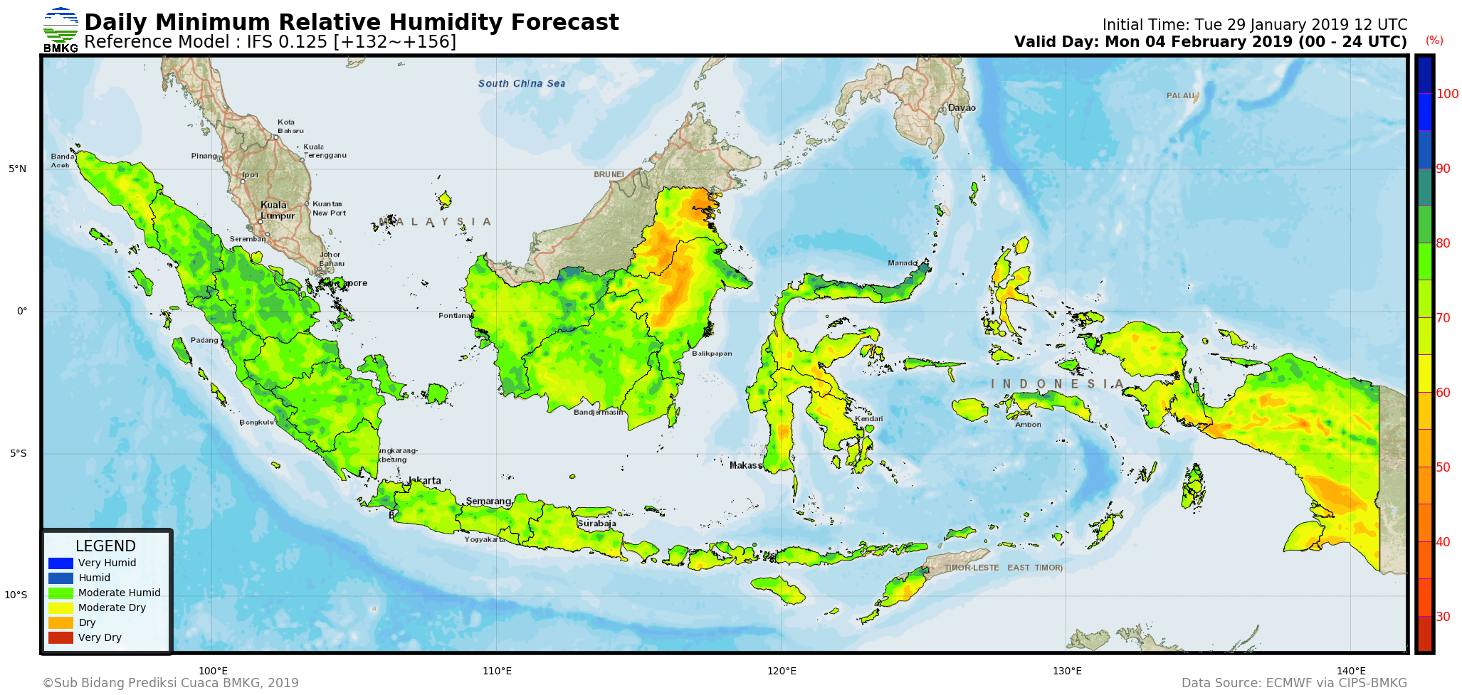 IFS Daily Minimum Surface Relative Humidity Forecast Indonesia
