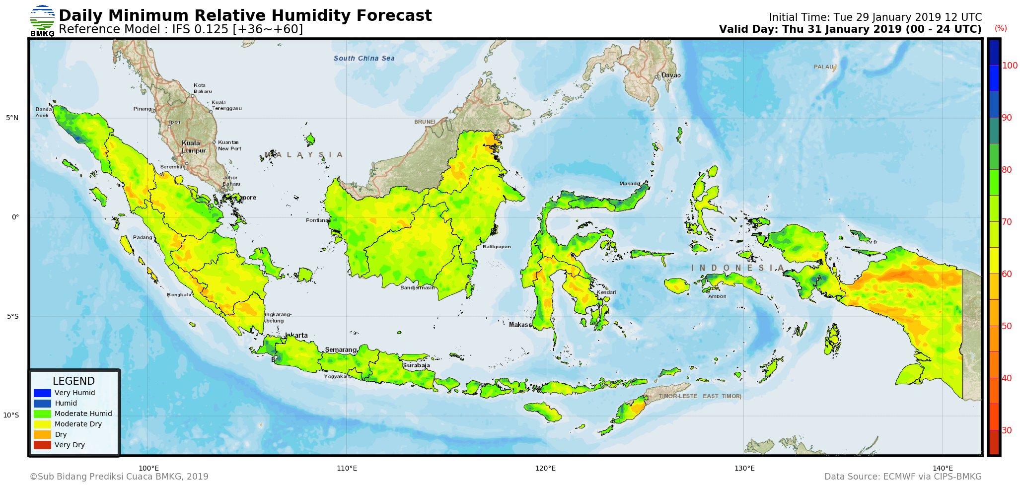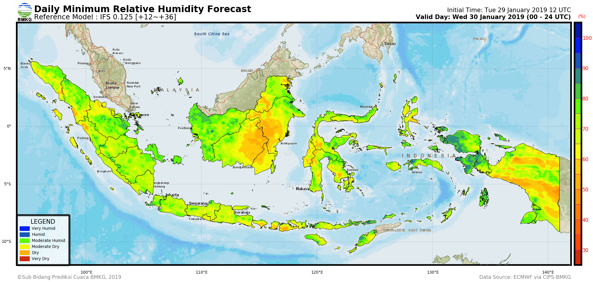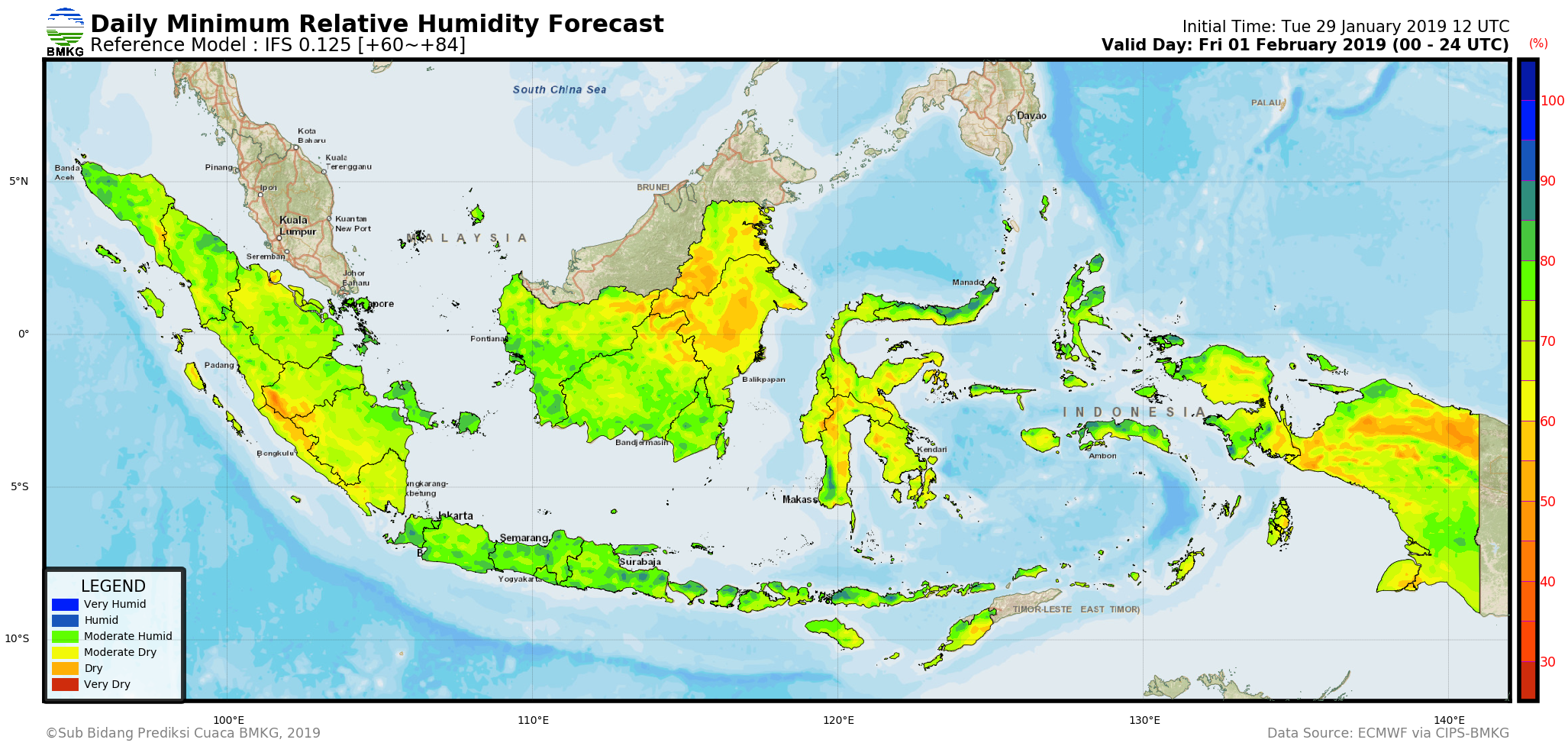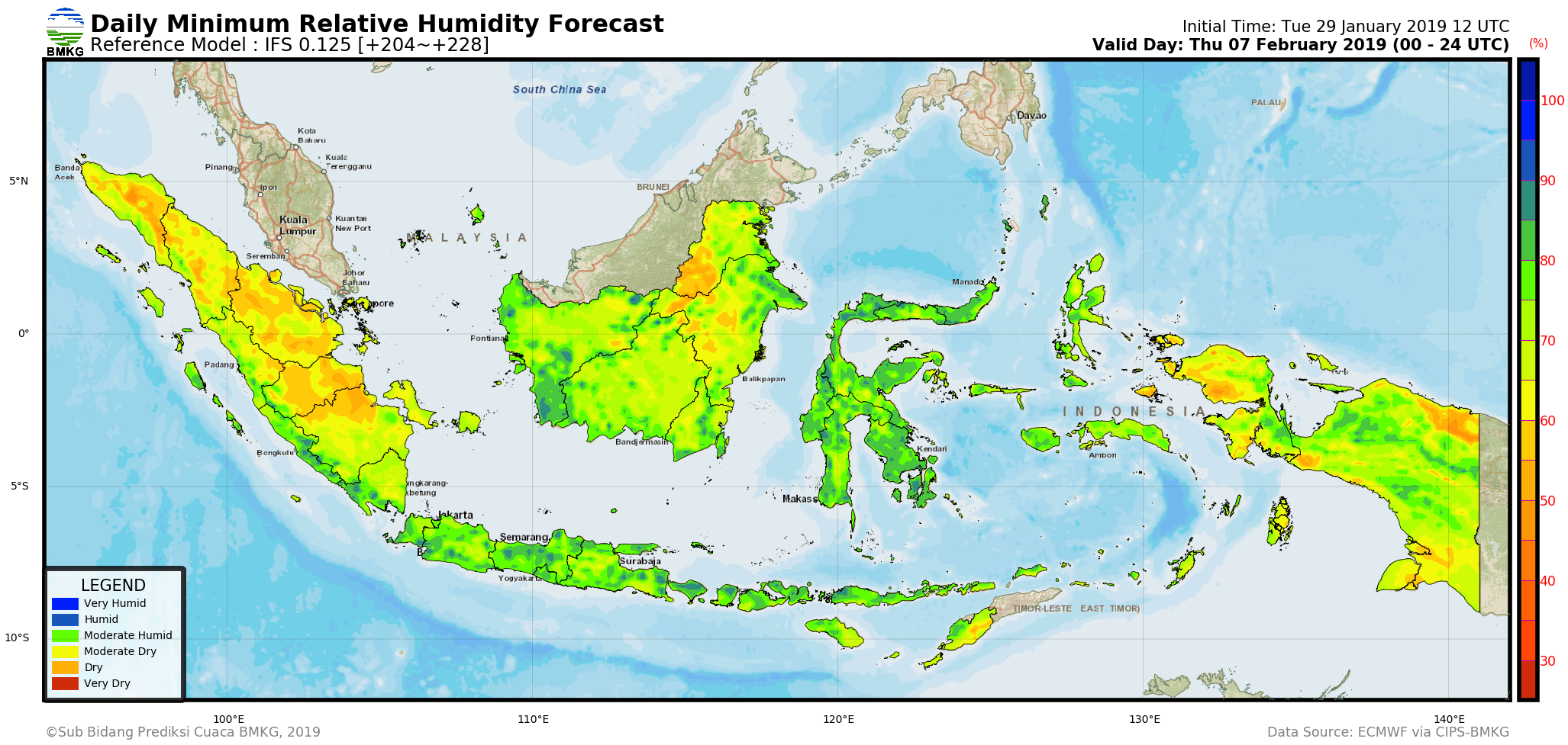 IFS Daily Minimum Surface Relative Humidity Forecast Indonesia