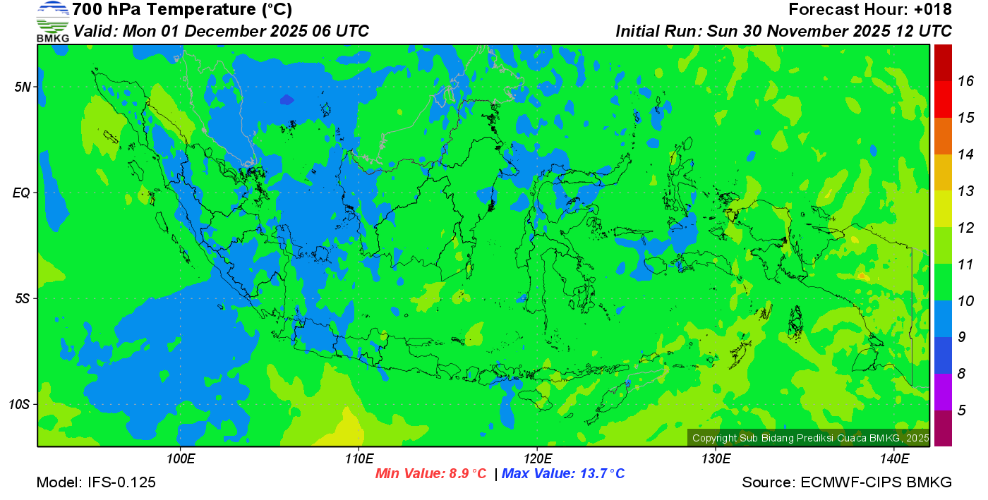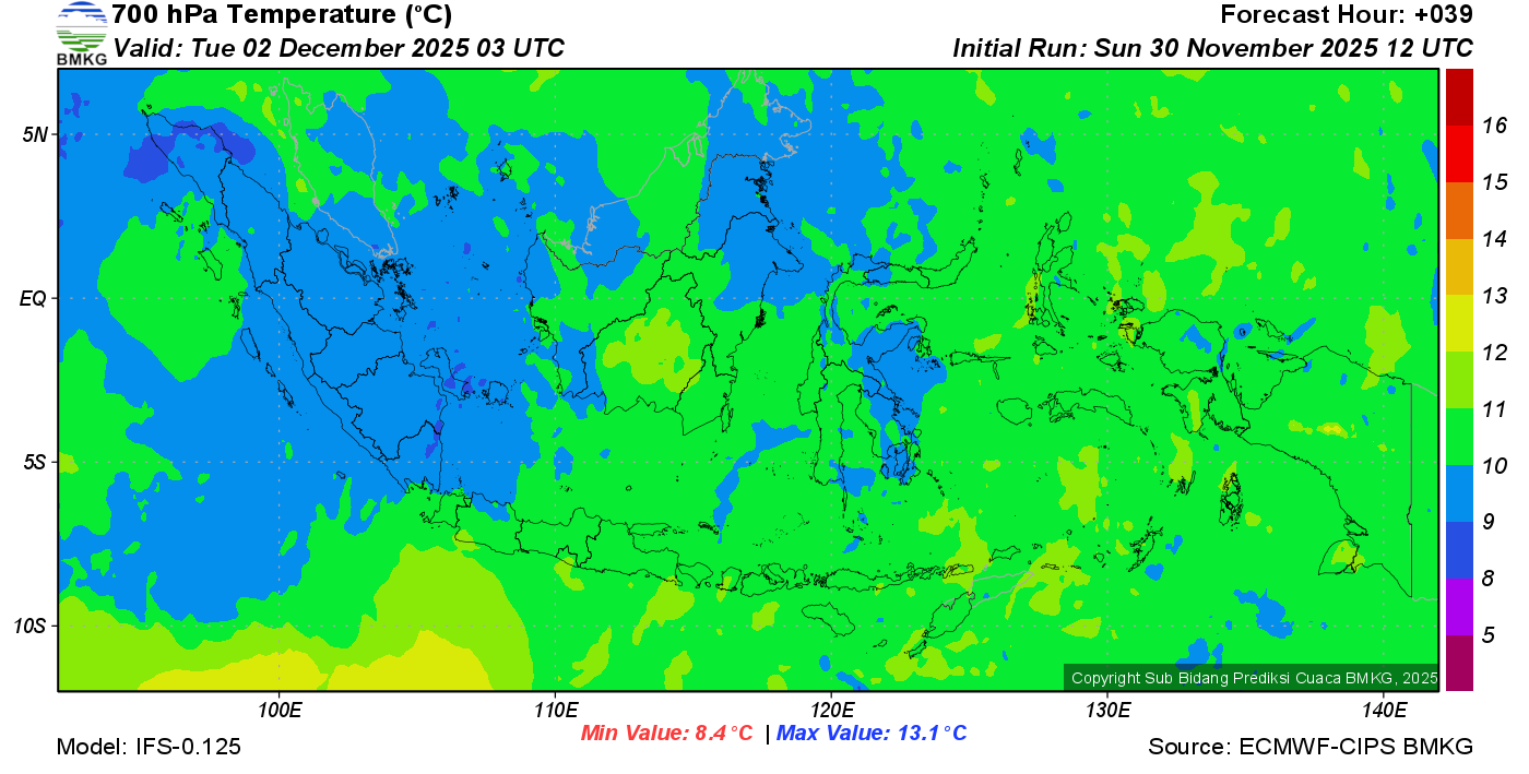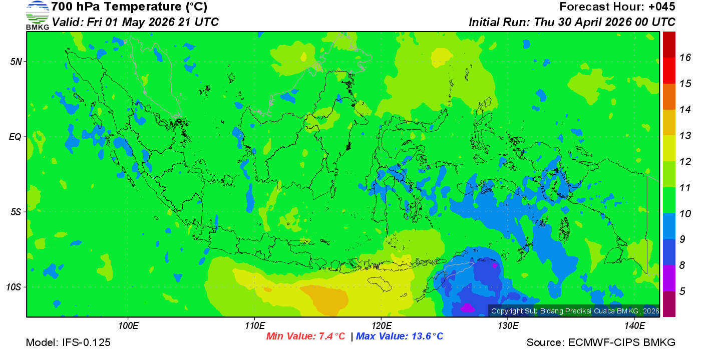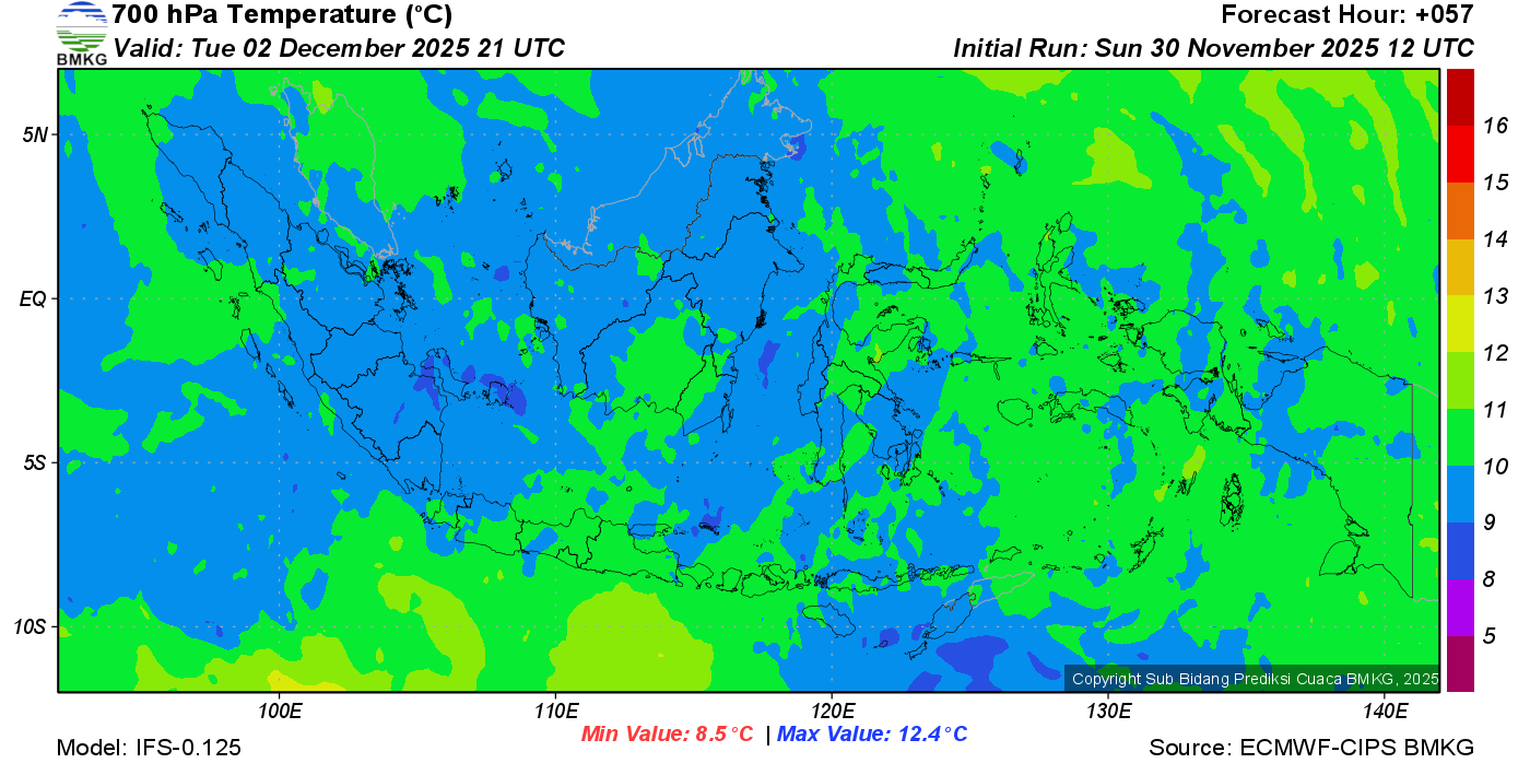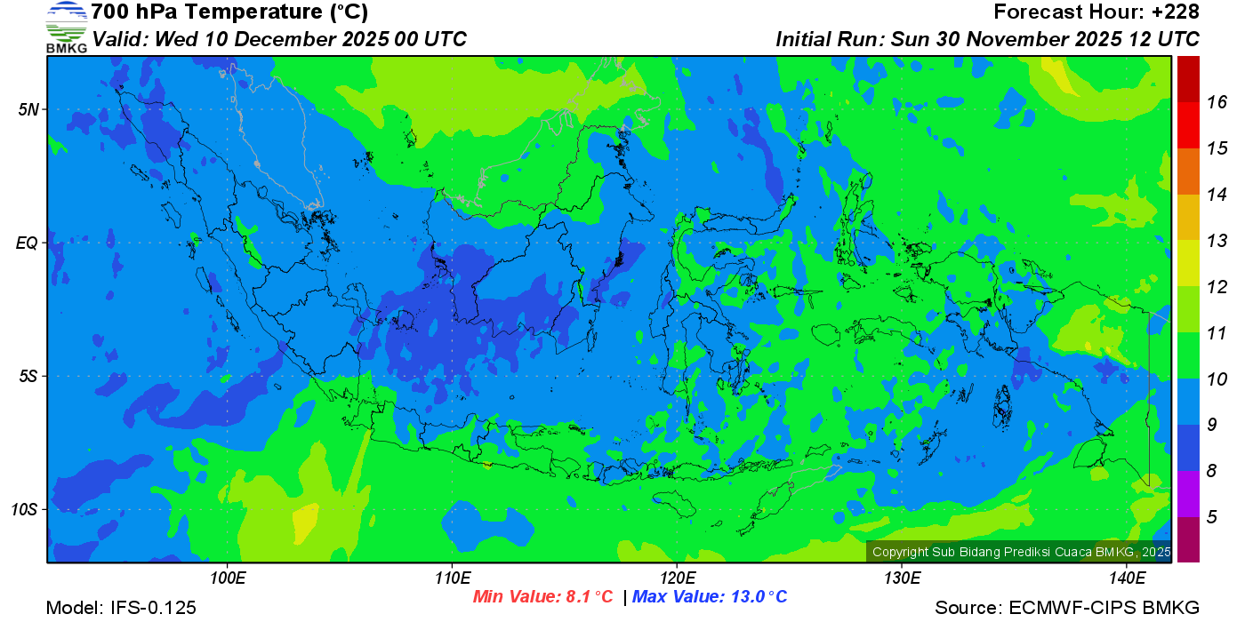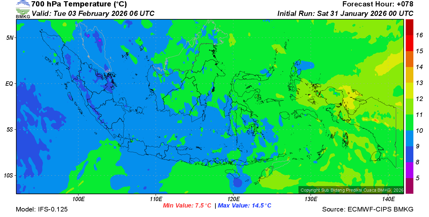 Prediksi Suhu Titik Embun 700 hPa NTT
