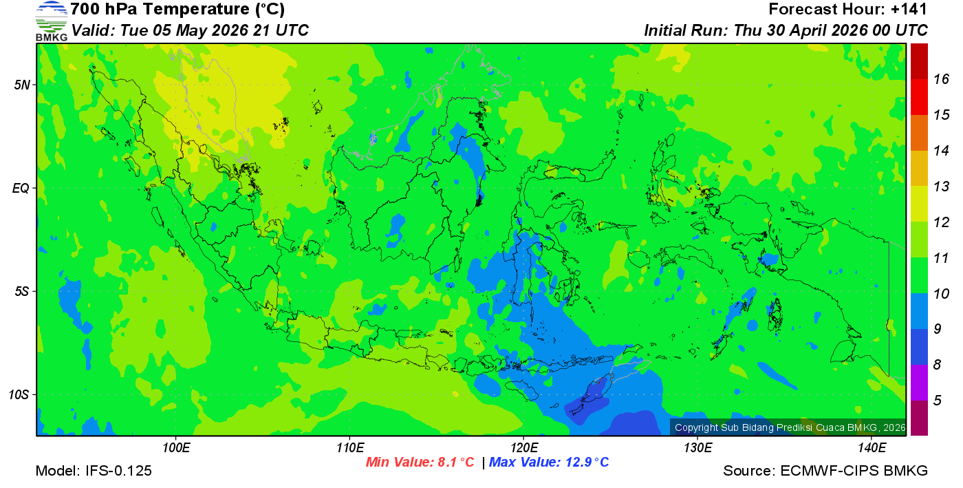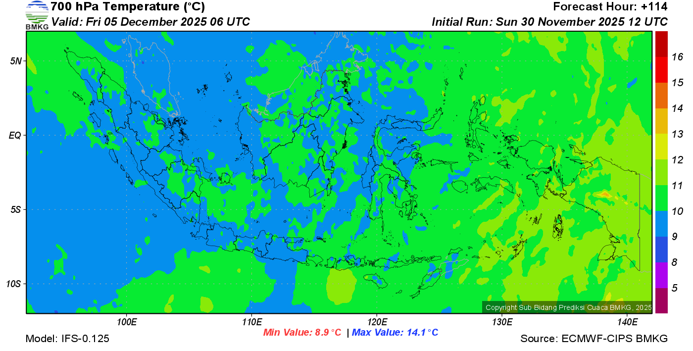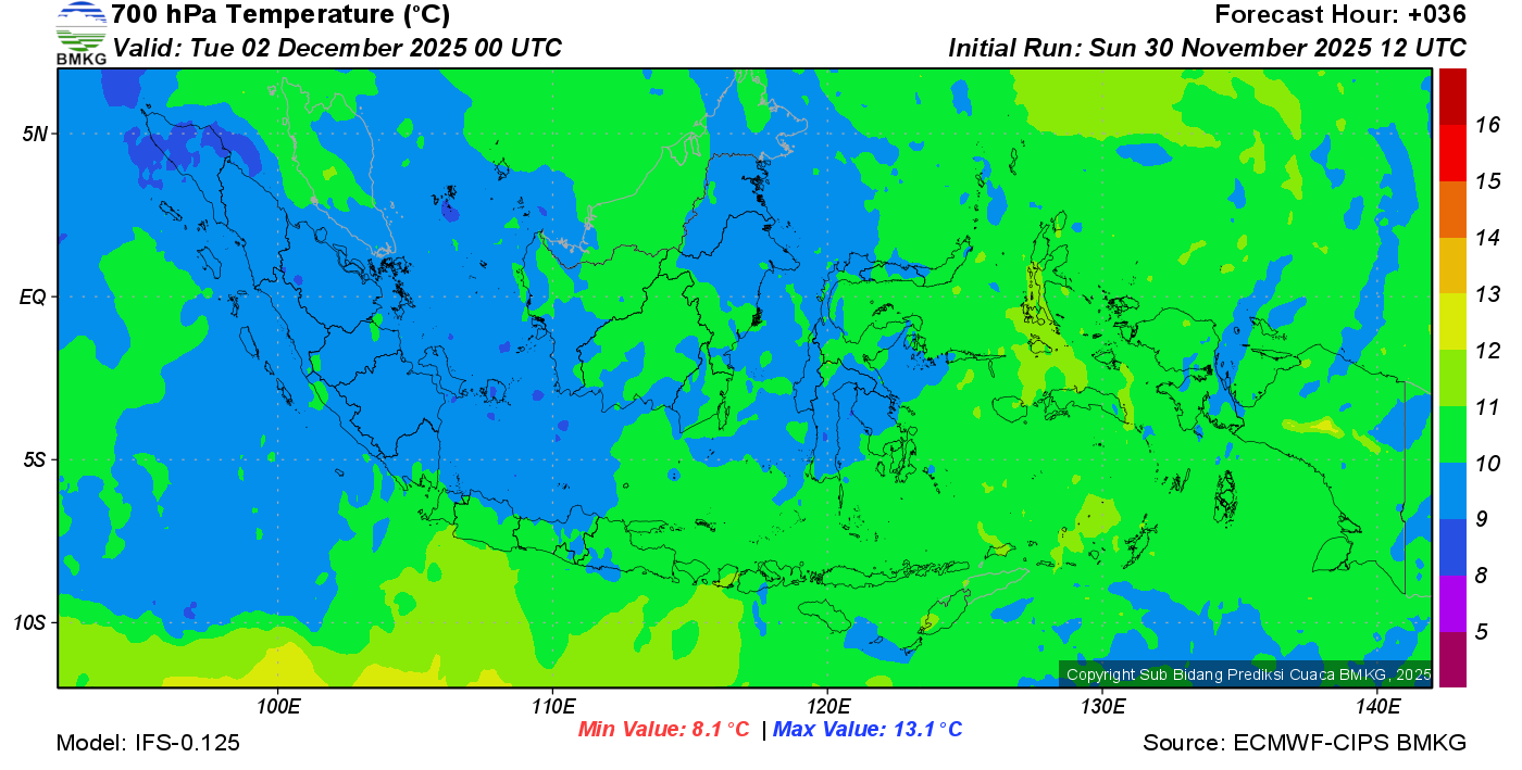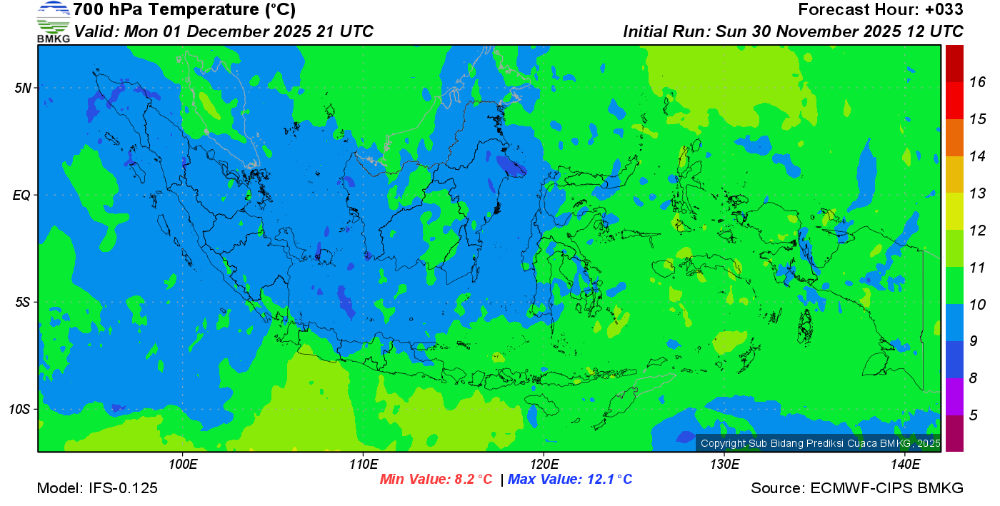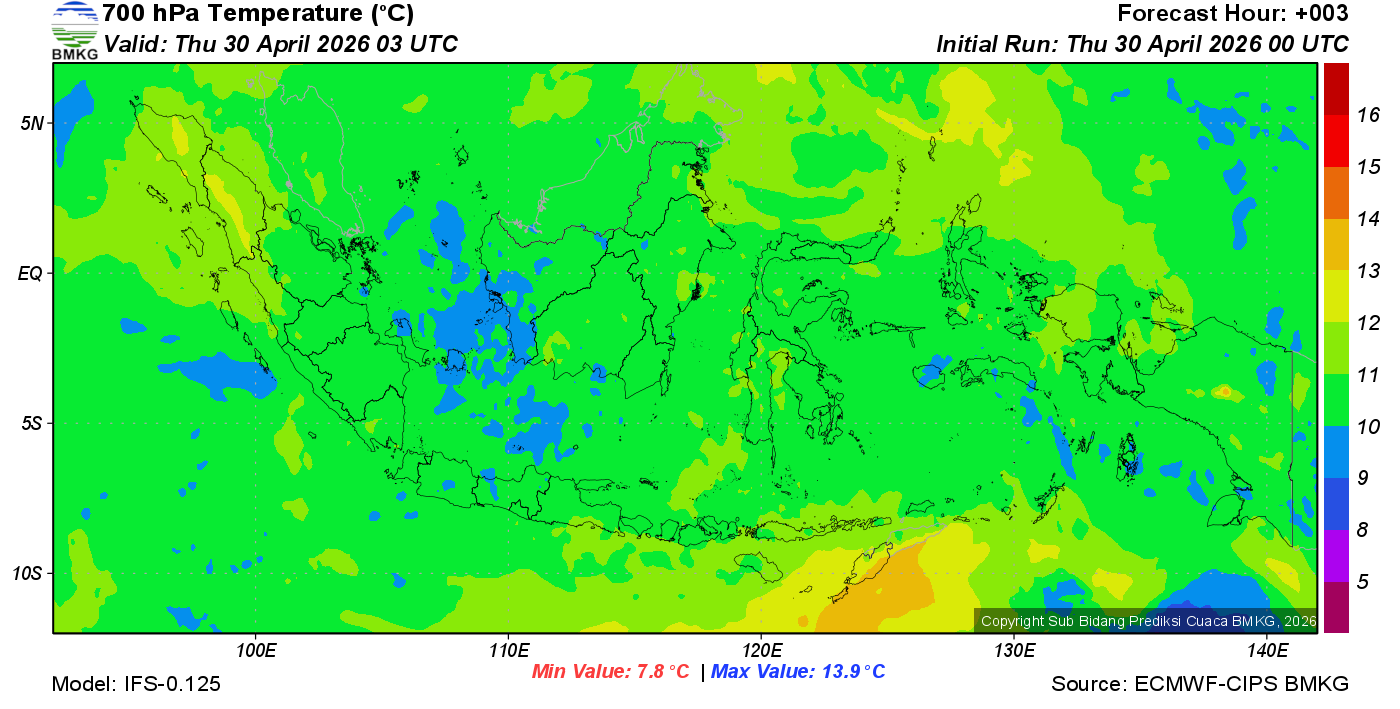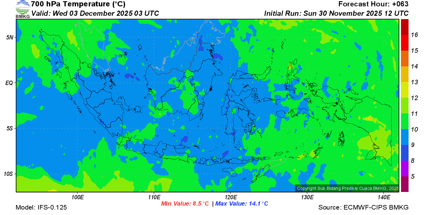Prediksi Suhu Titik Embun 700 hPa NTT