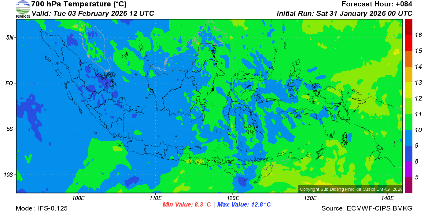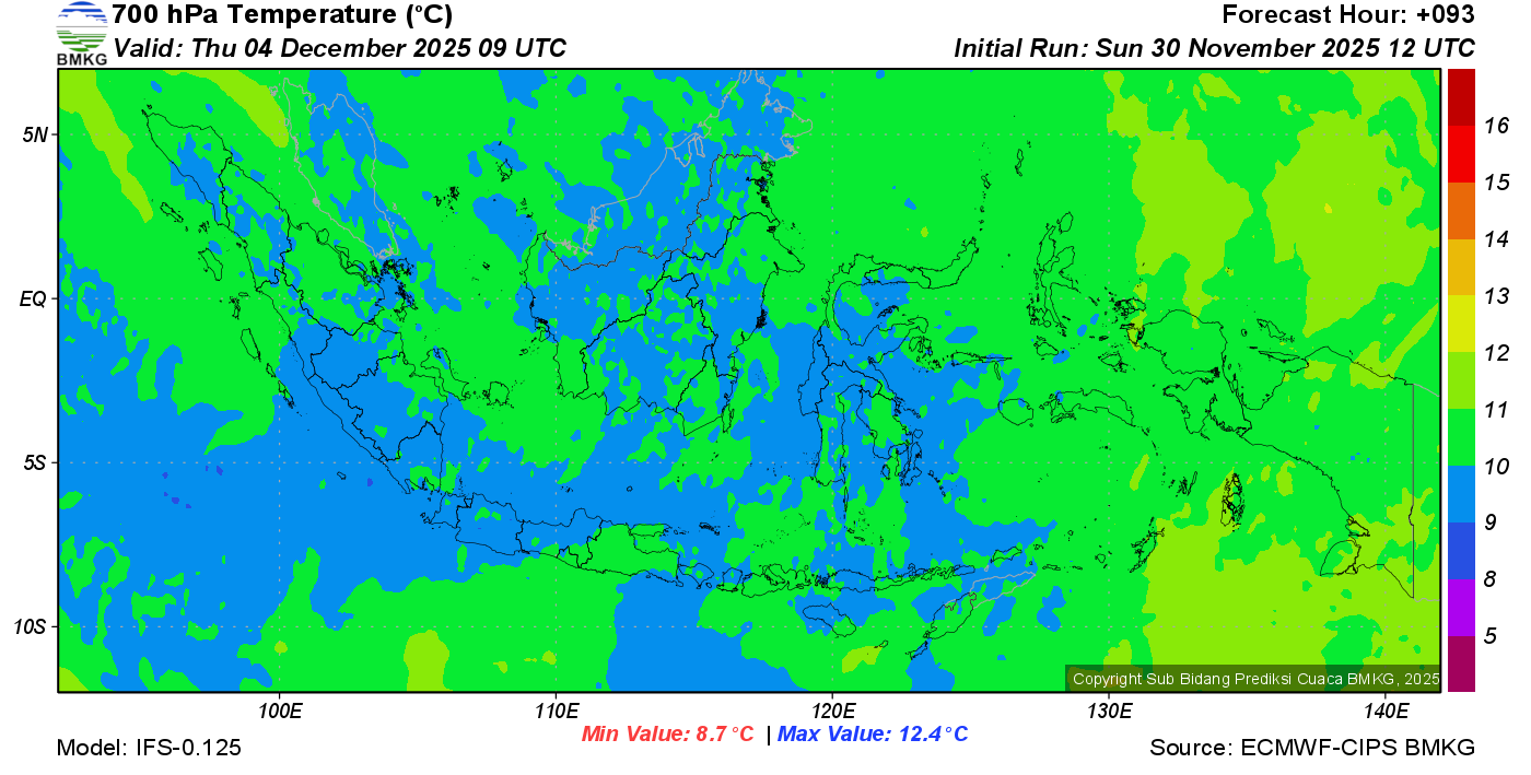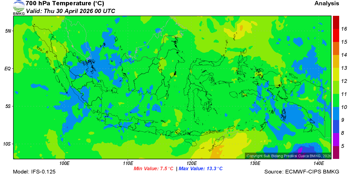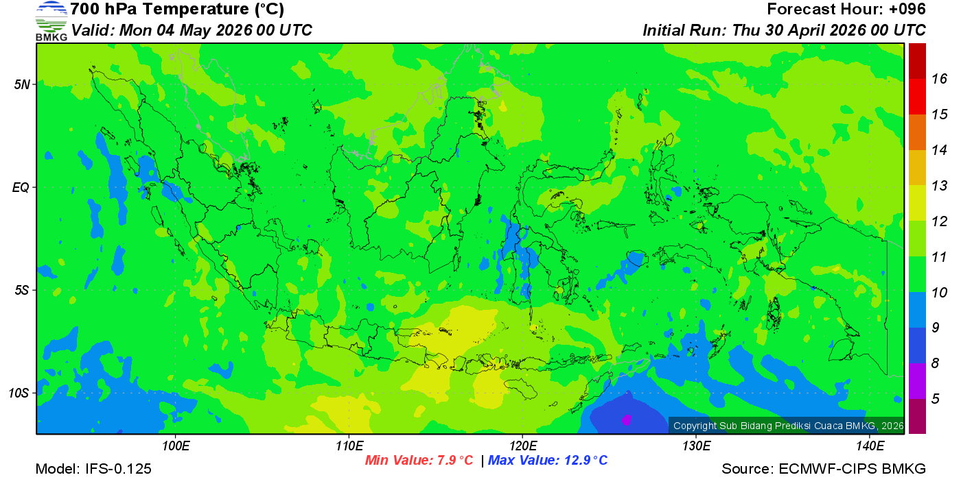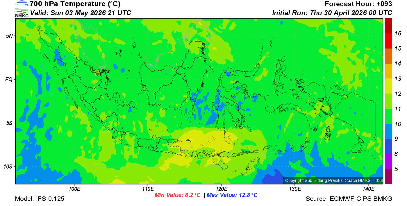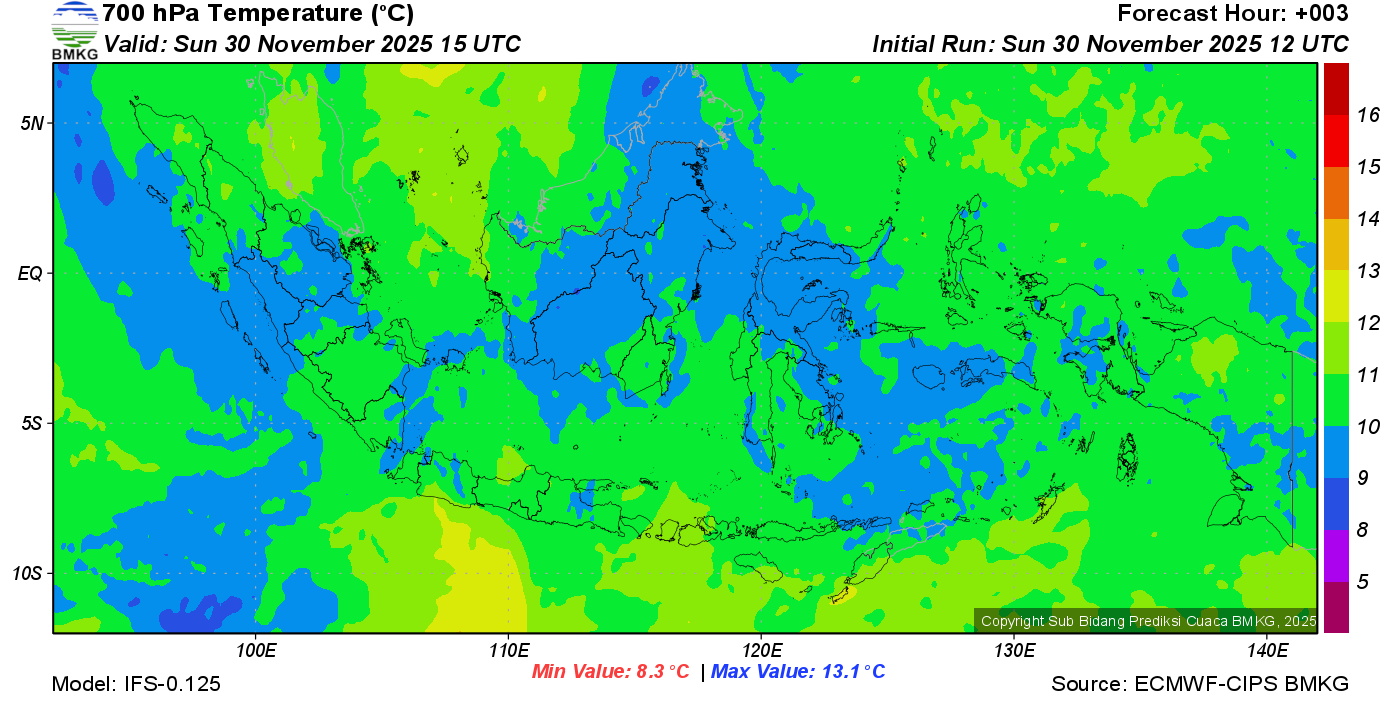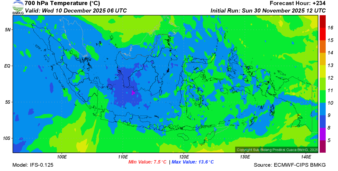 Prediksi Suhu Titik Embun 700 hPa NTT