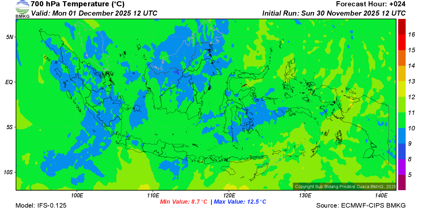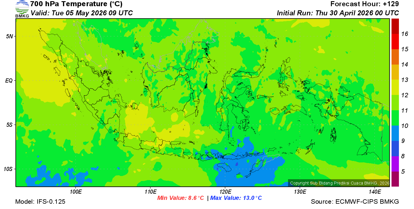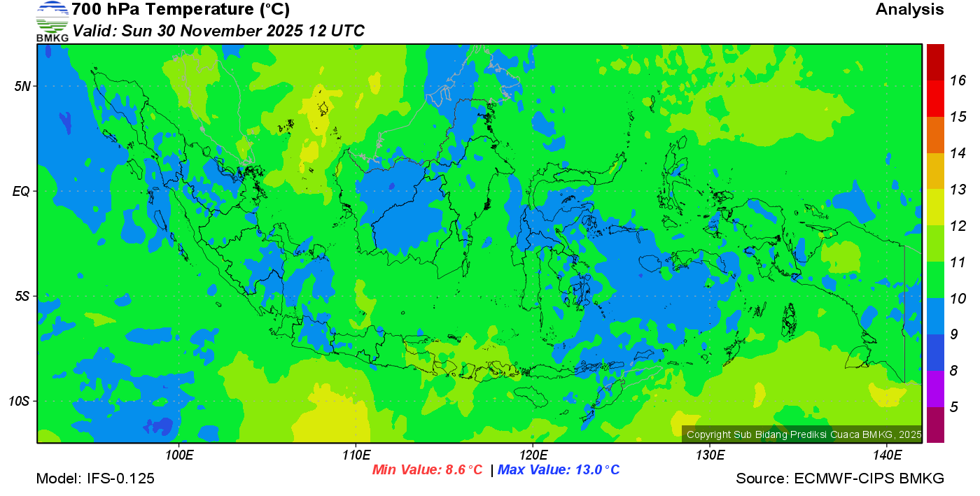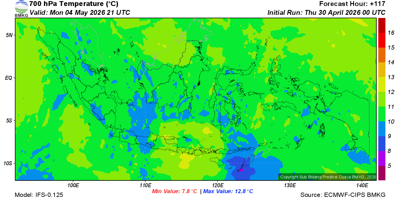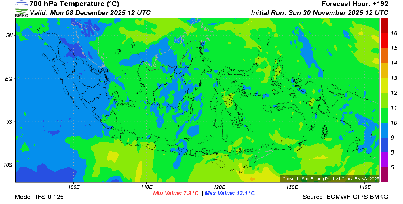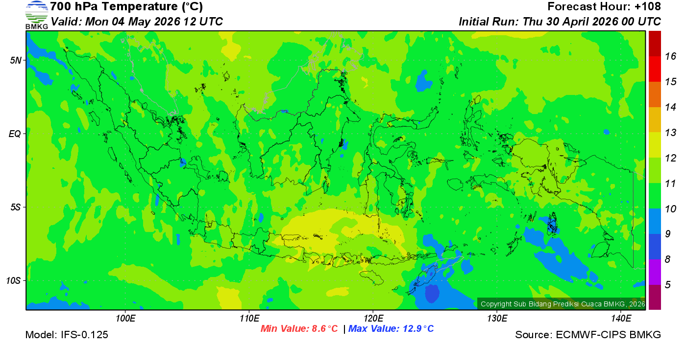 Prediksi Suhu Titik Embun 700 hPa NTT