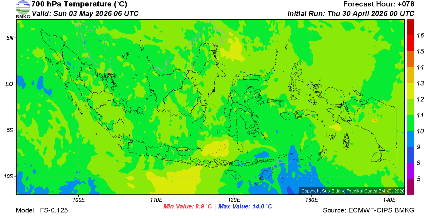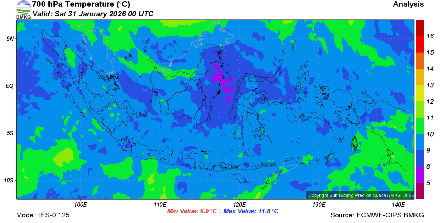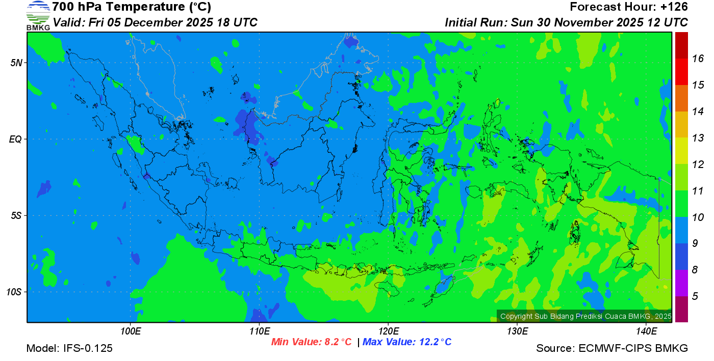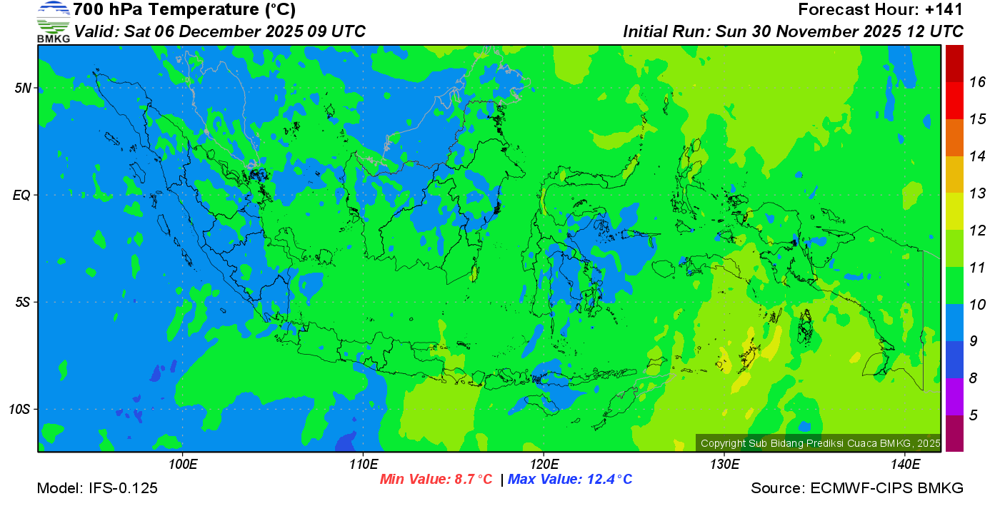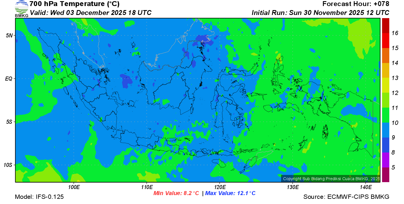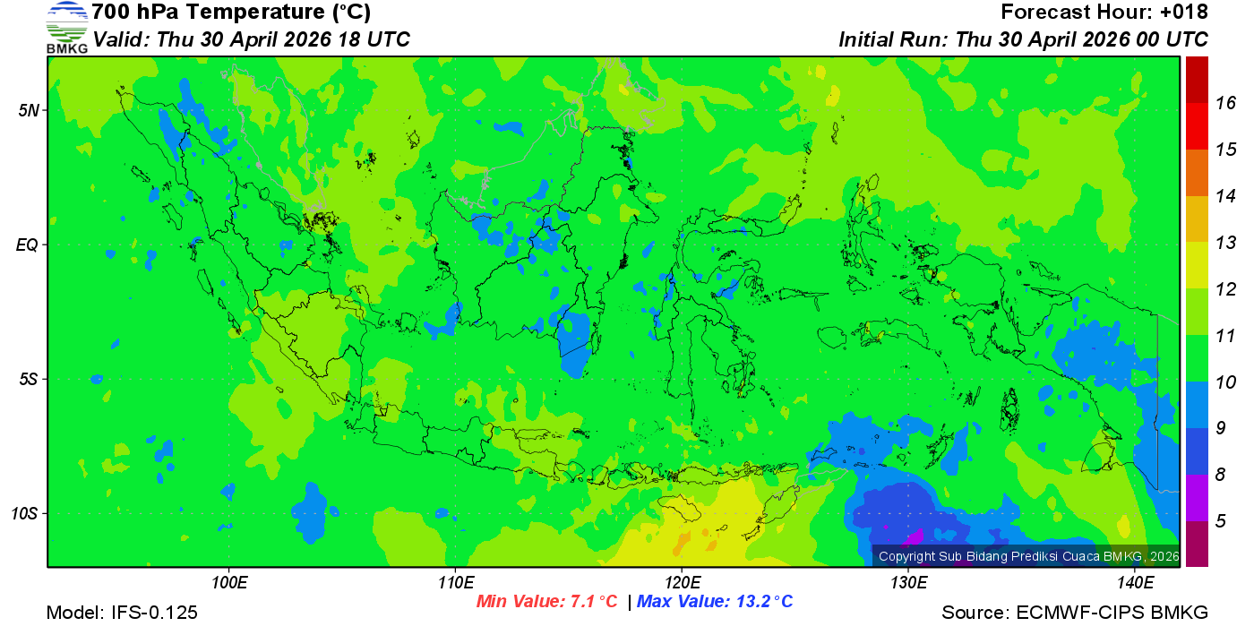 Prediksi Suhu Titik Embun 700 hPa NTT