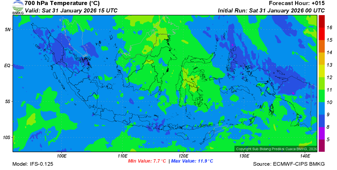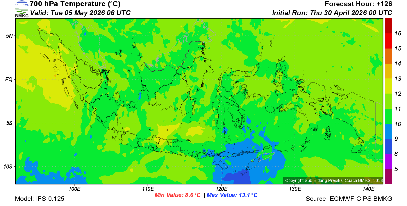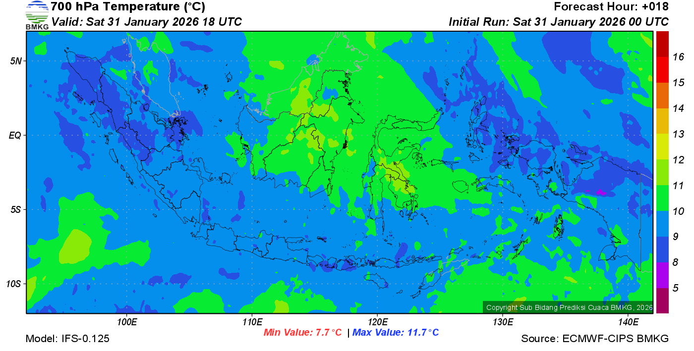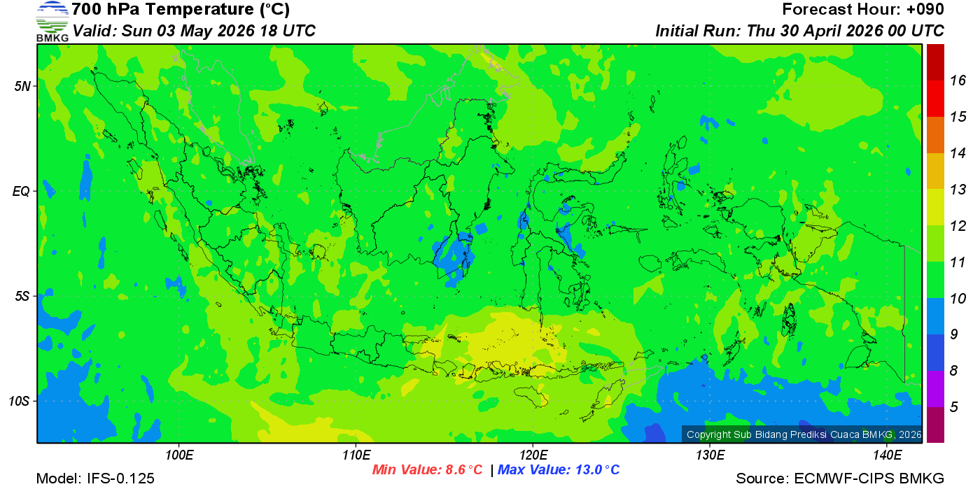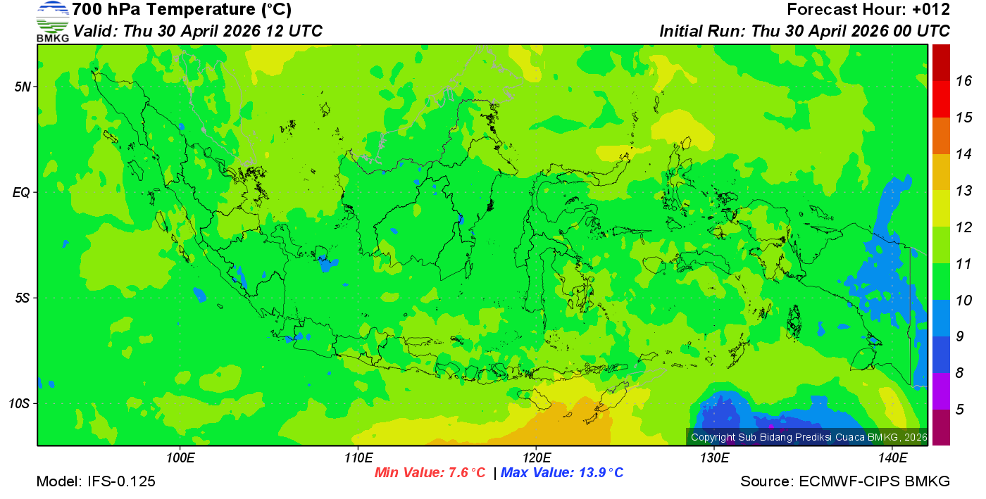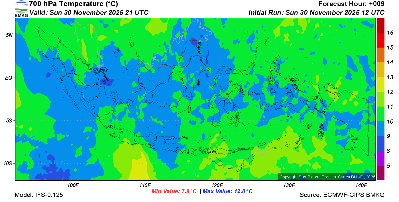 Prediksi Suhu Titik Embun 700 hPa NTT