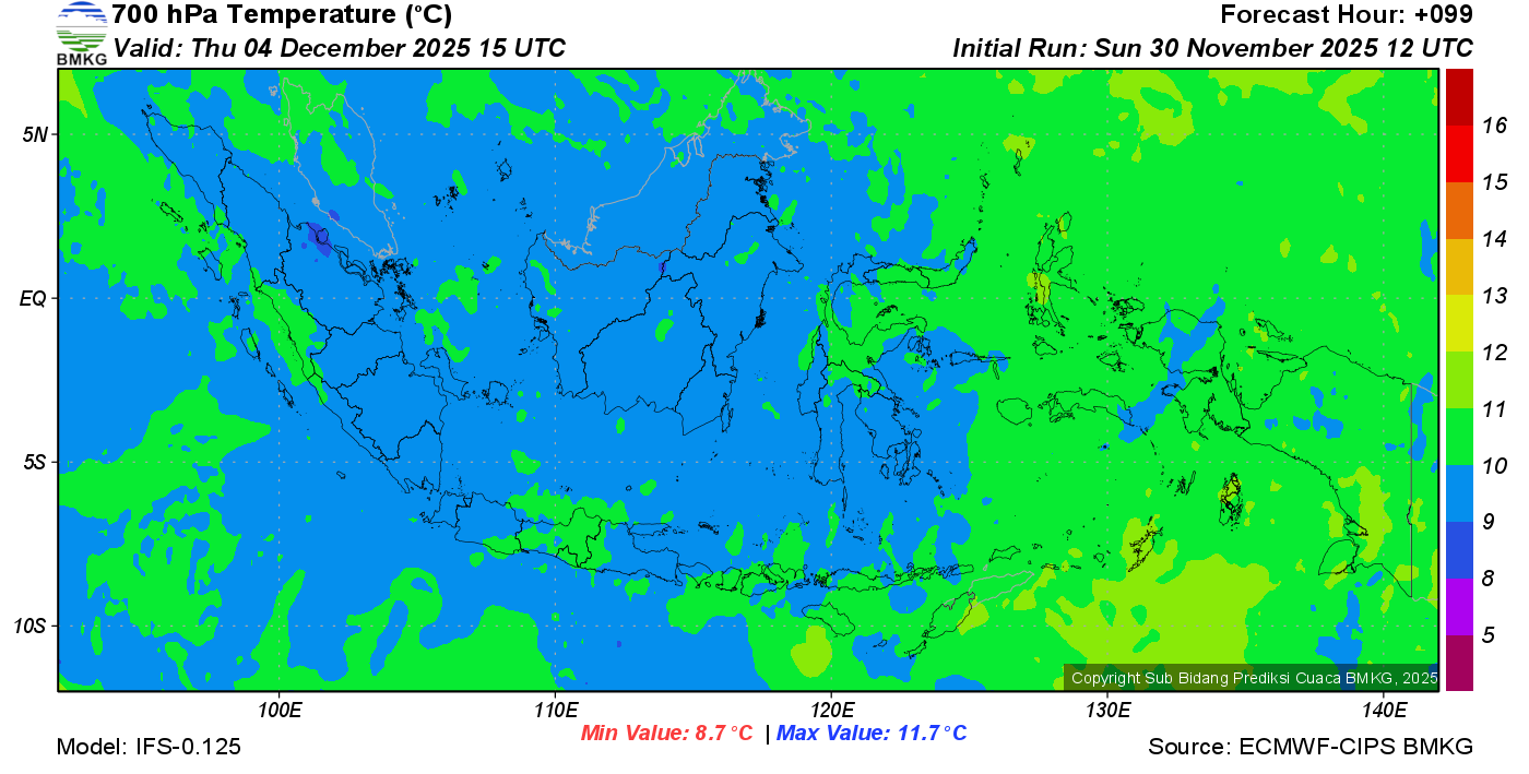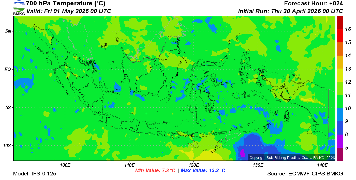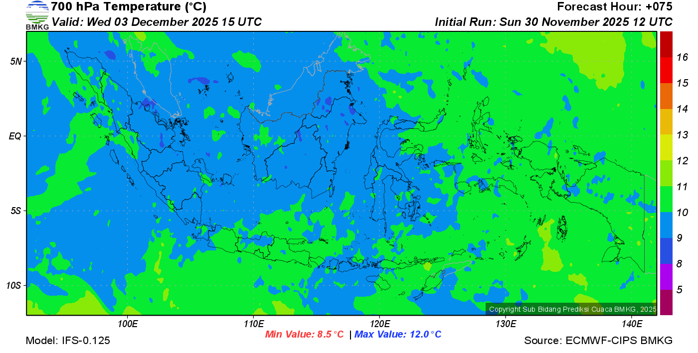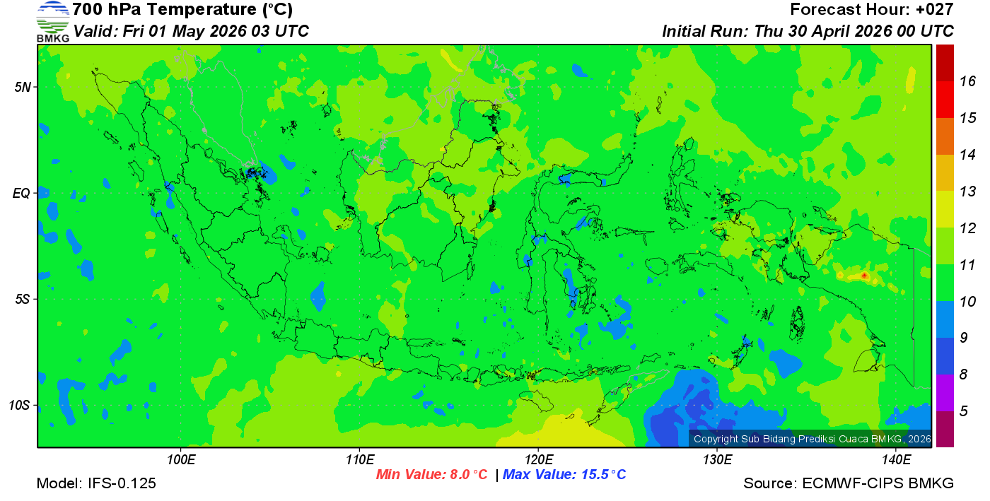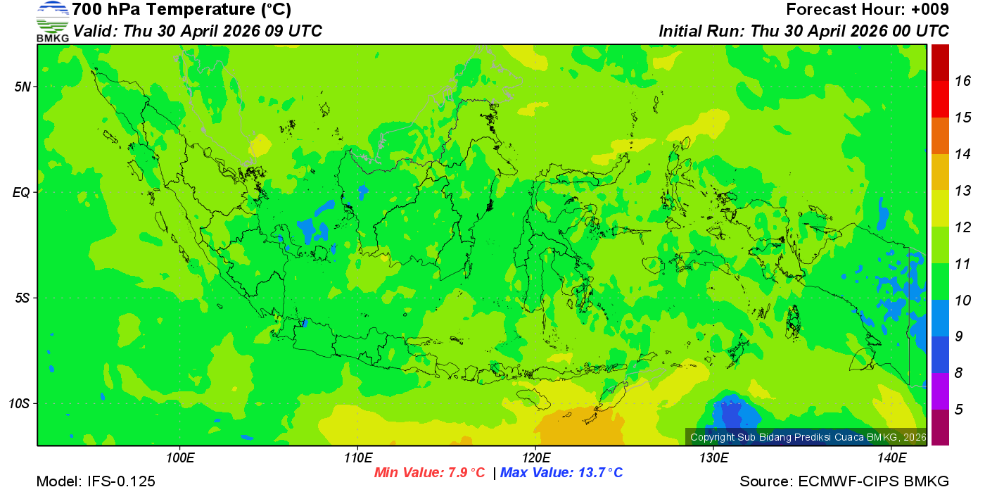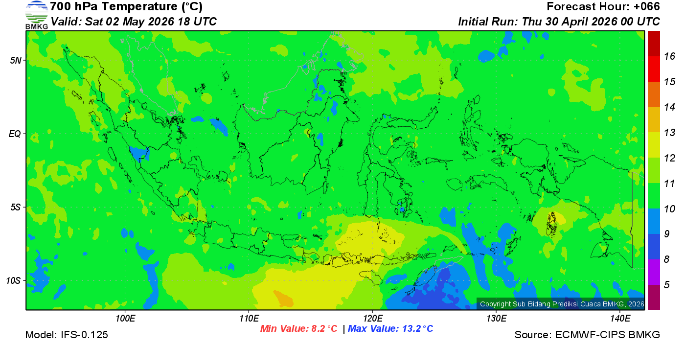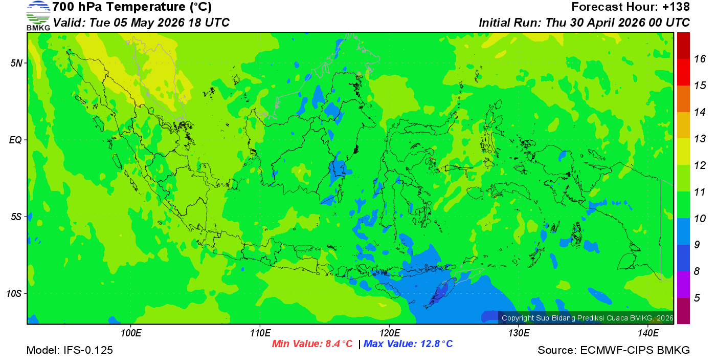 Prediksi Suhu Titik Embun 700 hPa NTT
