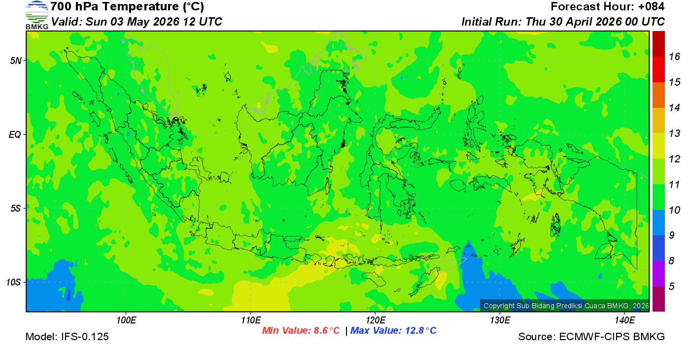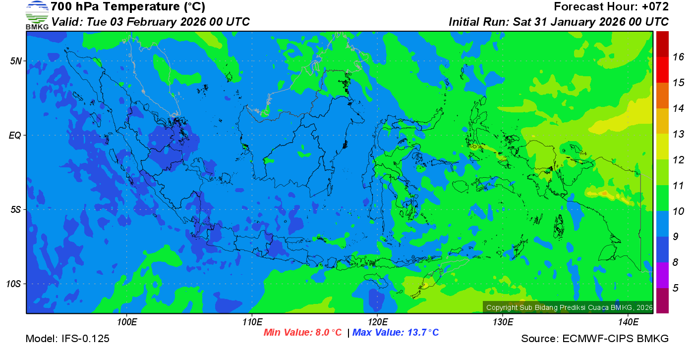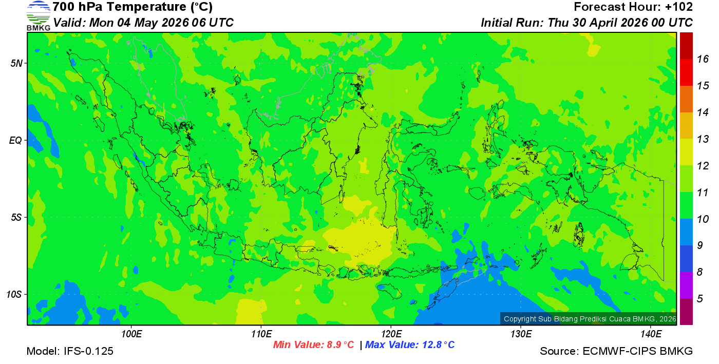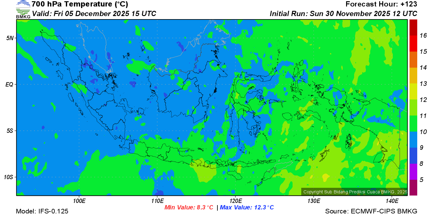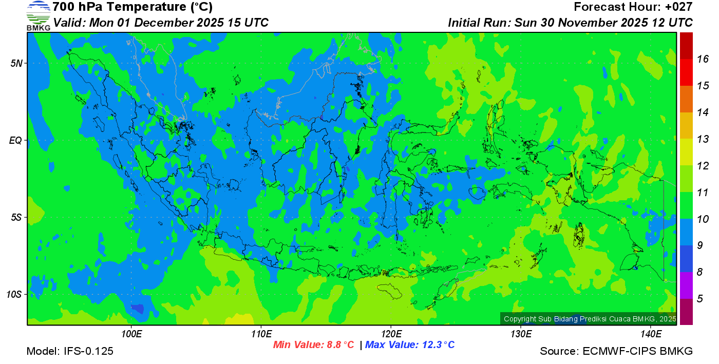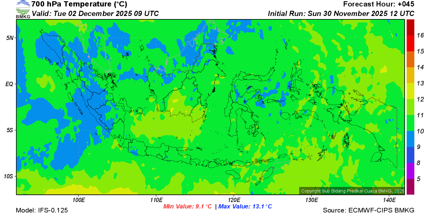 Prediksi Suhu Titik Embun 700 hPa NTT