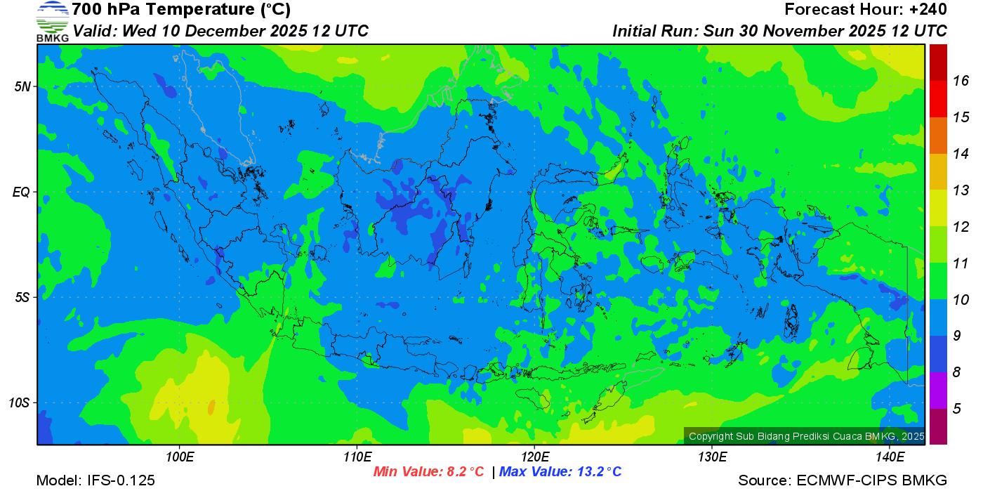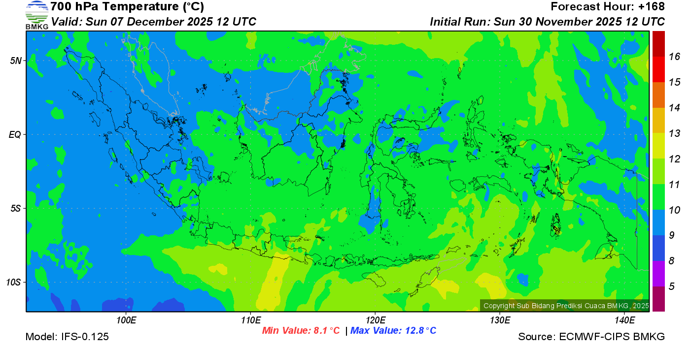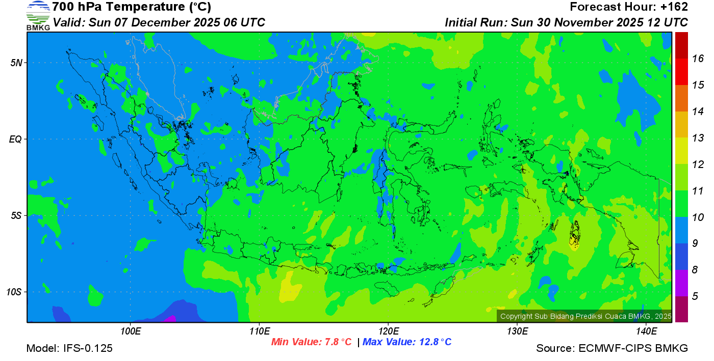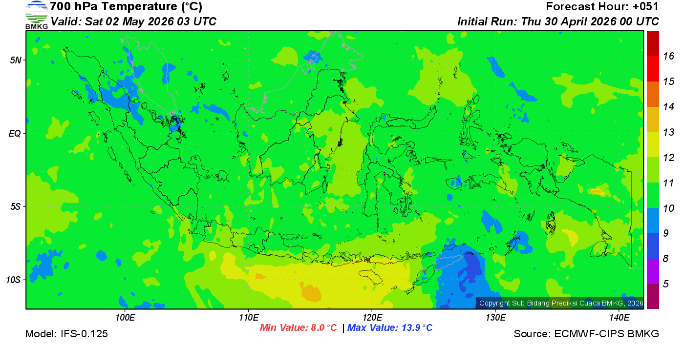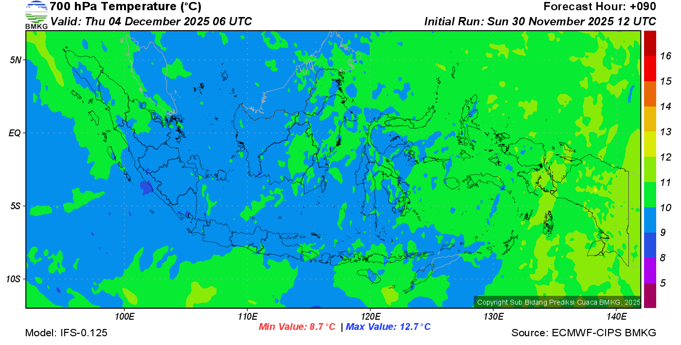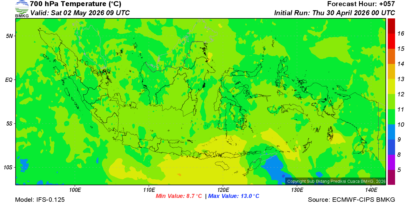 Prediksi Suhu Titik Embun 700 hPa NTT
