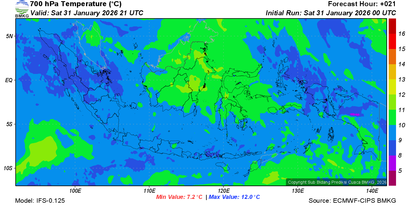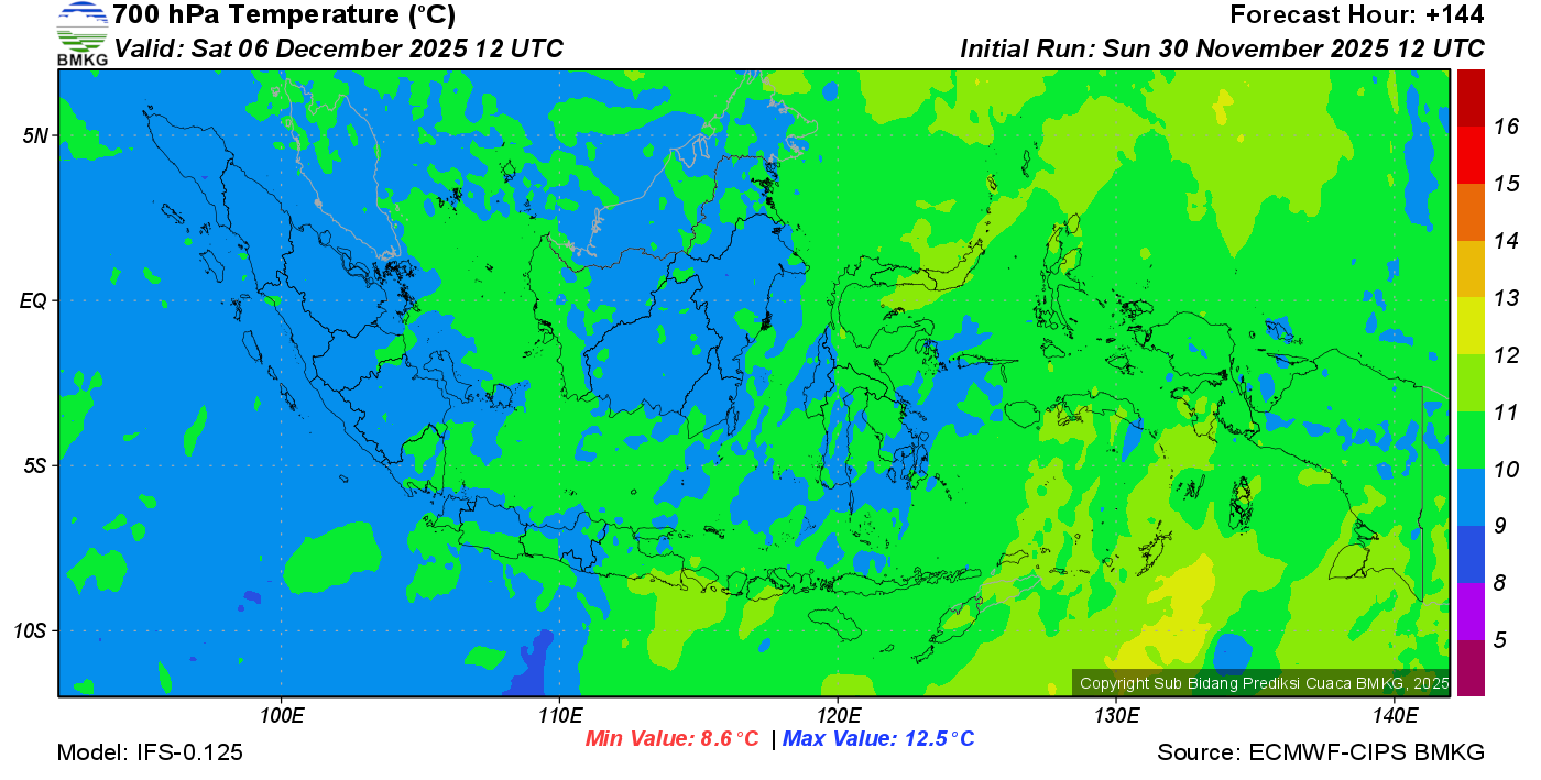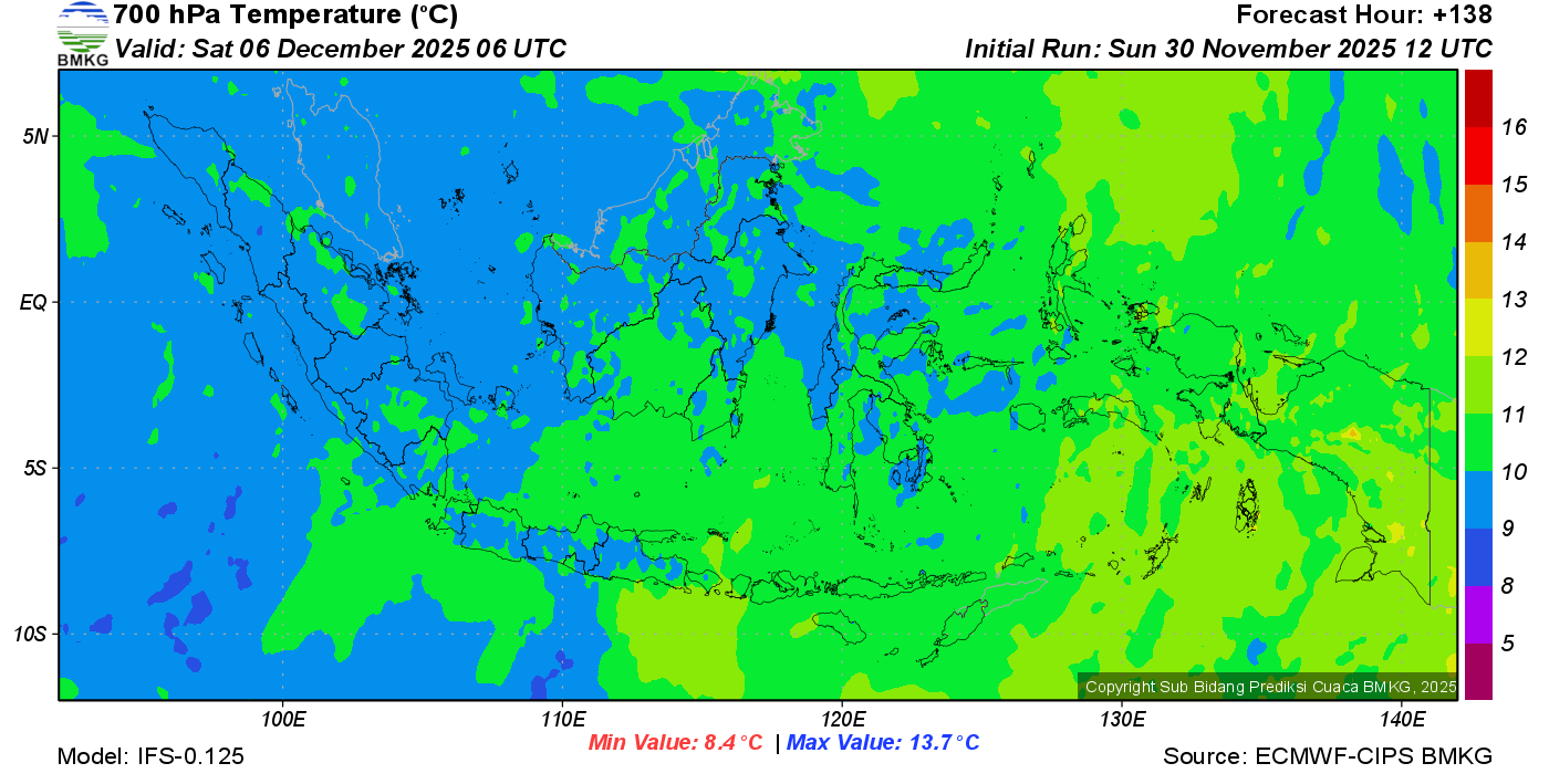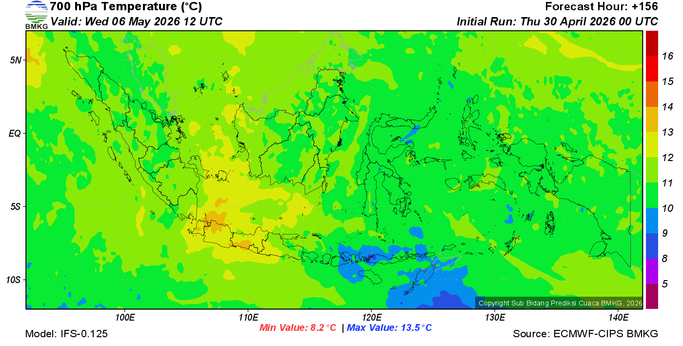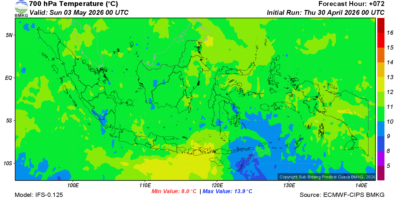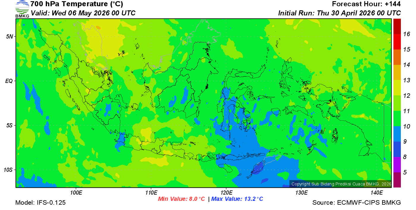 Prediksi Suhu Titik Embun 700 hPa NTT