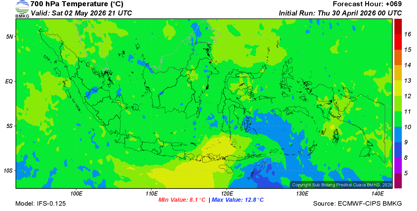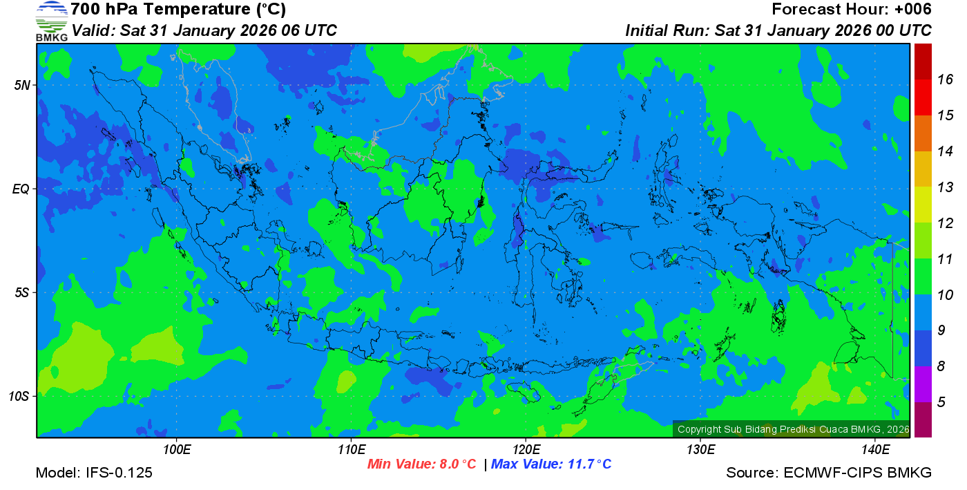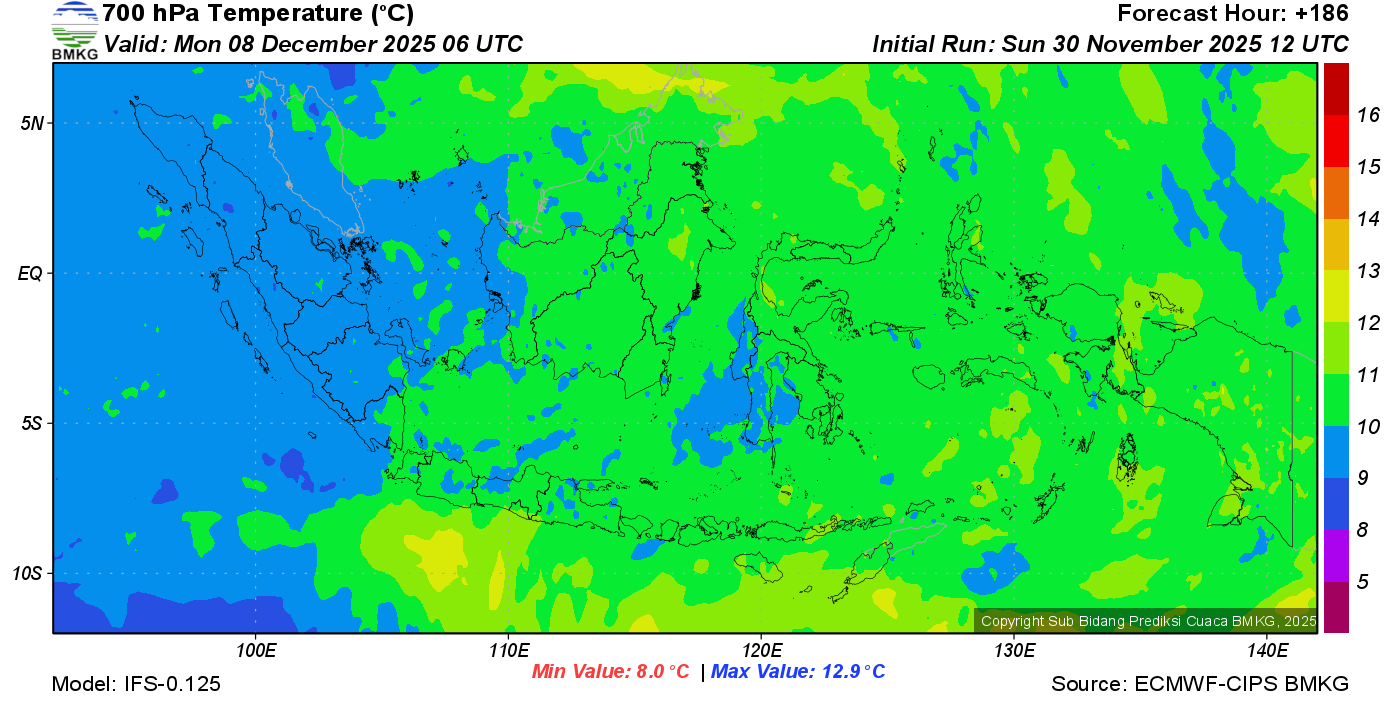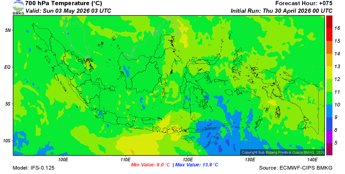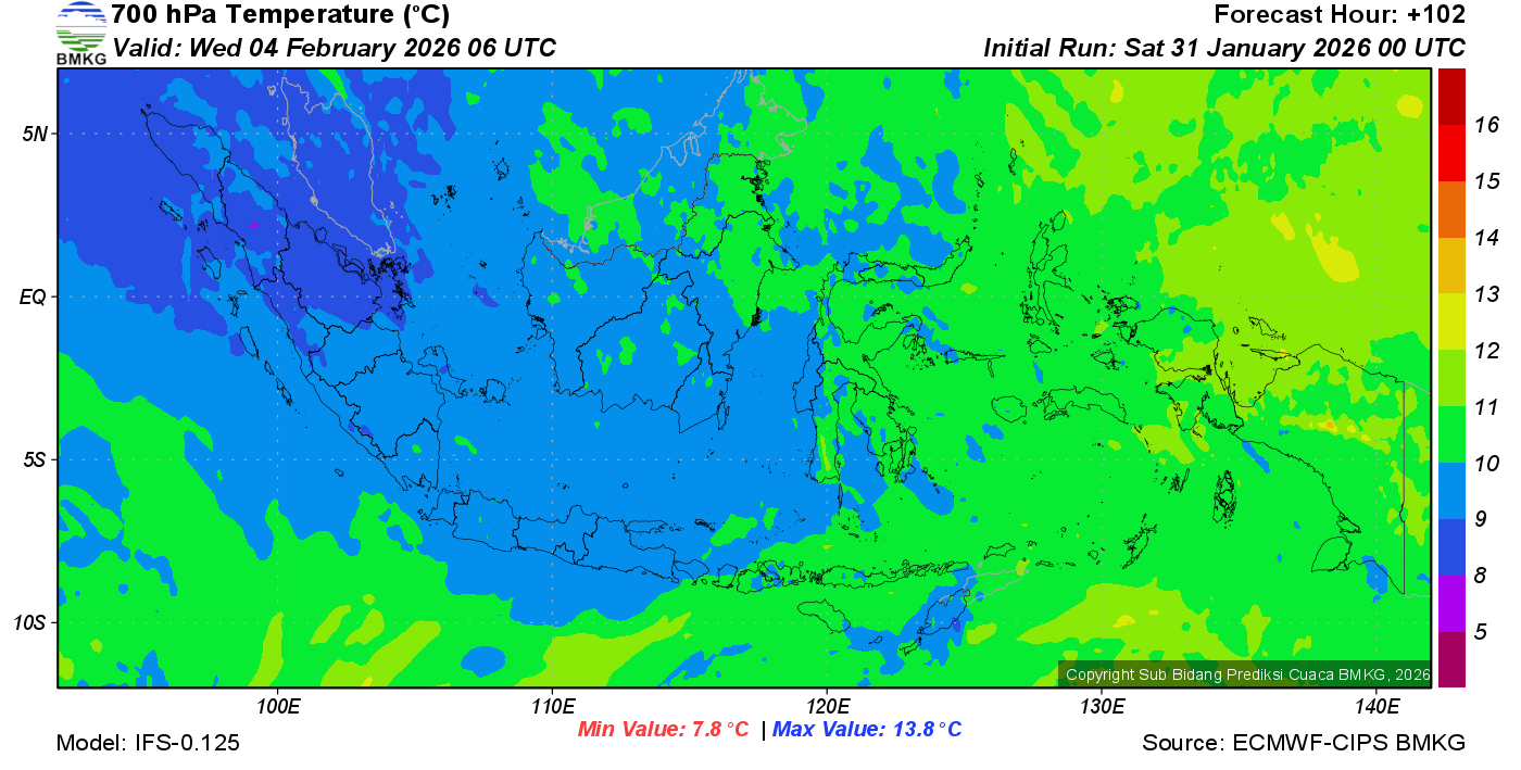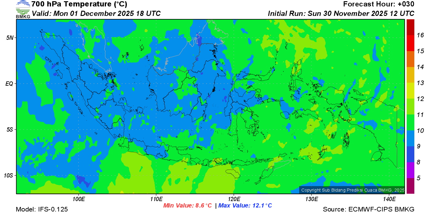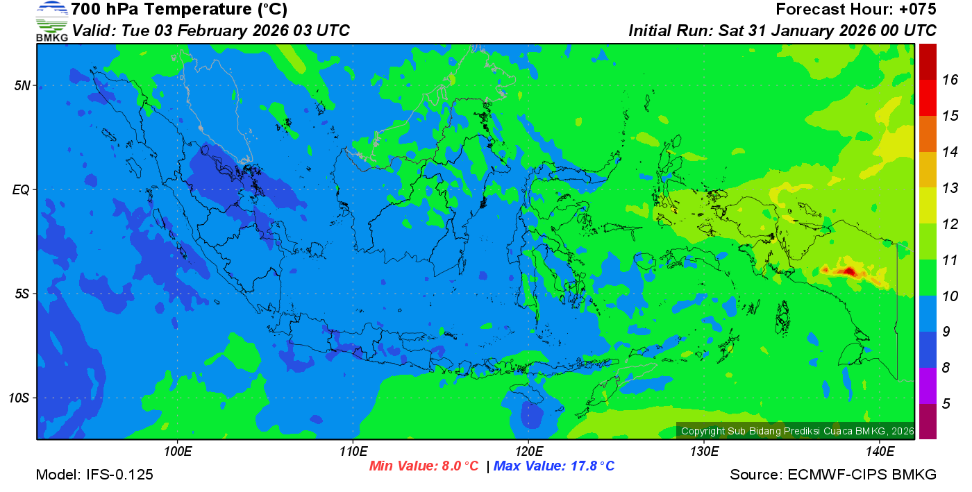 Prediksi Suhu Titik Embun 700 hPa NTT