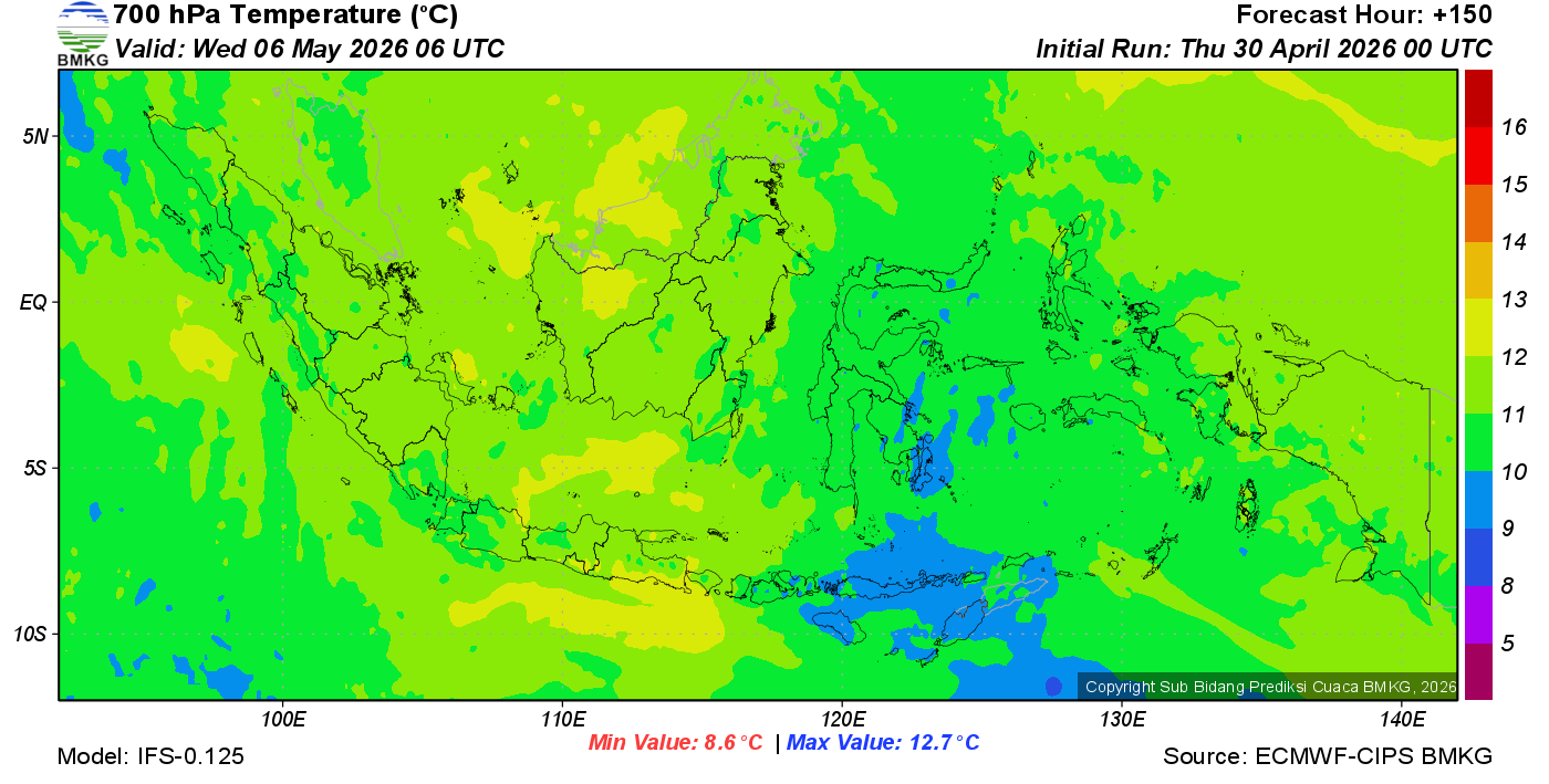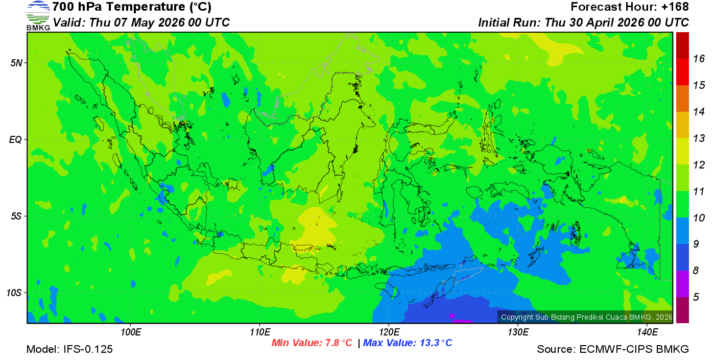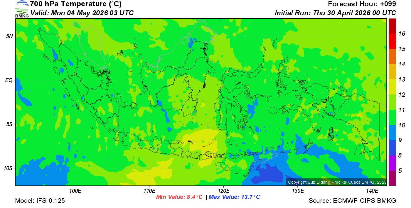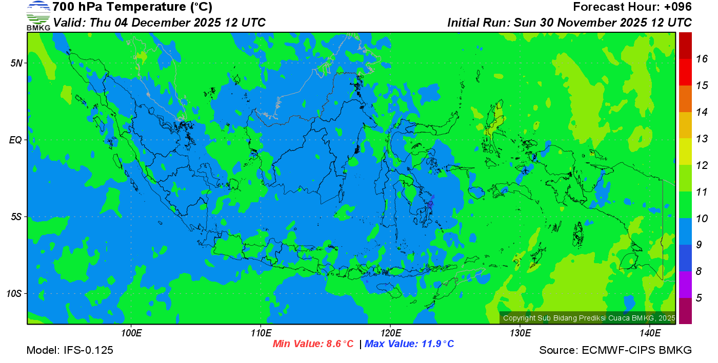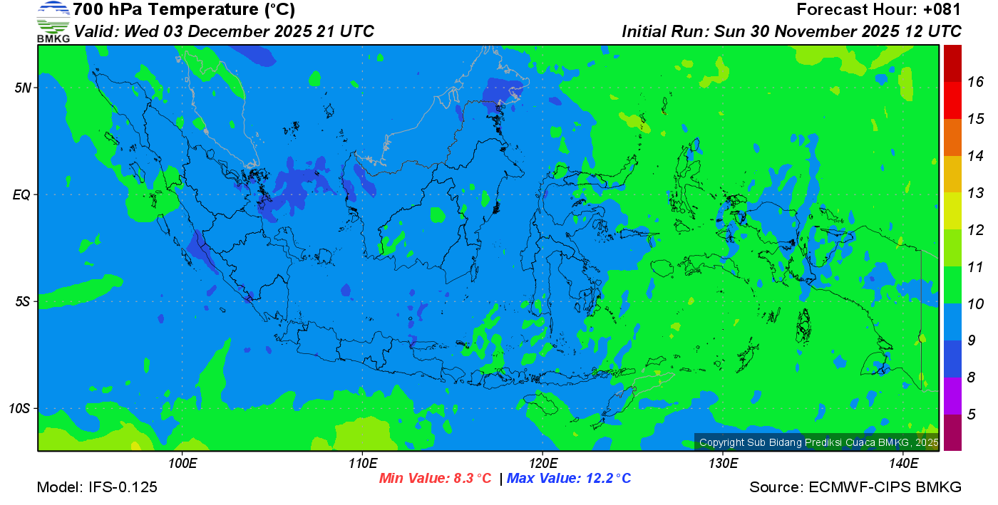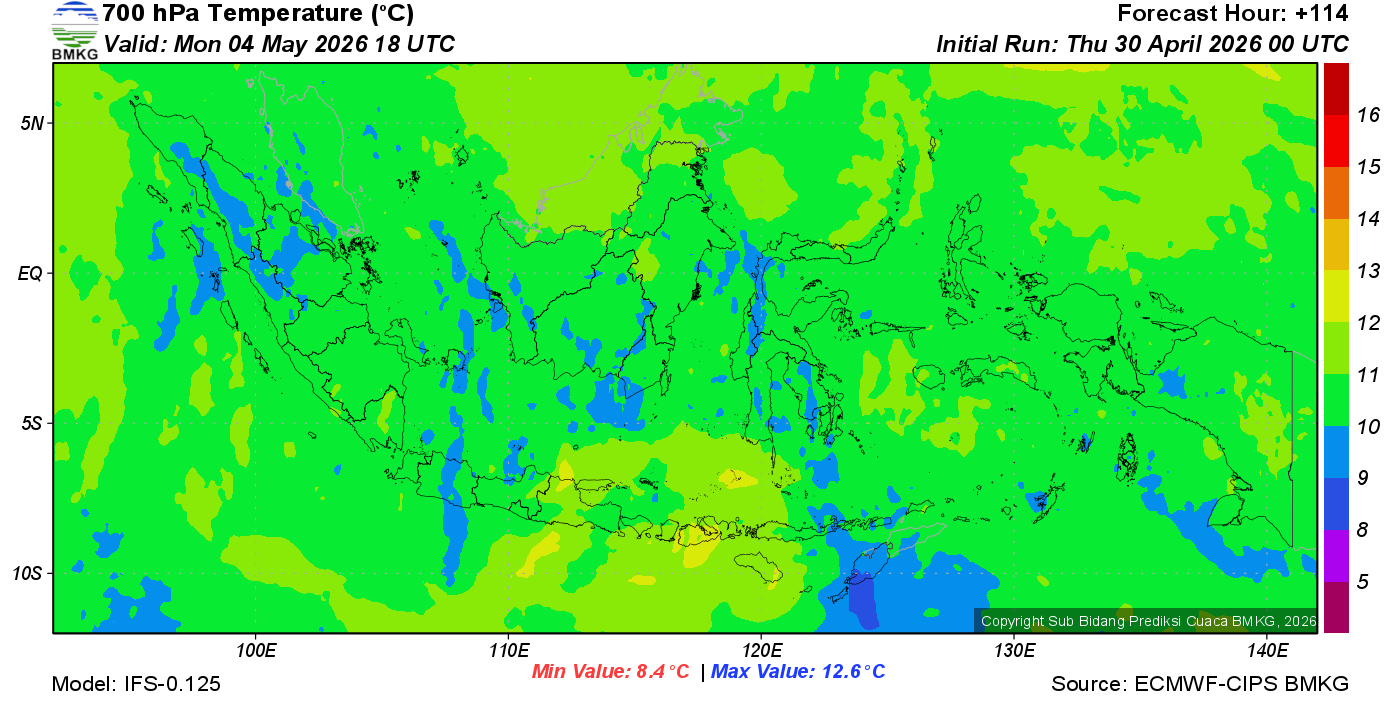Prediksi Suhu Titik Embun 700 hPa NTT