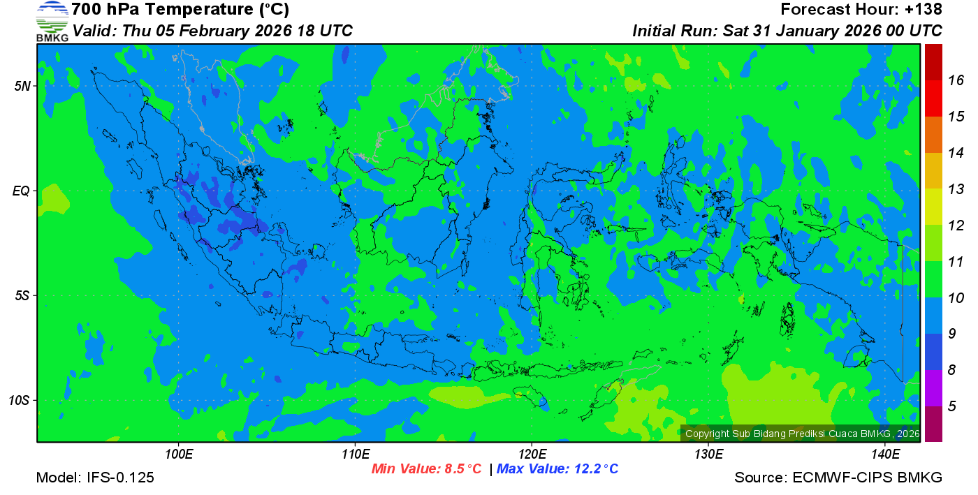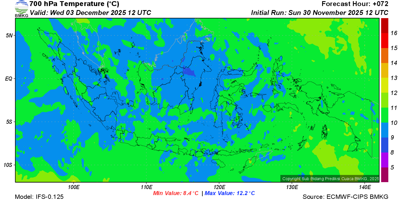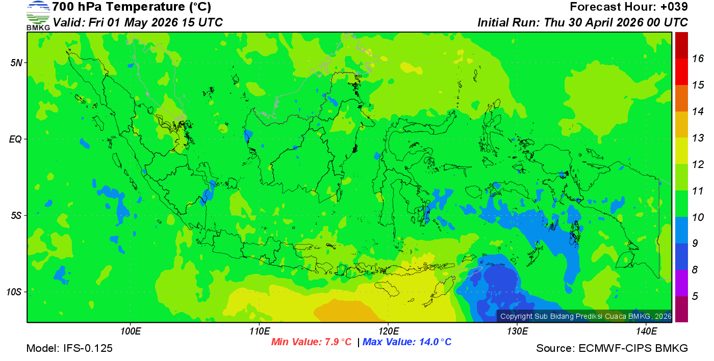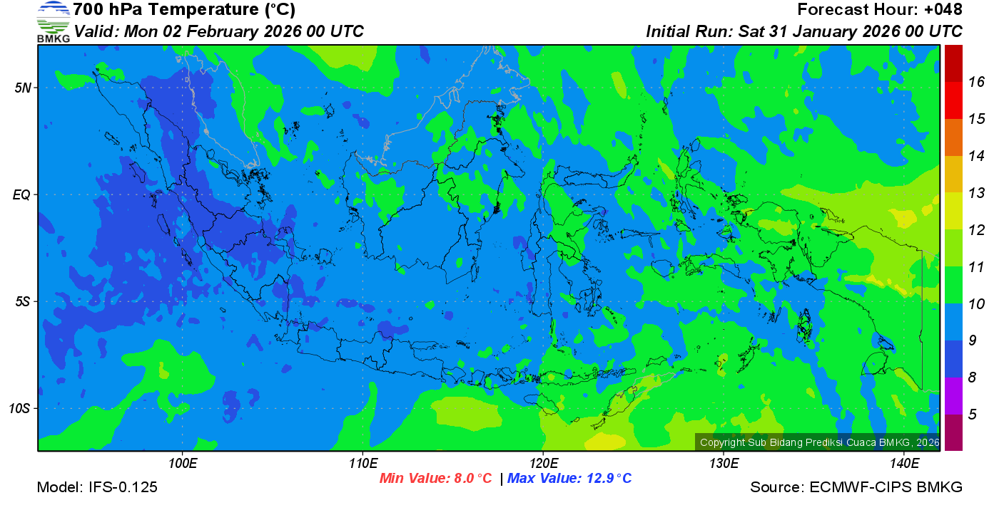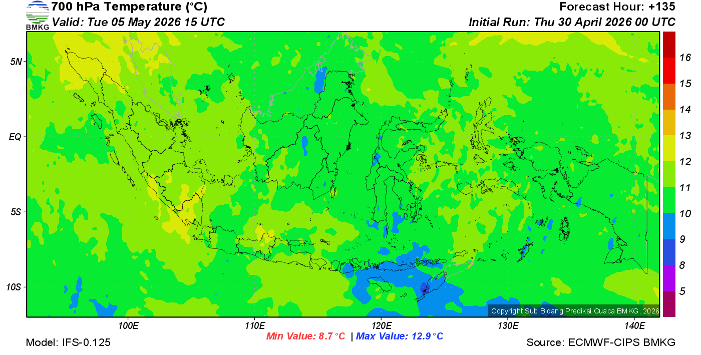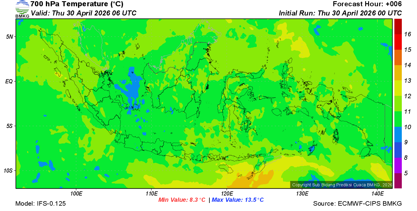 Prediksi Suhu Titik Embun 700 hPa NTT