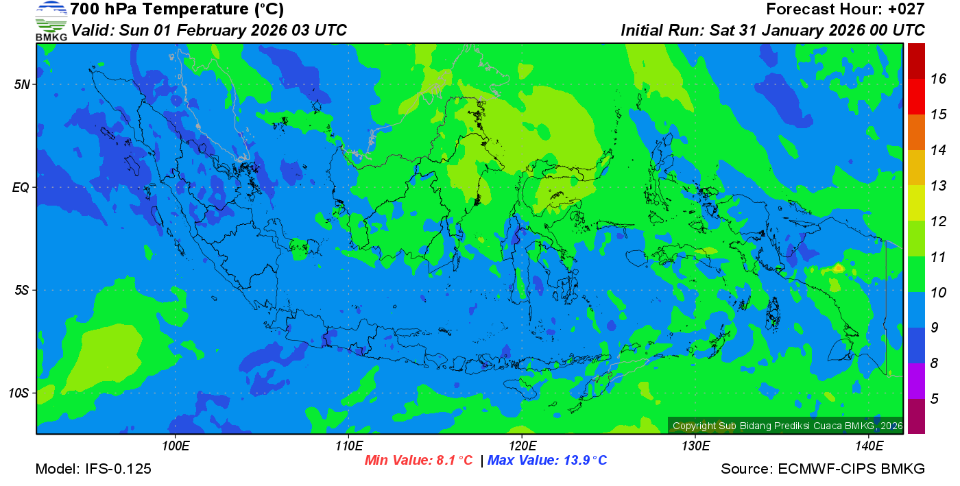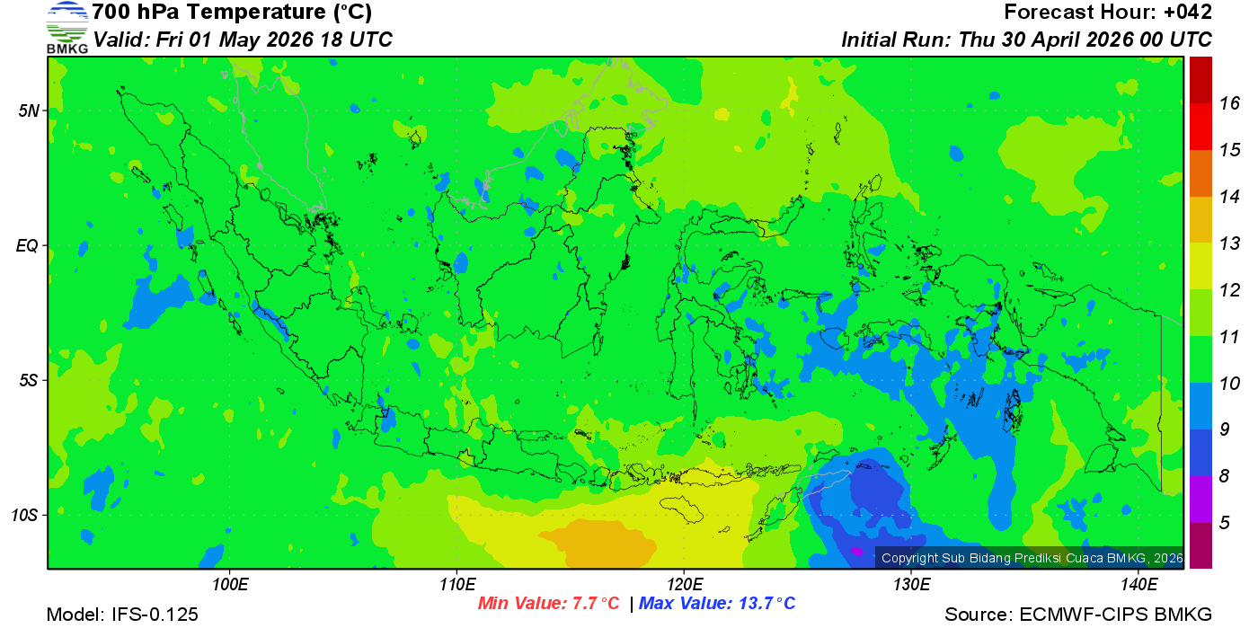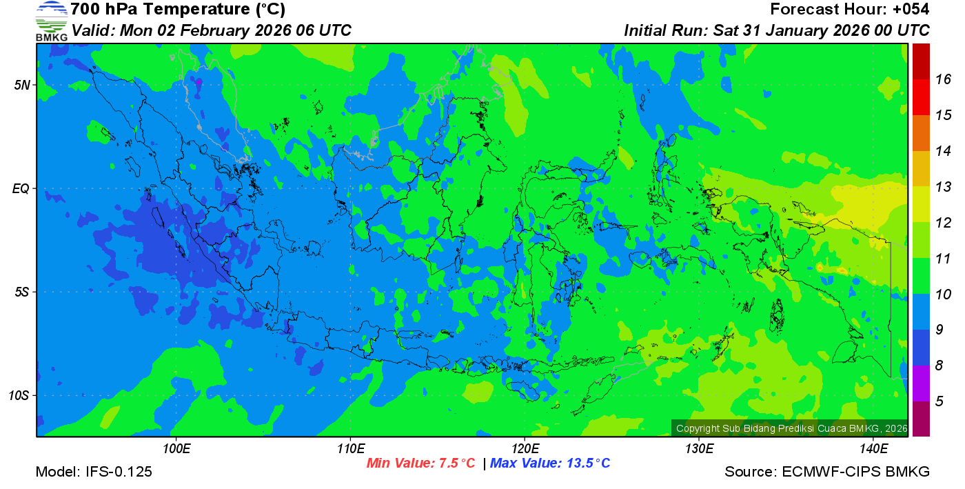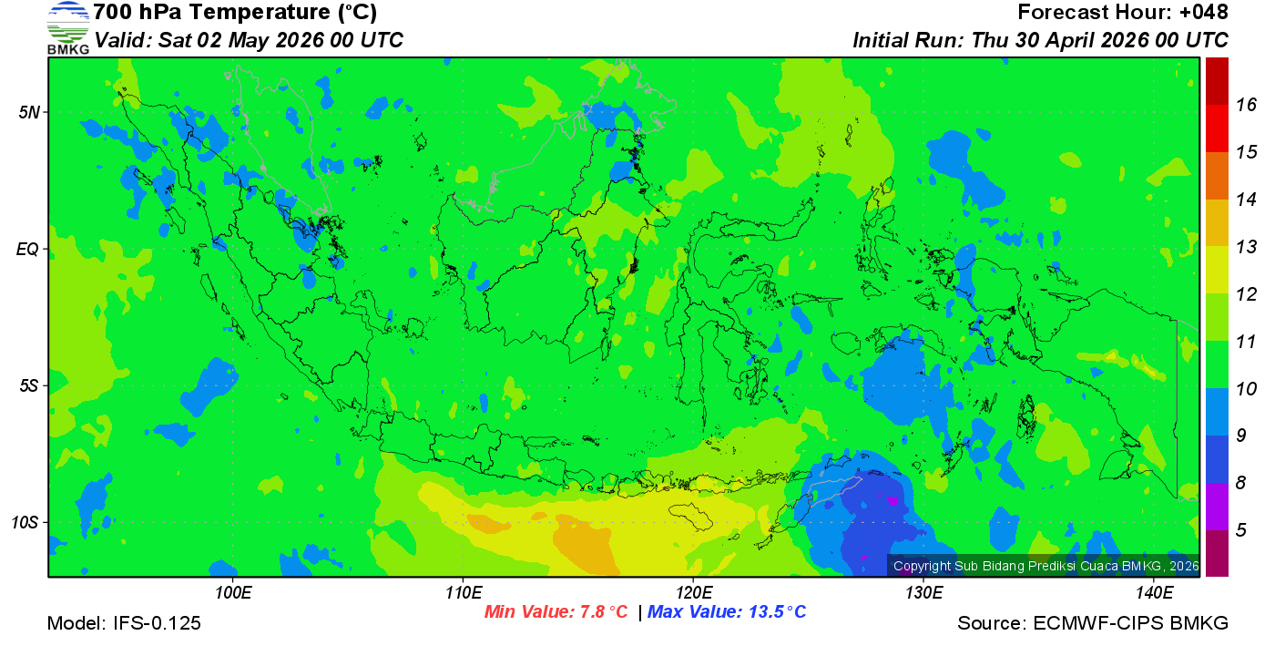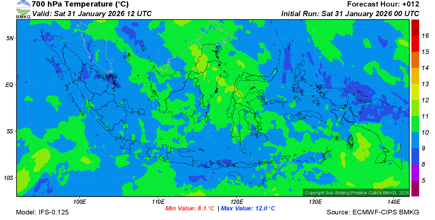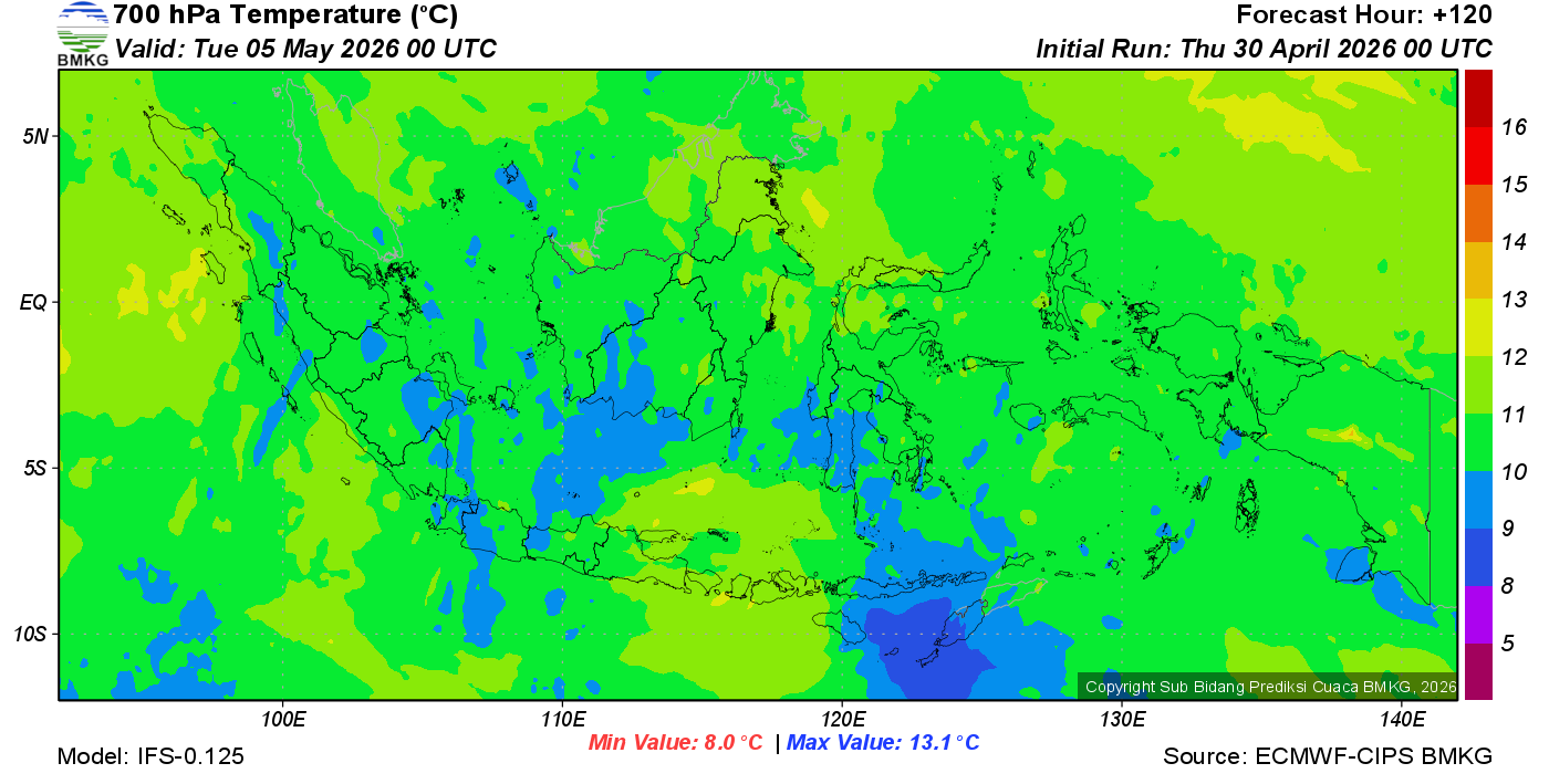 Prediksi Suhu Titik Embun 700 hPa NTT