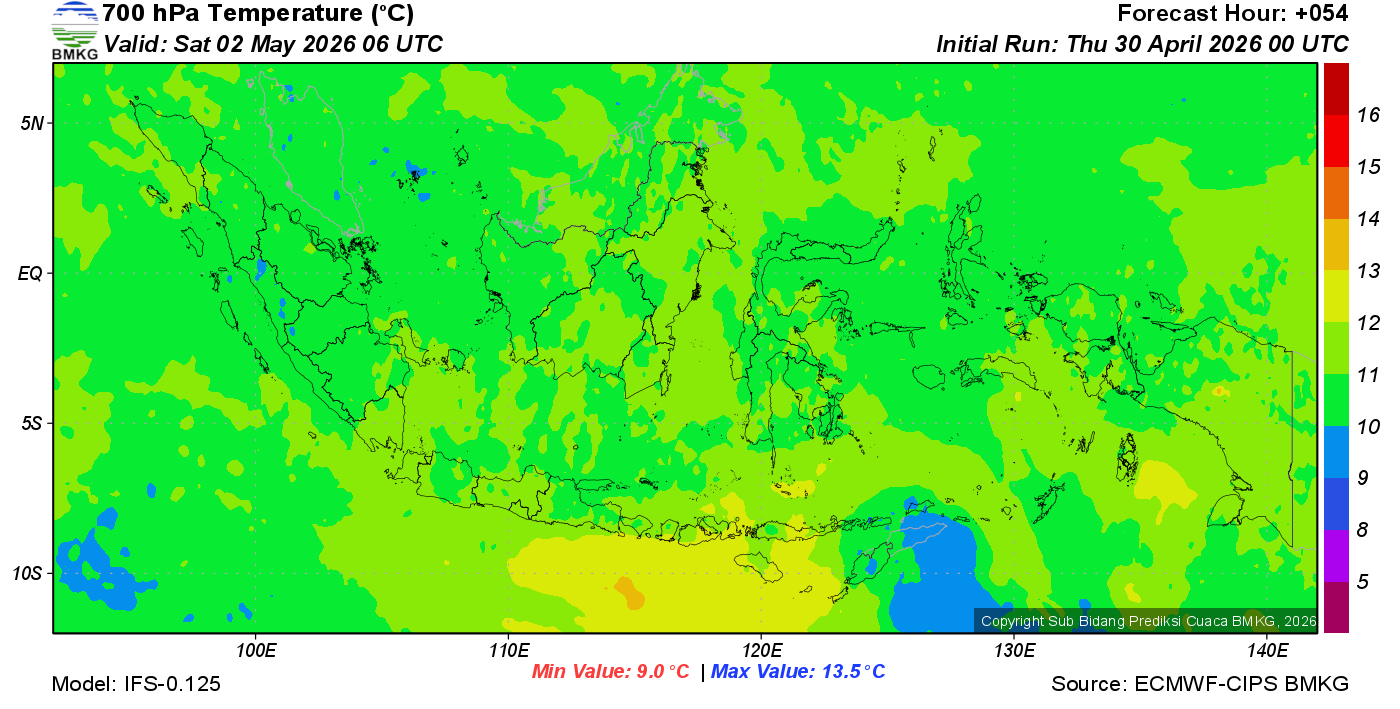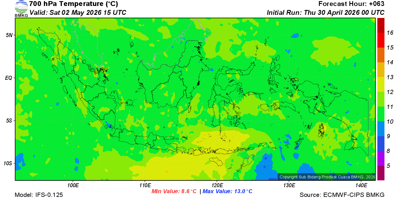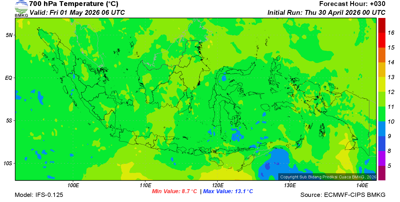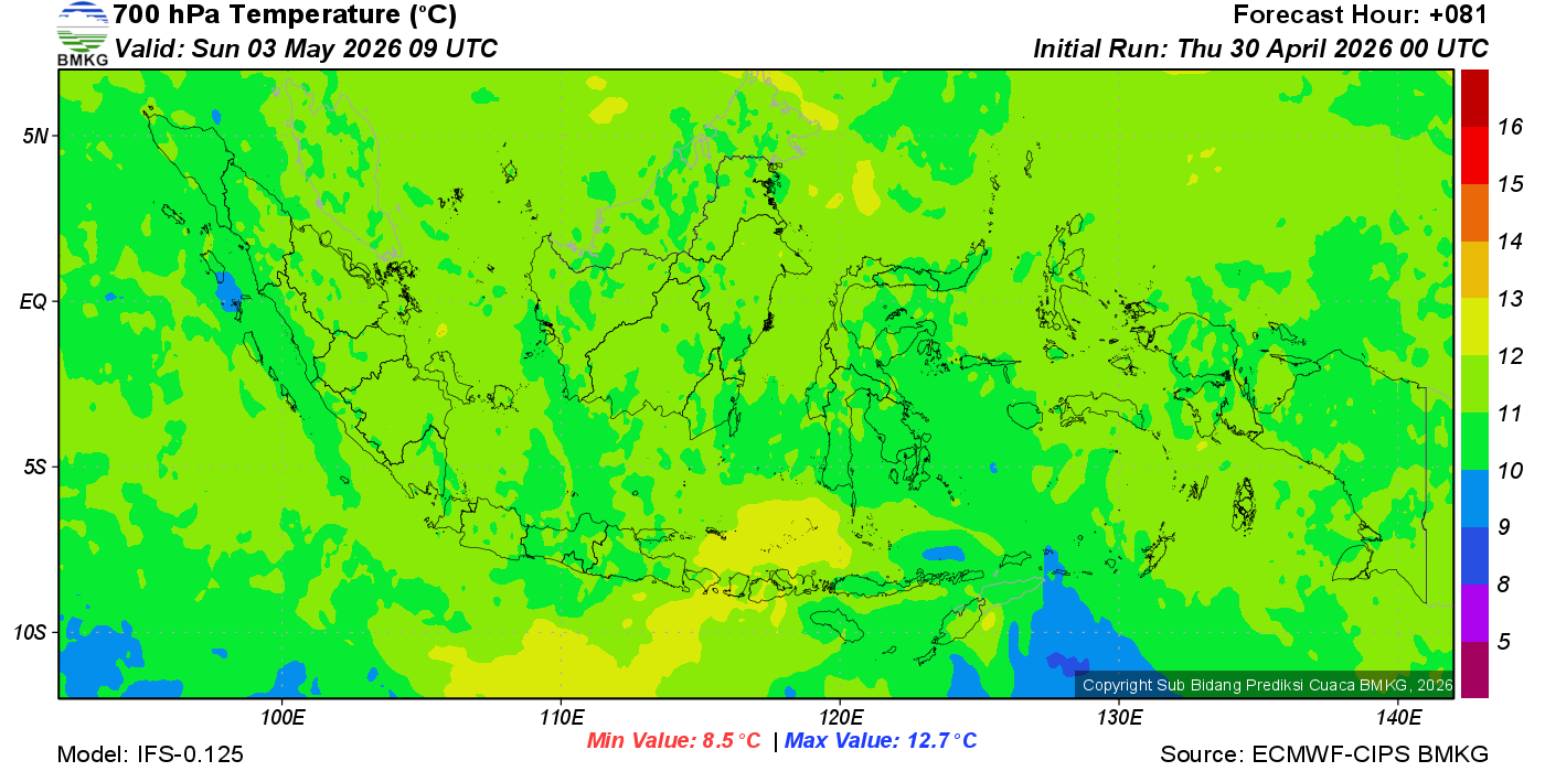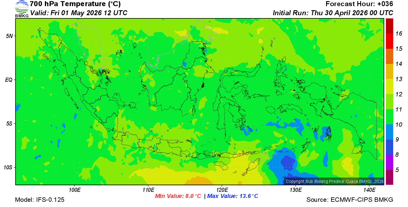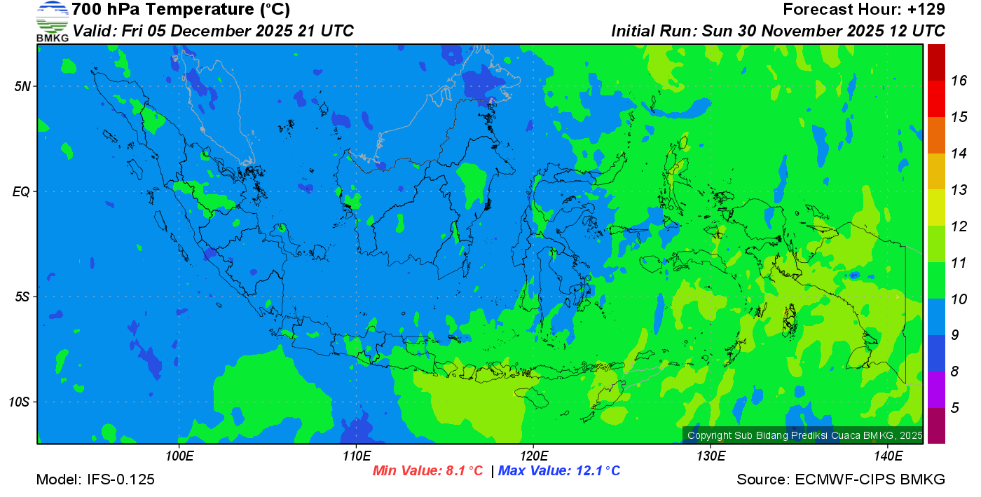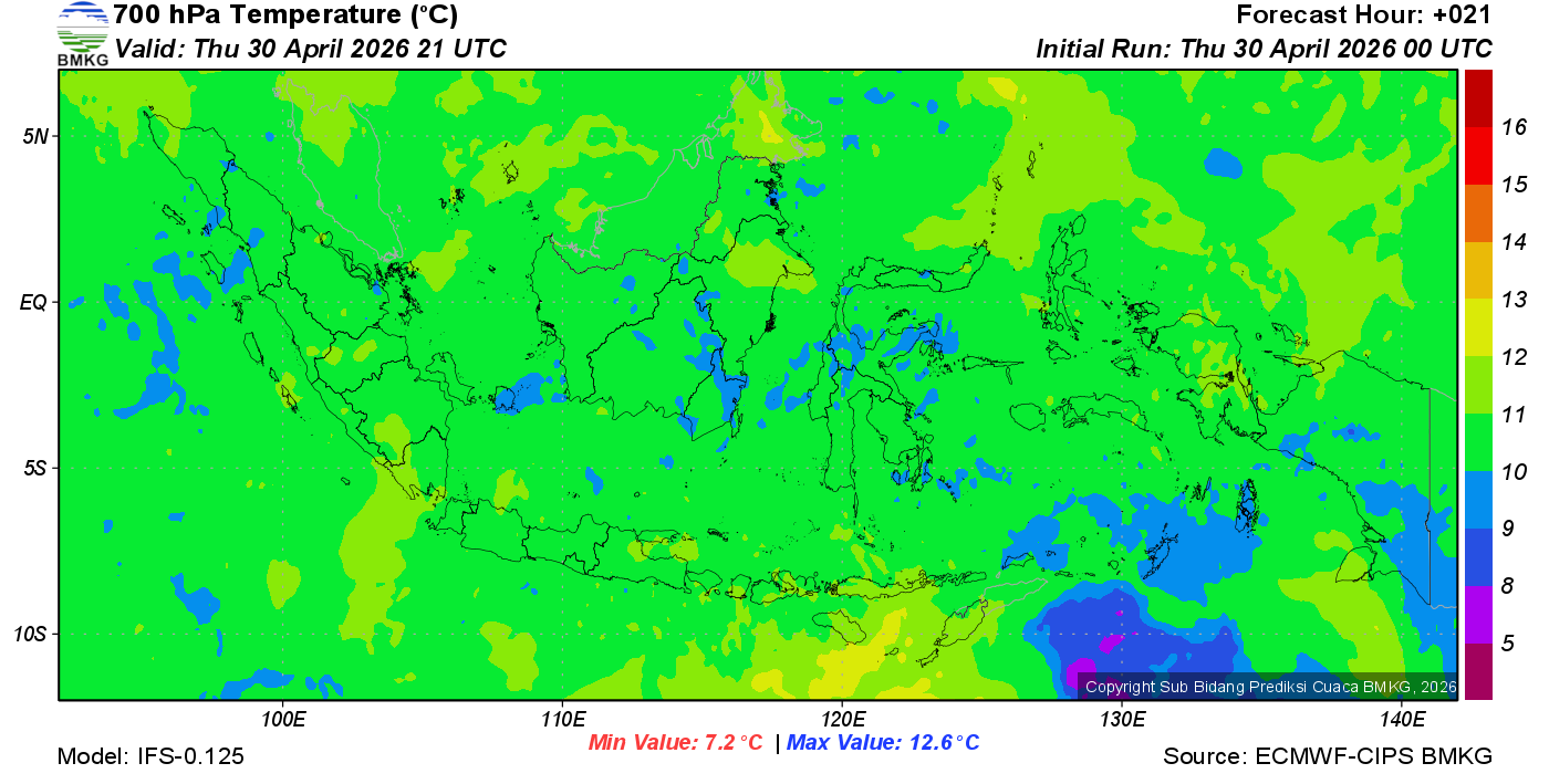 Prediksi Suhu Titik Embun 700 hPa NTT