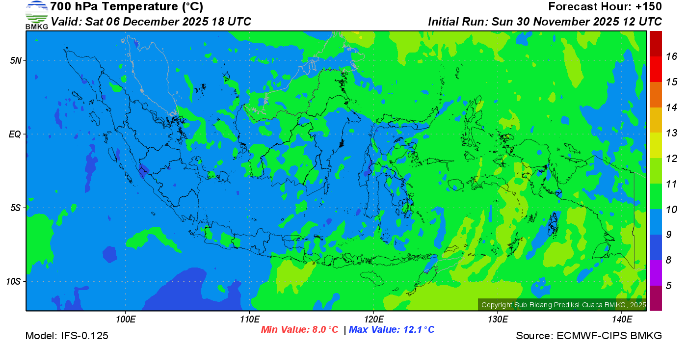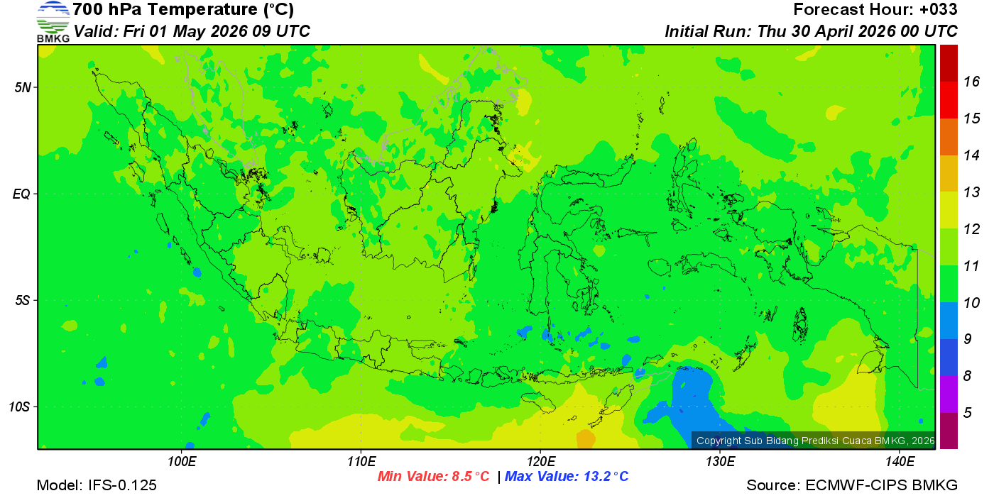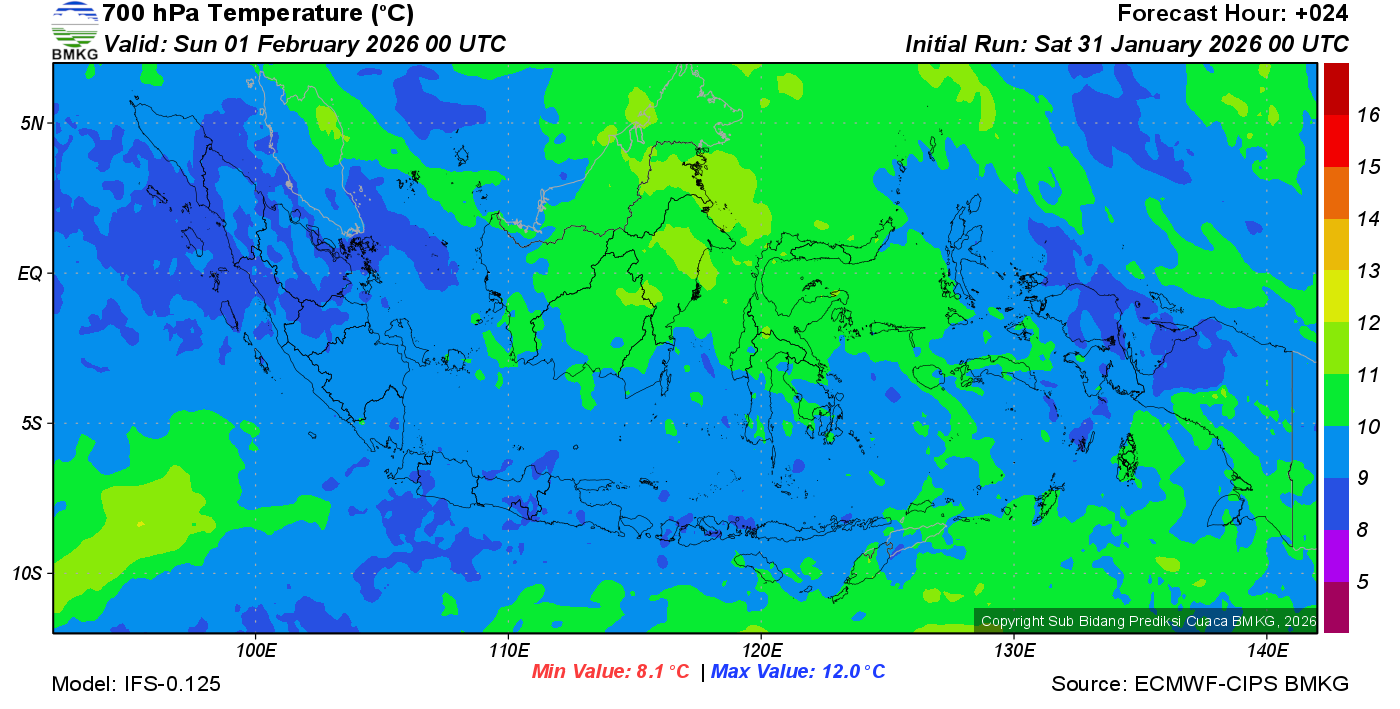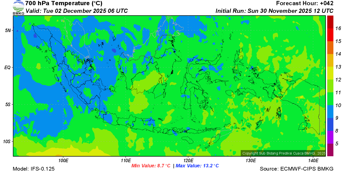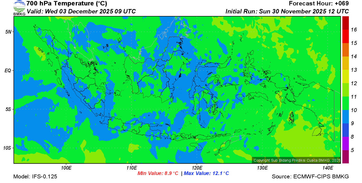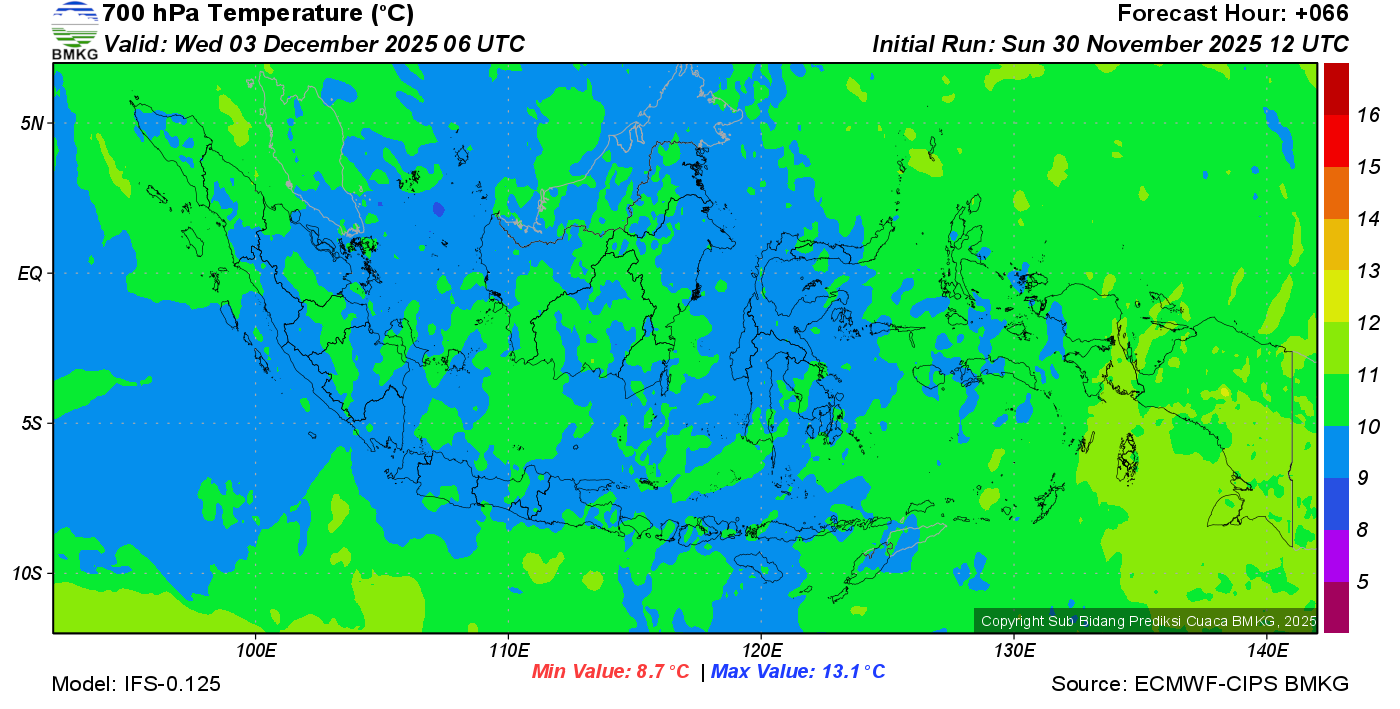 Prediksi Suhu Titik Embun 700 hPa NTT