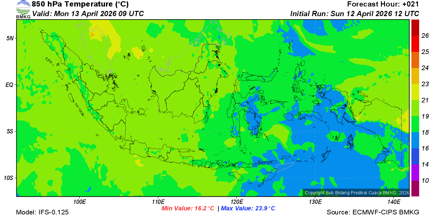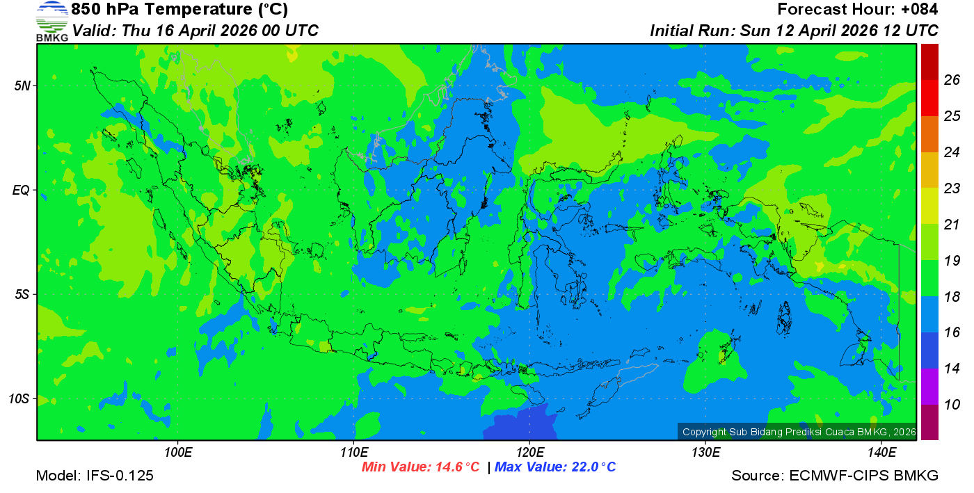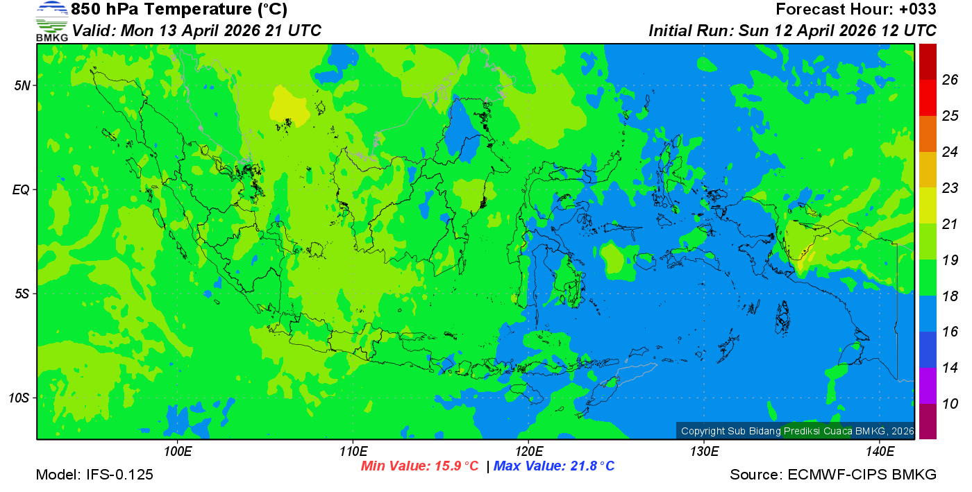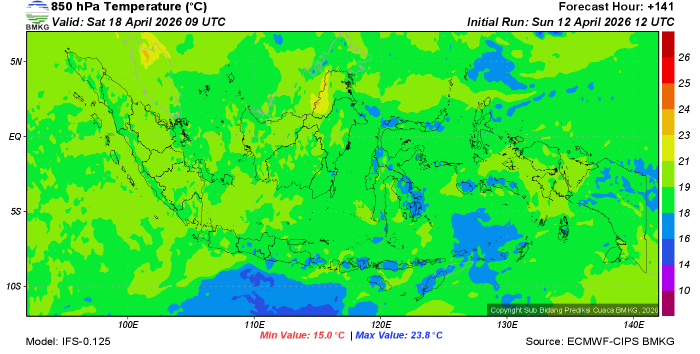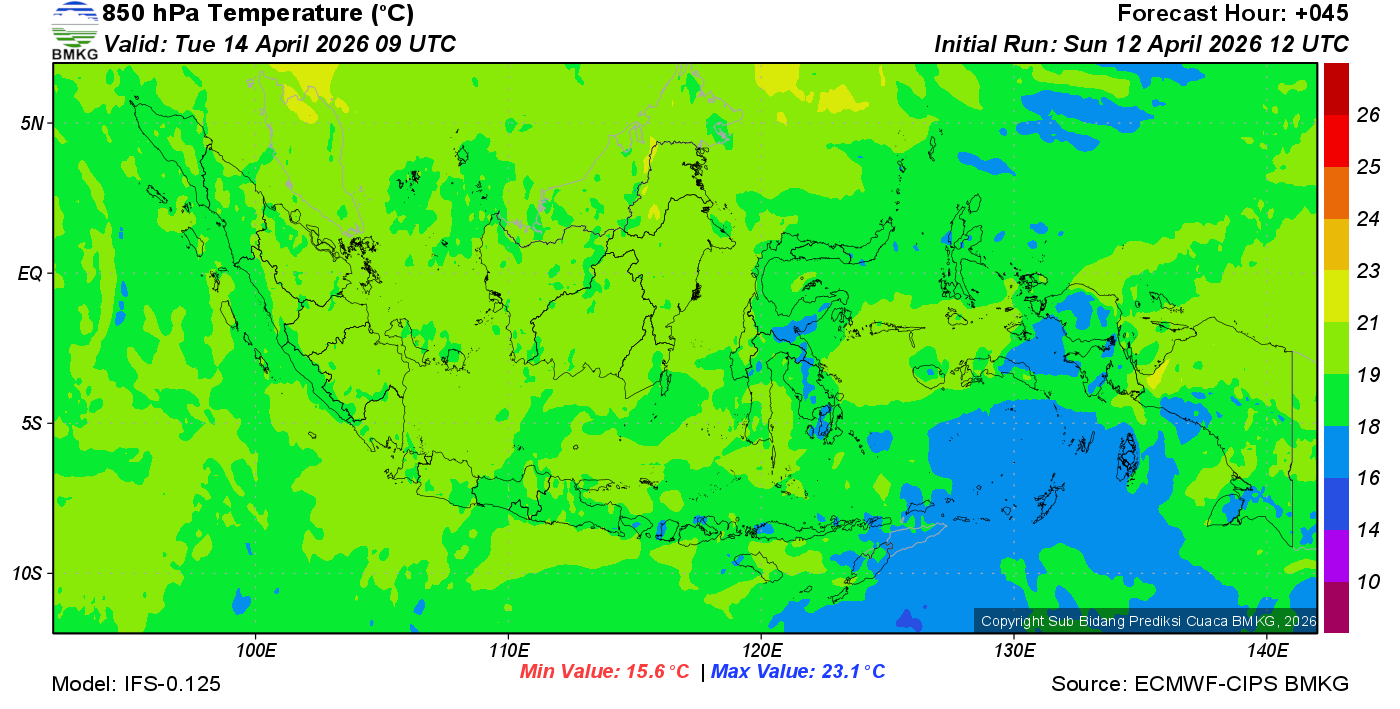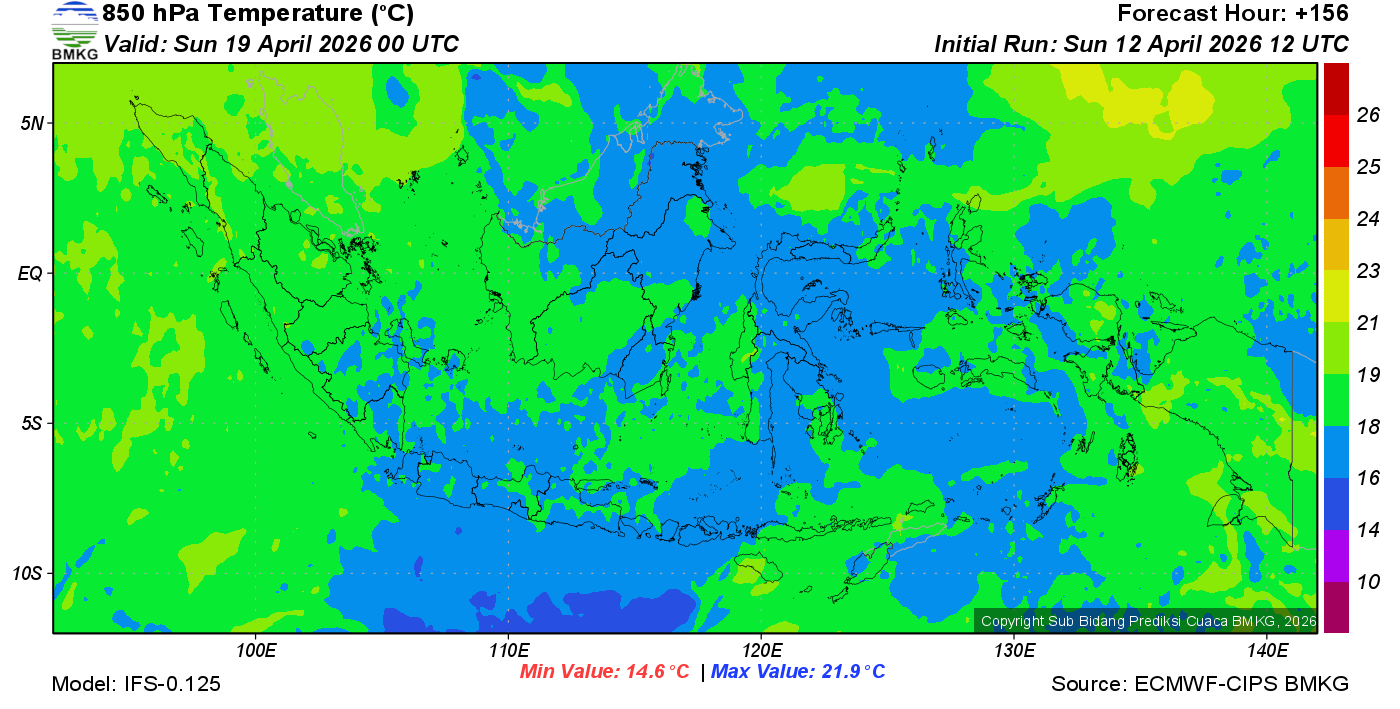 Prediksi Suhu Titik Embun 850 hPa NTT