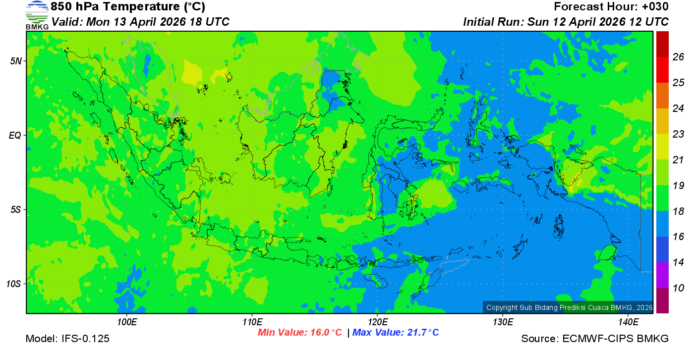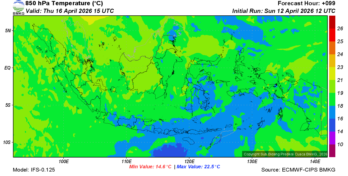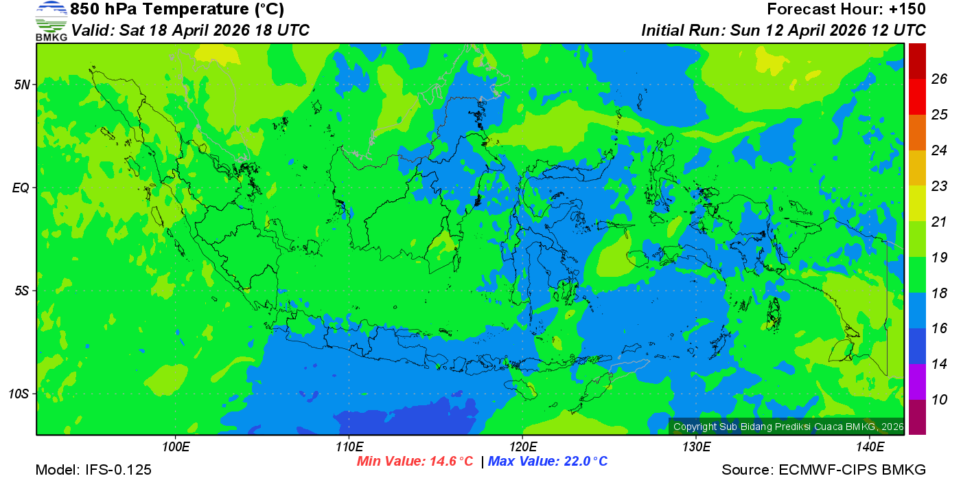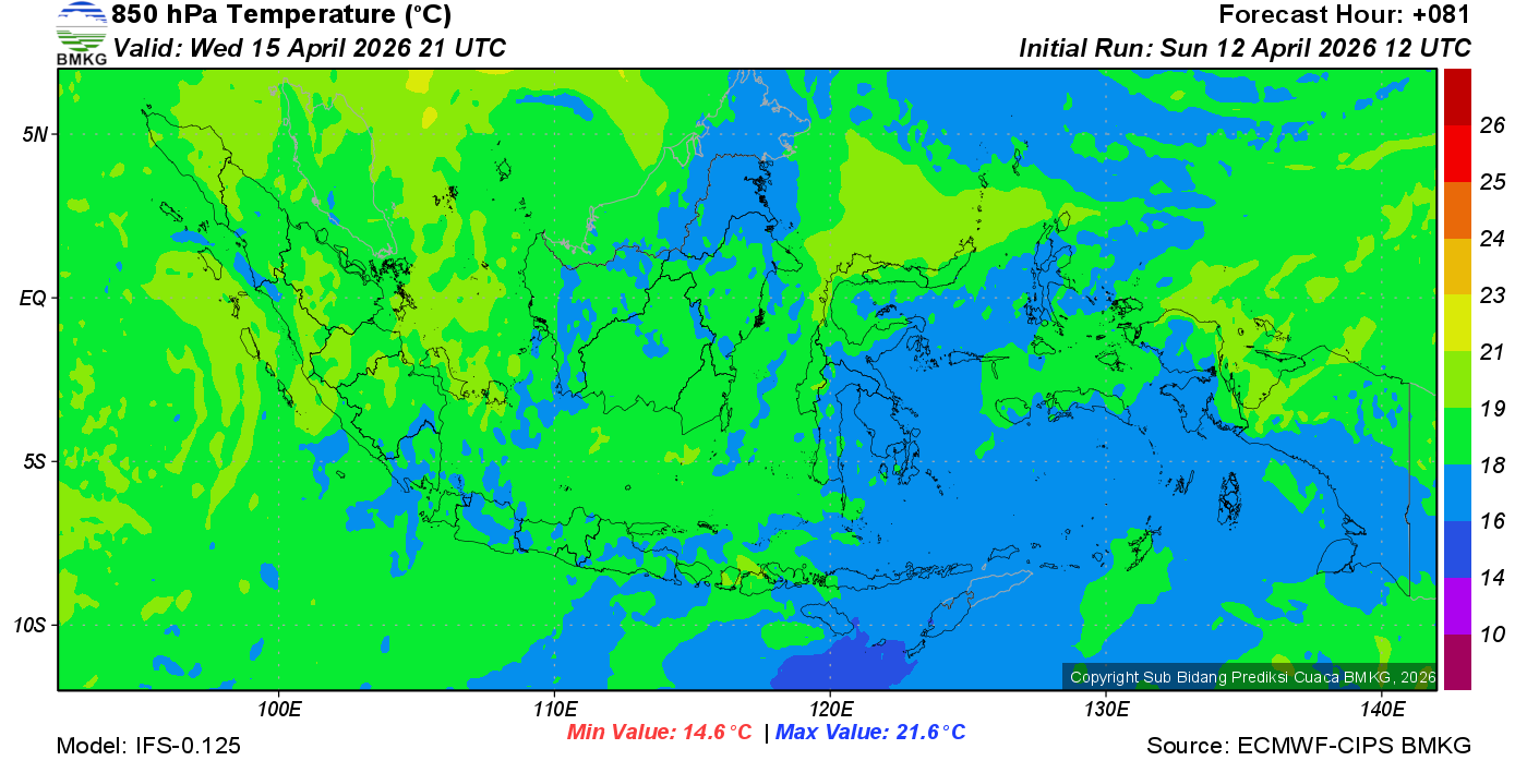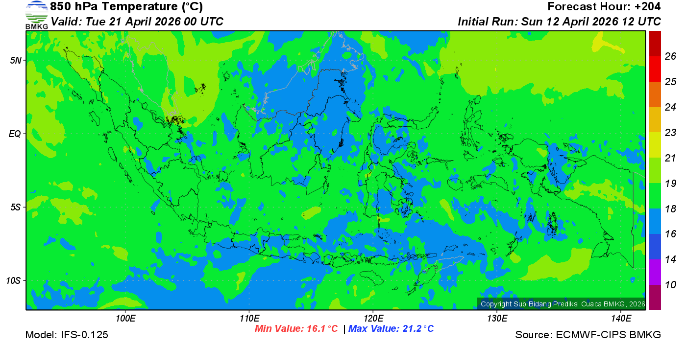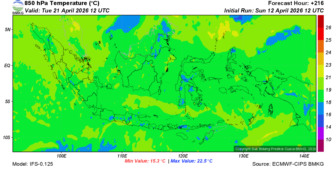 Prediksi Suhu Titik Embun 850 hPa NTT