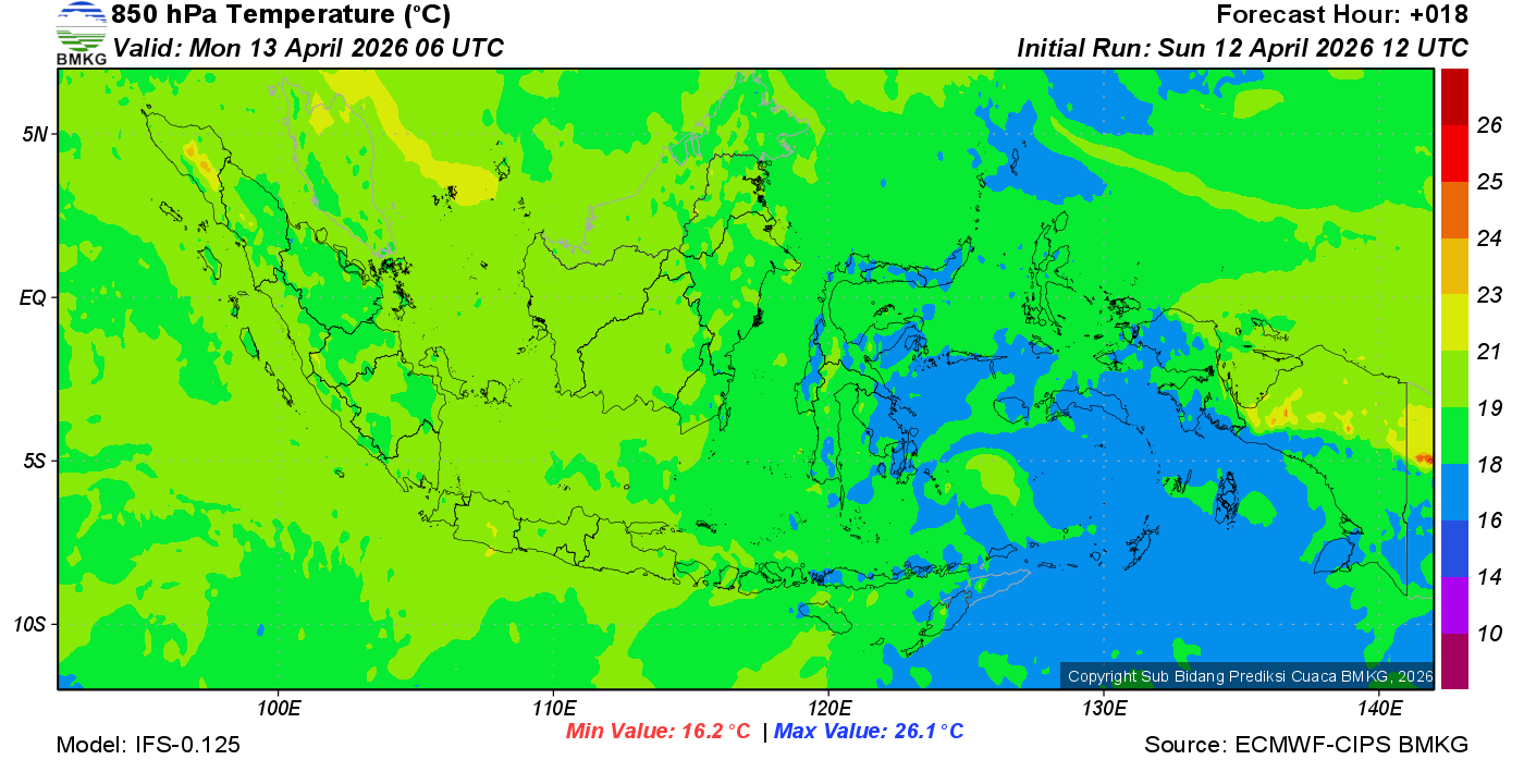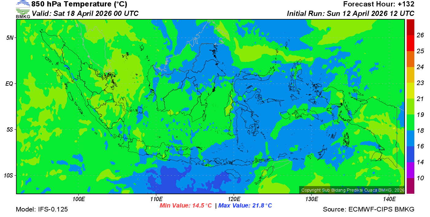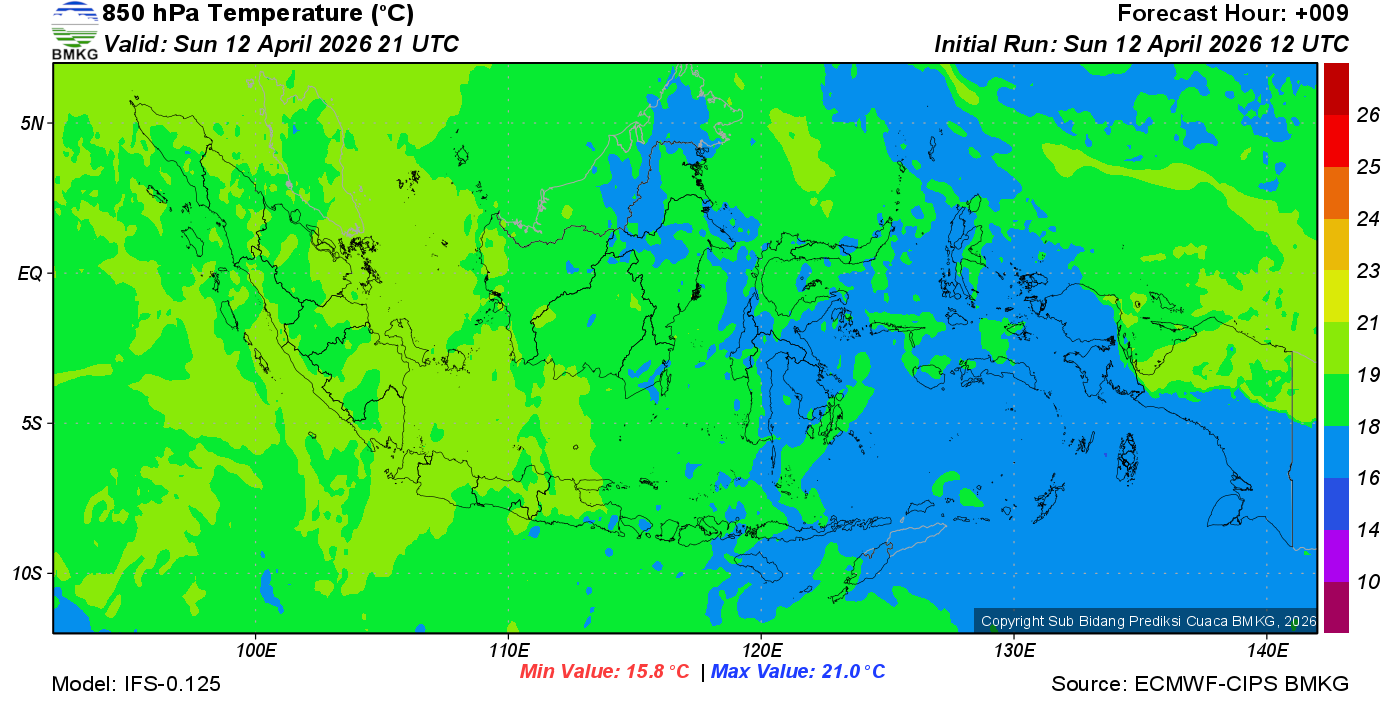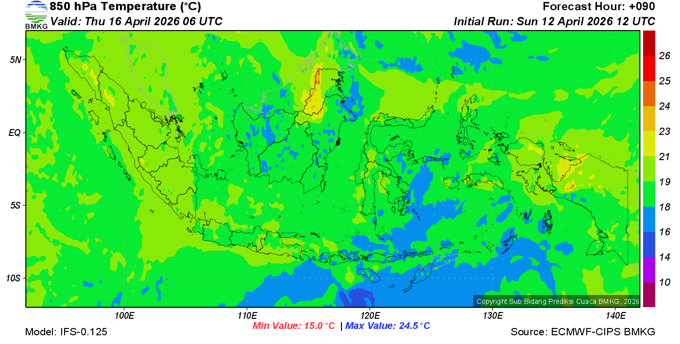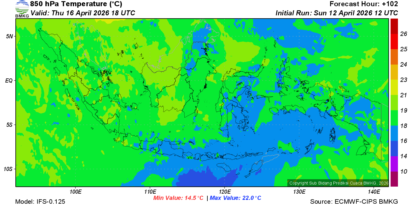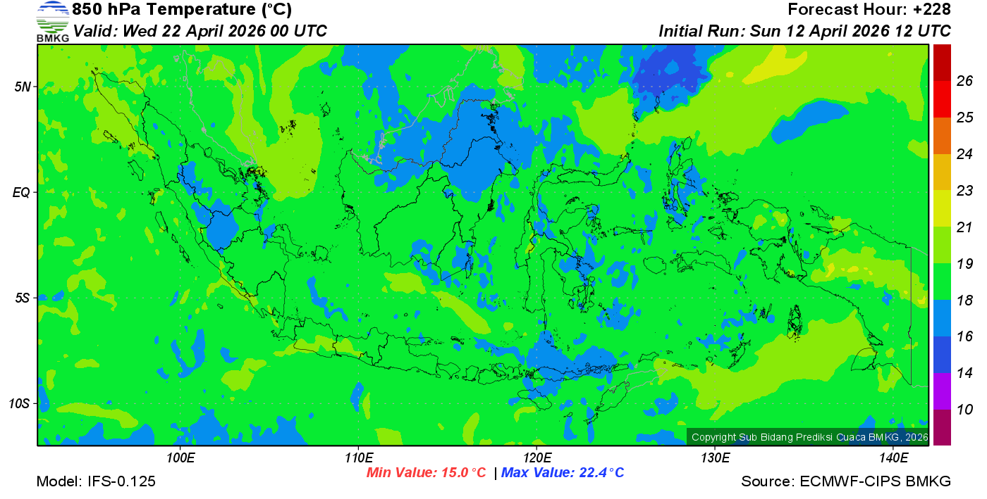 Prediksi Suhu Titik Embun 850 hPa NTT