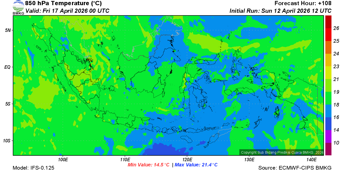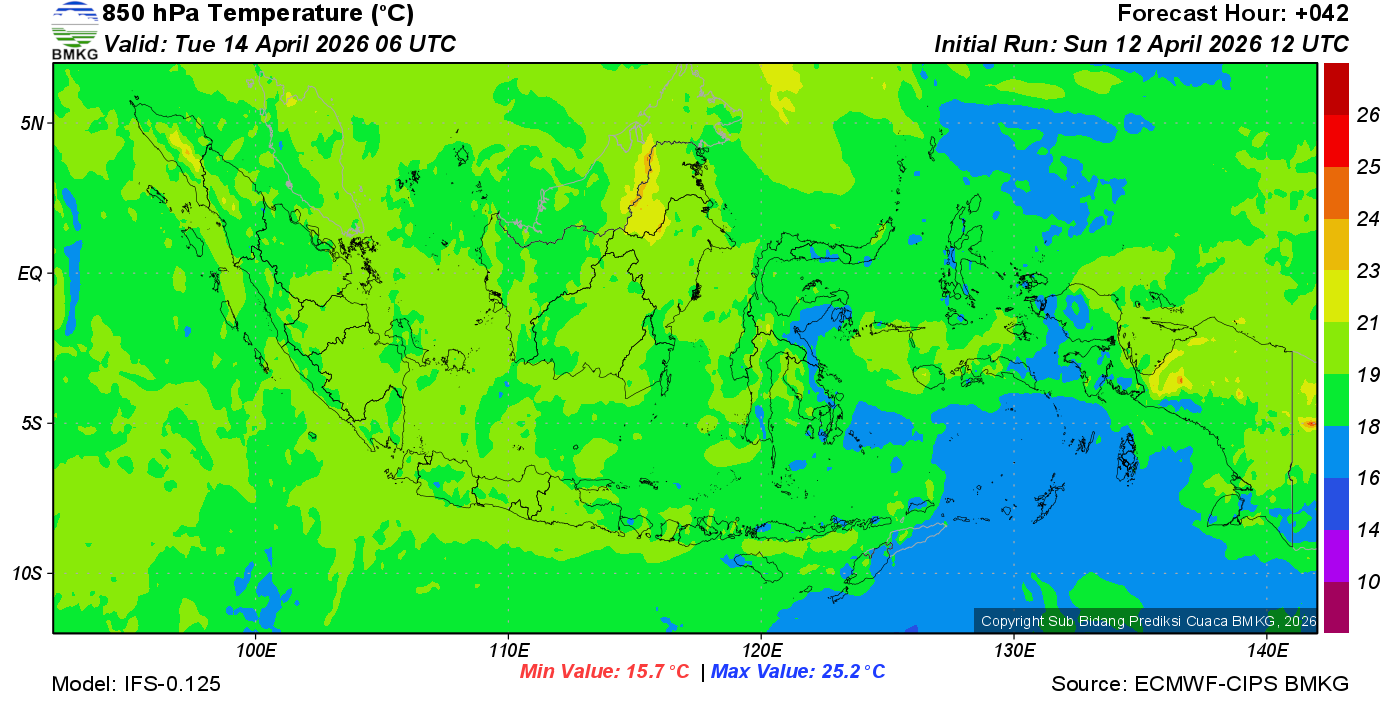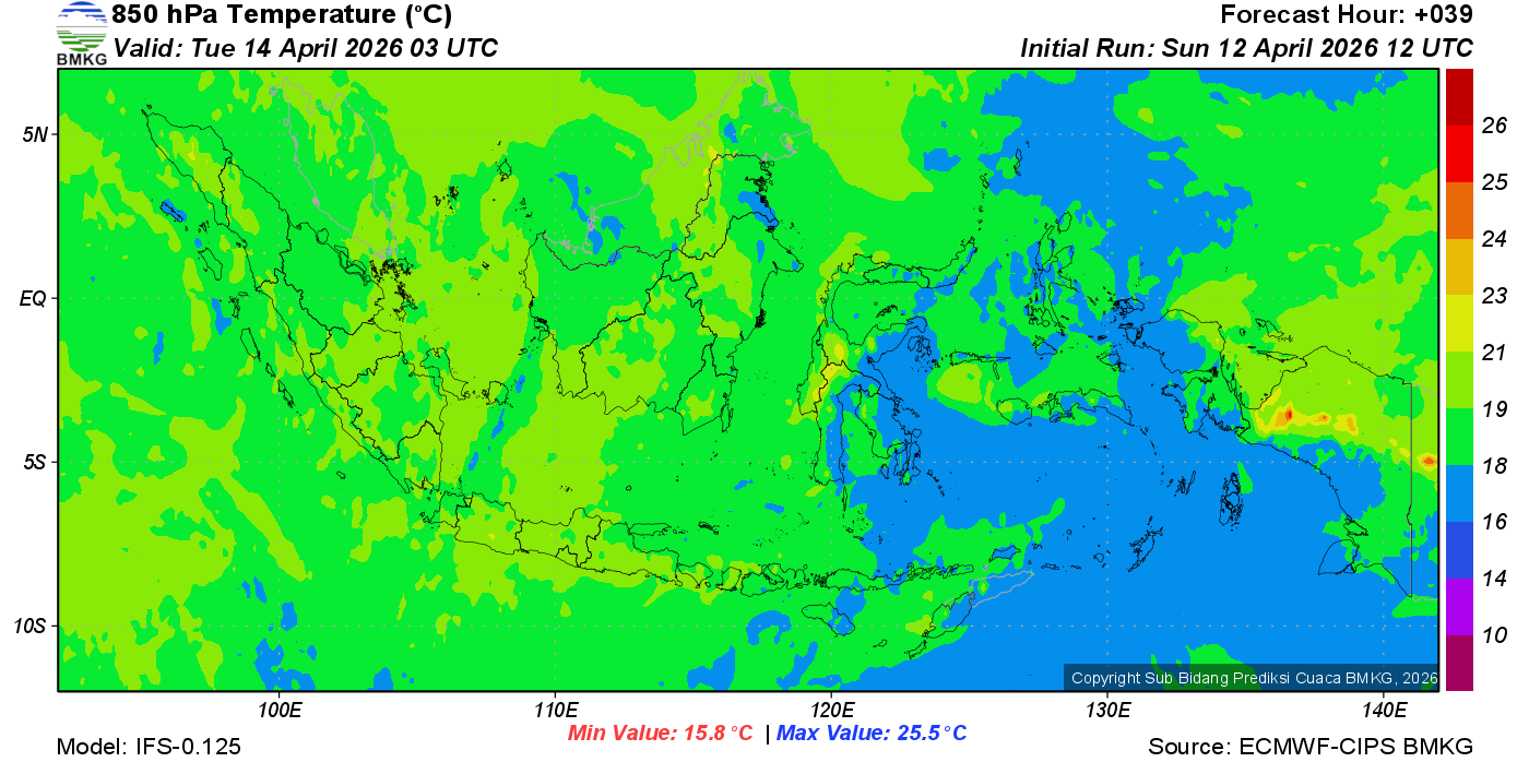 Prakiraan Angin Lapisan 850 Gunung Awu